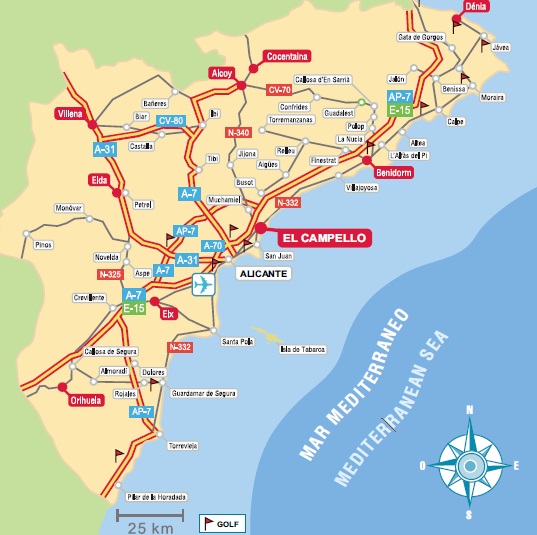 Samolot: międzynarodowe lotnisko L'Altet w Alicante, zaledwie 25 km odległości ( 15 mil)