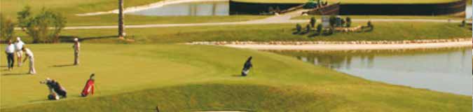 golf: pole golfowe La Romero stawia przed Tobą wyzwanie na dołku numer 18, zieloną małą wysepką pośrodku jeziora