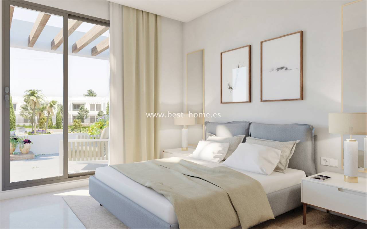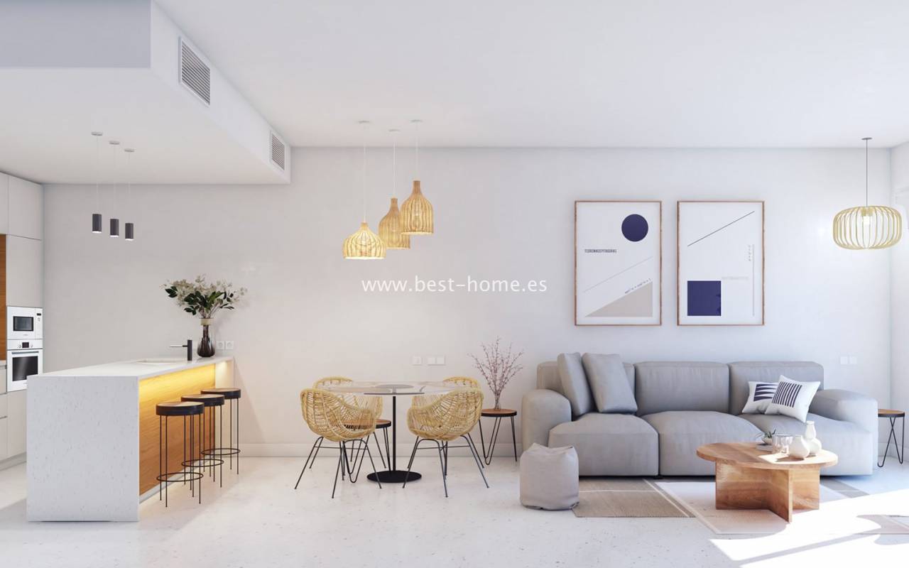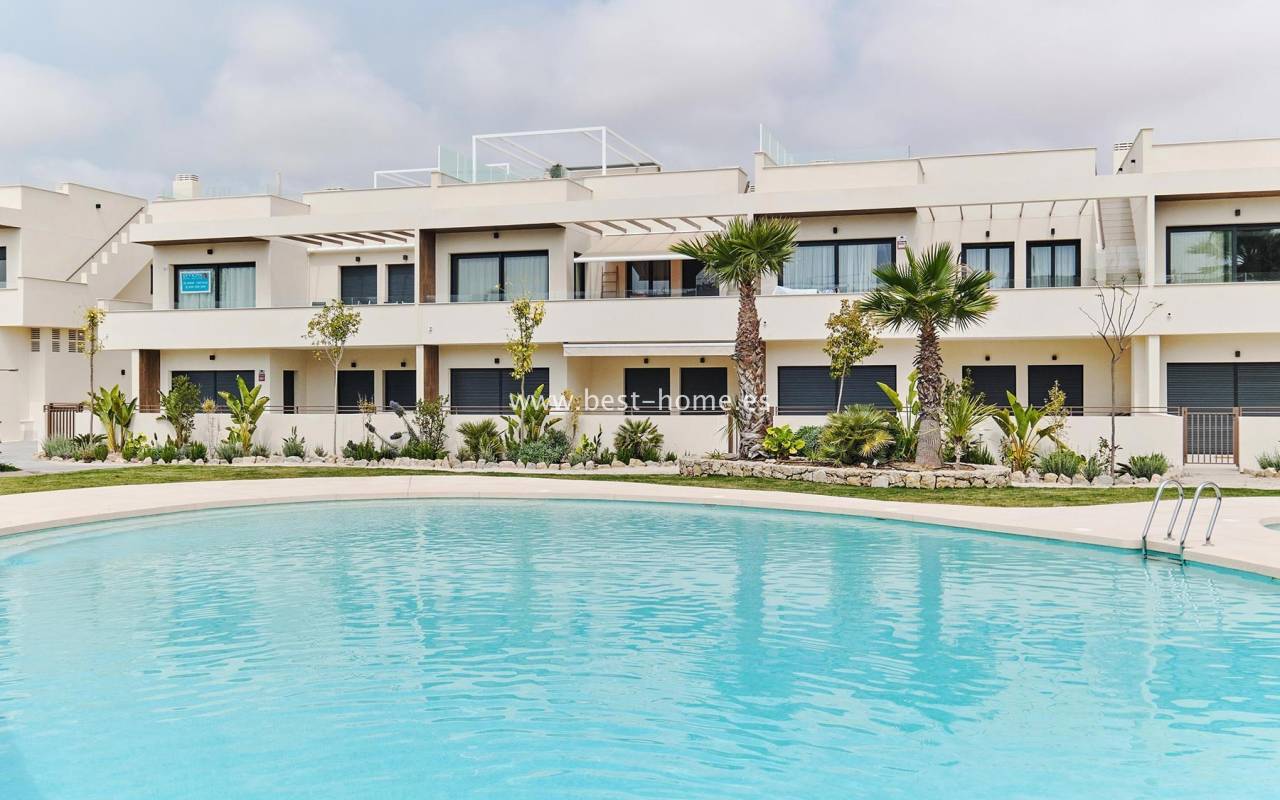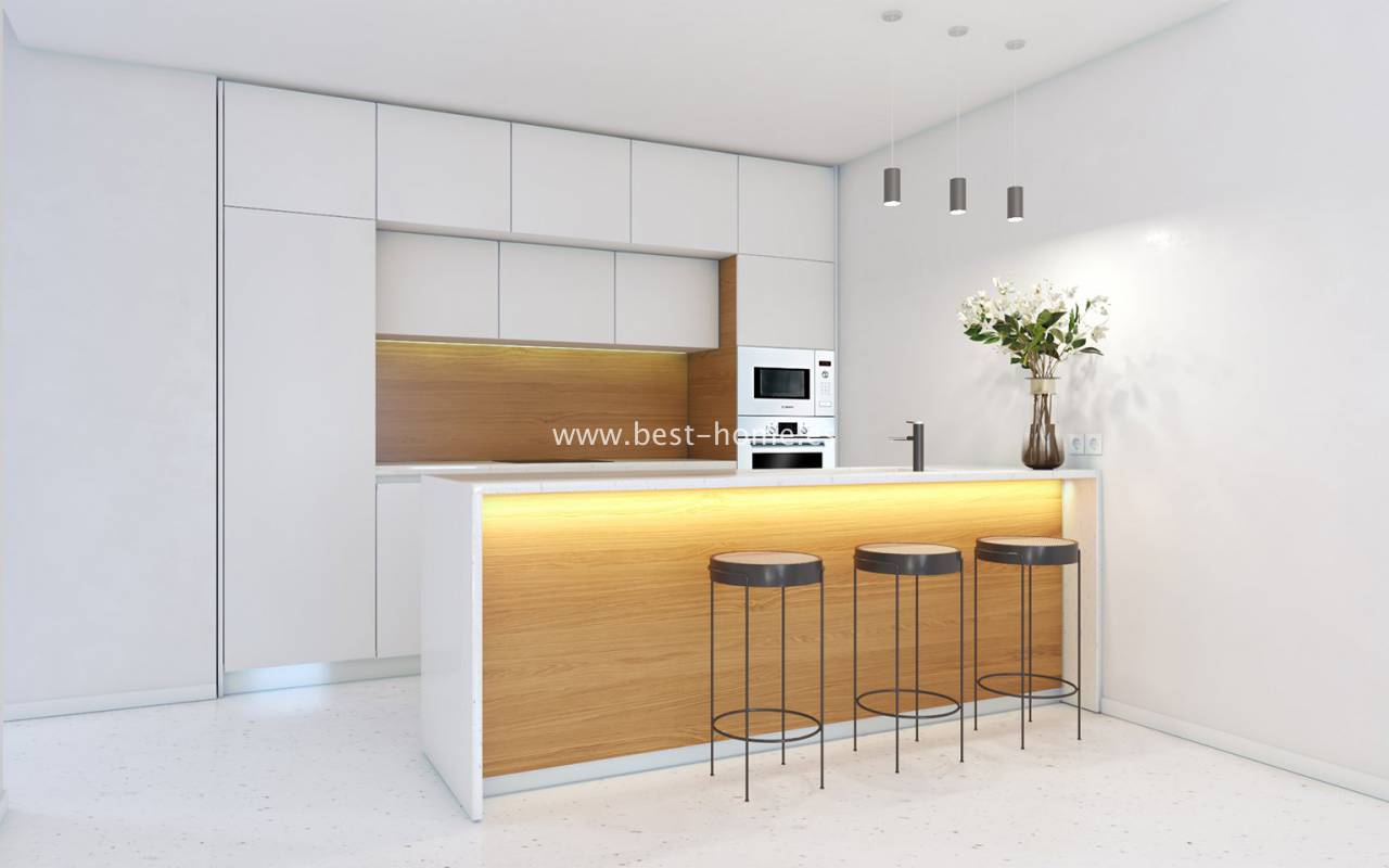Fantastic, new estate is built in a great location in Torrevieja and just 250 m from the sea. The charming, gated estate will include three swimming pools, one heated pool, a gym and an outdoor fintess area, a picnic area and a playground for children. There are apartments on the ground floor with a private garden (from 36 m2 to 70 m2) or on the first floor with a private solarium / roof terrace with an area of 65 m2 to 90 m2. Spacious properties will consist of a large and bright living room with a modern kitchen, master bedroom with wardrobe and bathroom en suit, second bedroom with built-in wardrobe, second bathroom and utility room. From the living room and two bedrooms there will be an exit to the terrace (areas from 13 m2 to 30 m2). High-quality finish, kitchen furniture included, central heating / cold air conditioning, complete bathrooms with underfloor heating, alarm system, electric blinds in the bedroom and a parking space in the basement of the building.