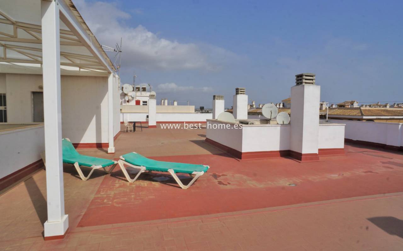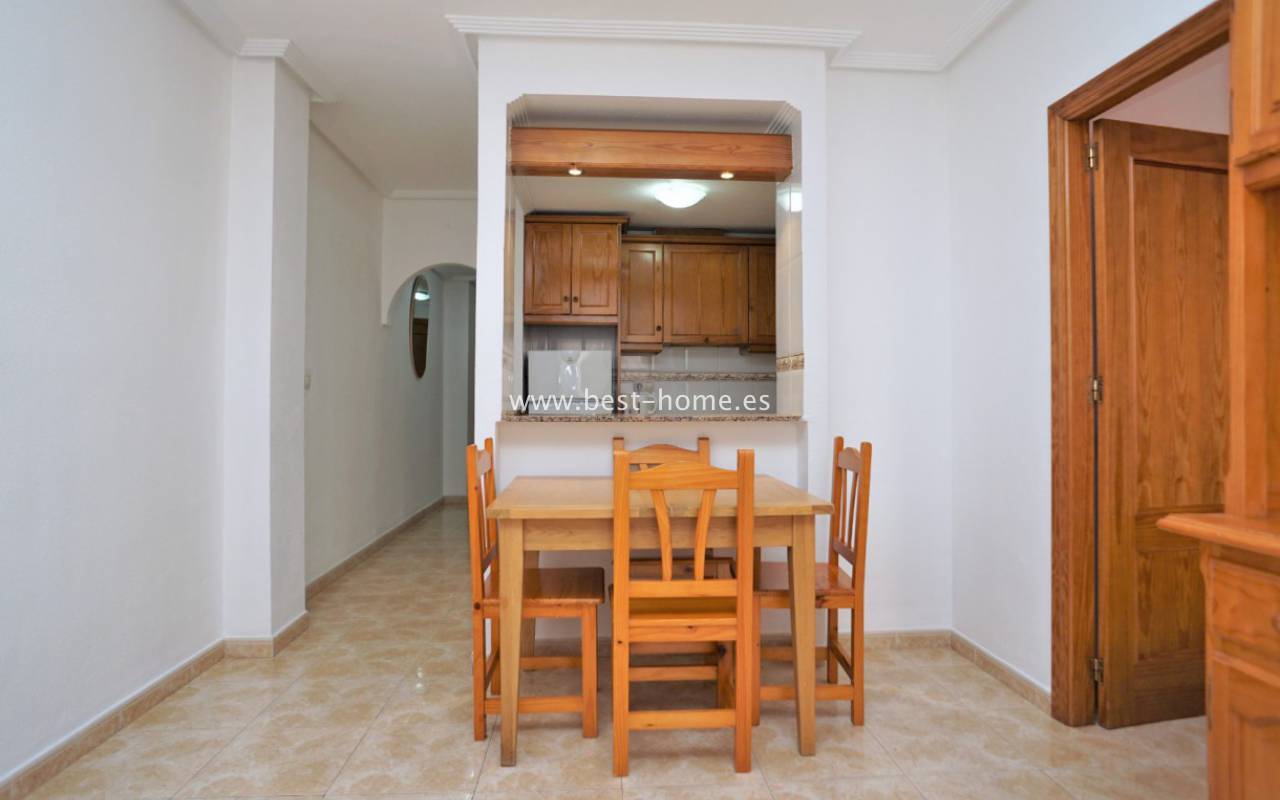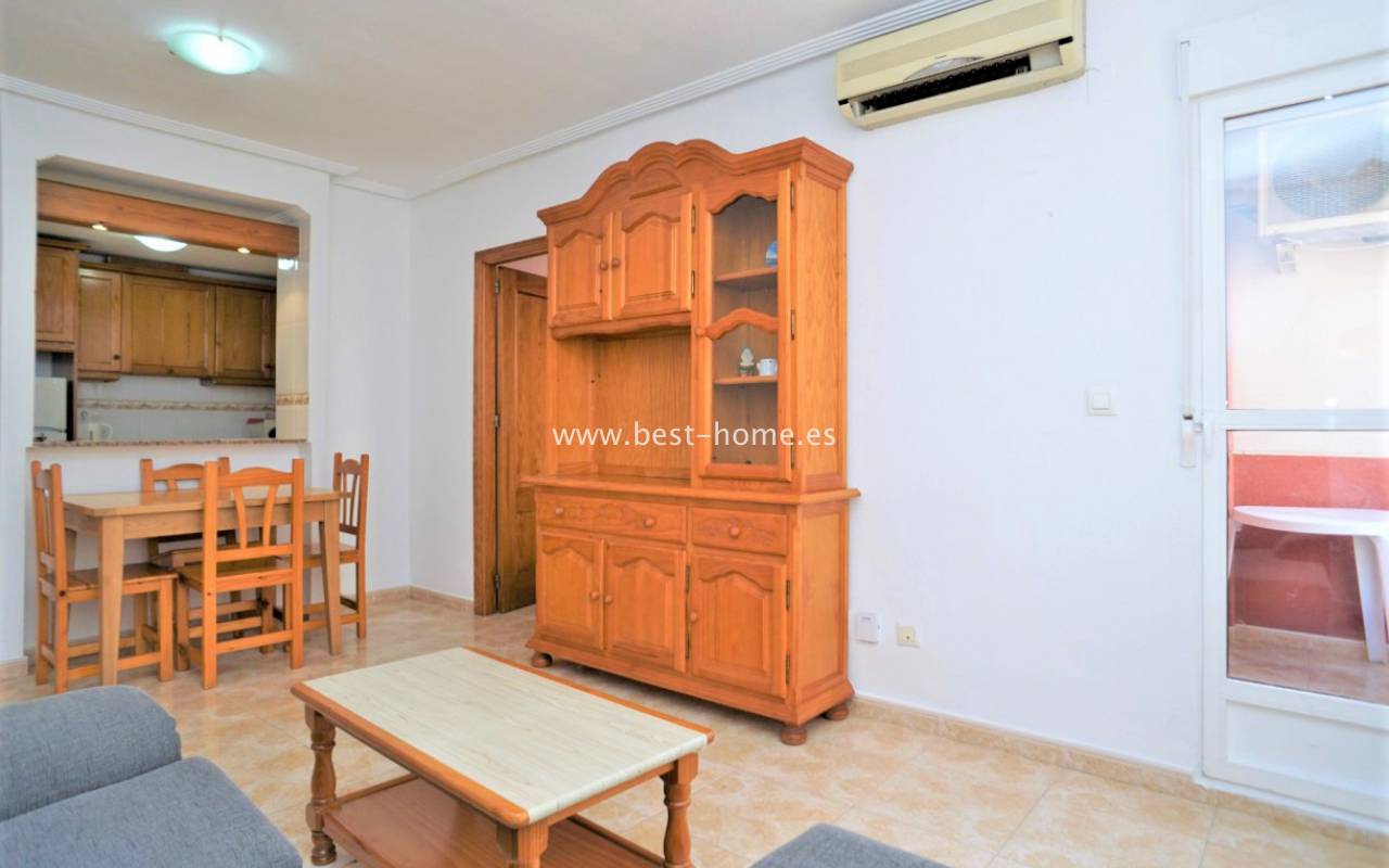 The spacious apartment is centrally located, next to the beautiful park "Las Naciones". The property is on the 3rd floor, consists of two bedrooms, spacious and bright living room and a furnished kitchen with a utility room. From the living room there is an exit to the terrace. The master bedroom has a huge built-in wardrobe. Household appliances and air conditioning included in the price. Swimming pool for residents.