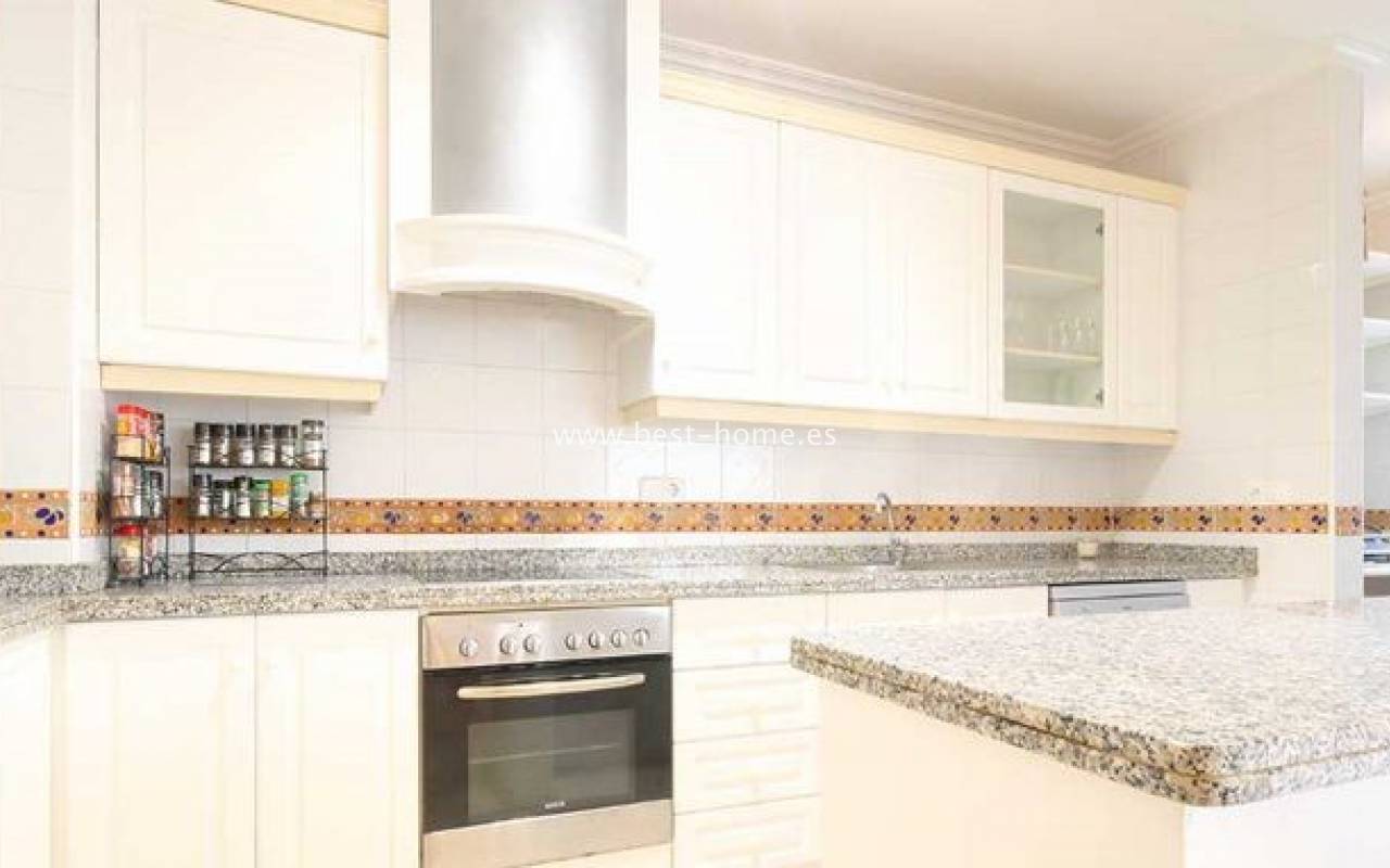 Great apartment in Los Dolses with 3 bedrooms and fireplace. The apartment is located in a very quiet and peaceful neighborhood. It has three bedrooms with built-in wardrobes, a spacious living room with a fireplace and an open kitchen, a bathroom and a terrace with south orientation. Additionally, there is a swimming pool for the residents of the estate. Close to a golf course and green spaces, gardens and parks.