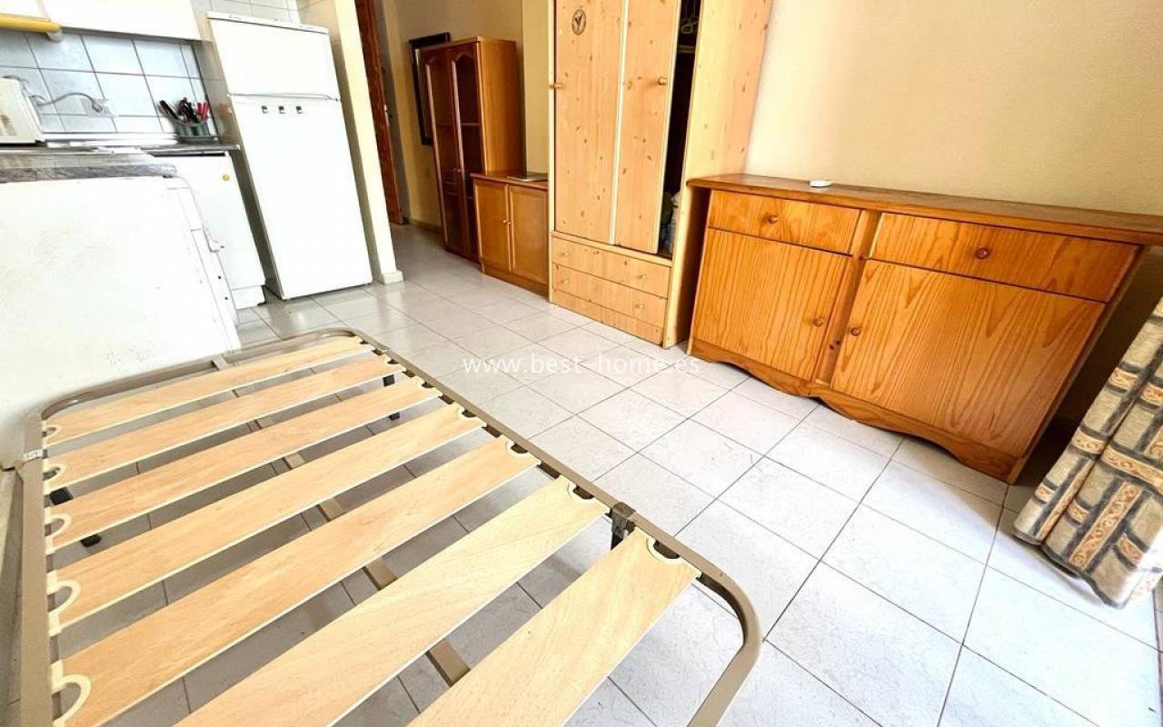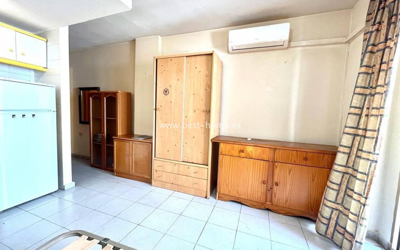 A unique opportunity at a very good price !!! Studio apartment with a terrace and south-east orientation, only 150 m from the Acequión beach !!! An ideal investment apartment for holiday or long-term rental. It has a living room with an open kitchen and a bathroom, a built-in wardrobe in the hall, a built-in terrace. It is sold complete with furniture. The dwellers are surrounded by all kinds of services, close to shops, restaurants, bars and pubs.