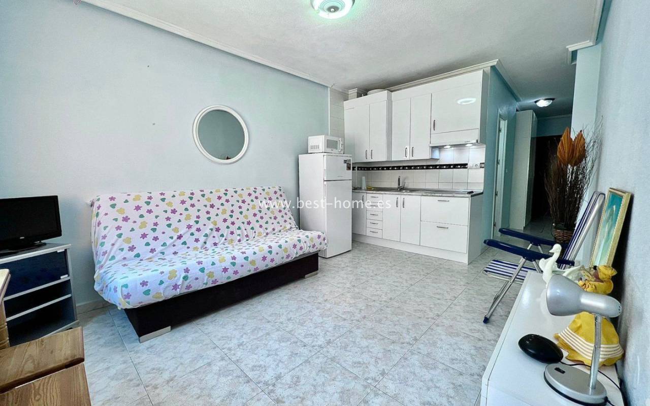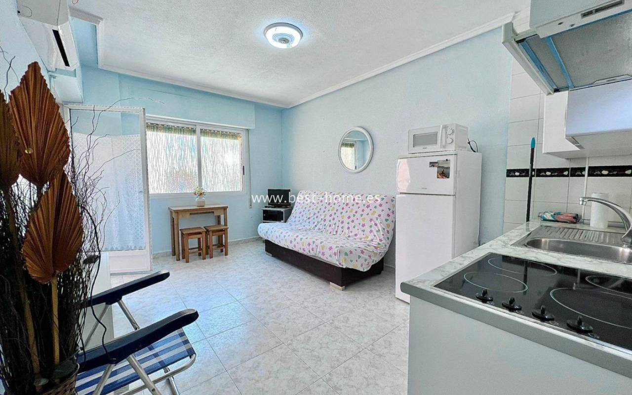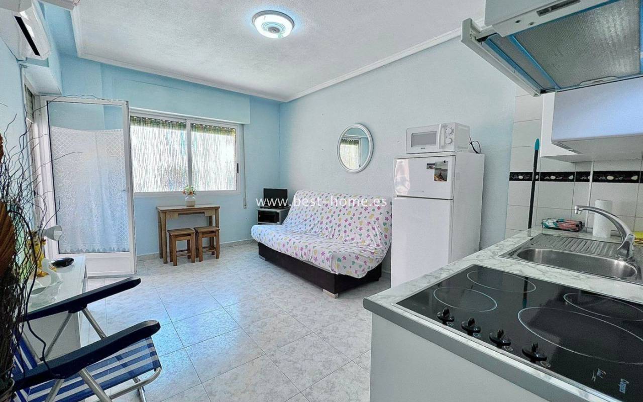 Reduced price studio with terrace in Torrevieja, only 450 m from the beach. It has a living room with a terrace, an open kitchen and a bathroom. The apartment has air conditioning installed, it is sold with furniture. An ideal proposition for investors for holiday rental. Close to all amenities, bars, restaurants, shops, pharmacies.