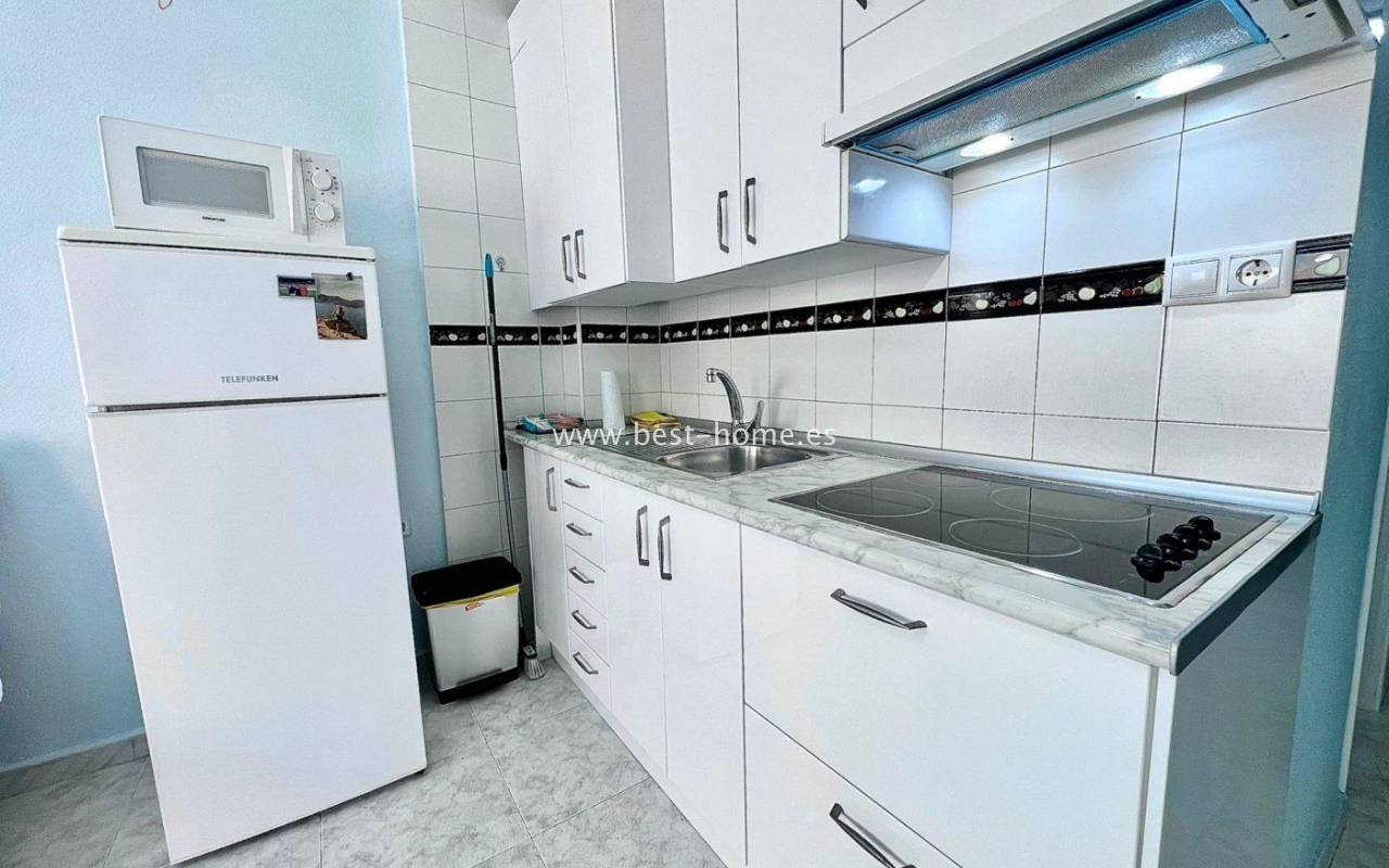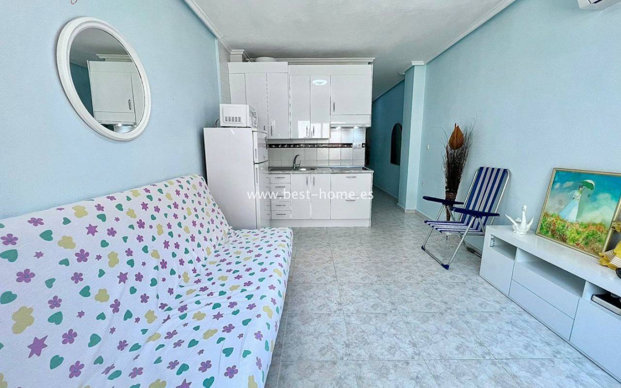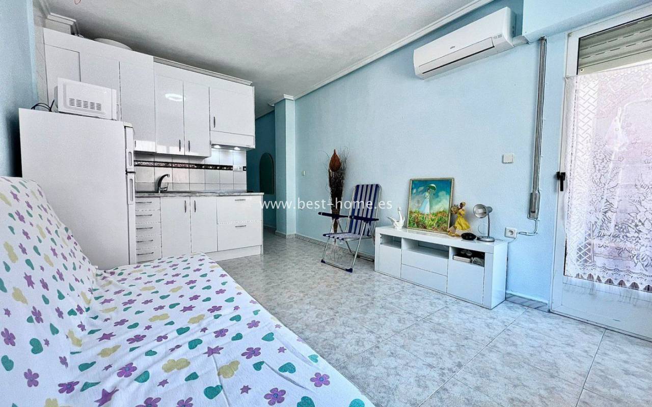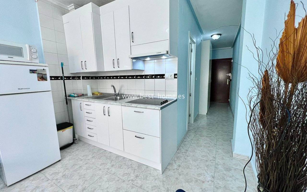 Reduced price studio with terrace in Torrevieja, only 450 m from the beach. It has a living room with a terrace, an open kitchen and a bathroom. The apartment has air conditioning installed, it is sold with furniture. An ideal proposition for investors for holiday rental. Close to all amenities, bars, restaurants, shops, pharmacies.