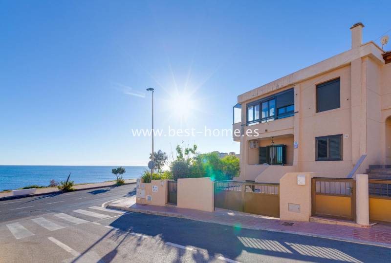 In the first line with a fantastic panoramic view of the sea, a 2-bedroom apartment on the 2nd floor. An ideal property for investors, for holiday rentals. The building is built right next to the beach, 50 m. to the beautiful sandy beach of Cabo Cervera. To the second beach in La Mata 400 m. The apartment has a large, spacious, bright living room with dining area and a large family table, where we can enjoy a wonderful view of the Mediterranean Sea. In addition, in the apartment you will find an open kitchen equipped with household appliances, a main bedroom overlooking a closed terrace and a second smaller bedroom with 2 beds, a bathroom. The apartment is equipped with air conditioning and sold with furniture. Close to all amenities, shops, bars, restaurants, pubs.