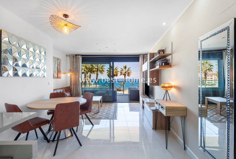 New, fantastic and very well located apartments will be built in Punta Prima. The 5-storey building offers very spacious apartments with two bedrooms, two bathrooms and a large living room with a dining room and a furnished kitchen. The price includes finished bathrooms with furniture, a mirror, lighting and underfloor heating, built-in wardrobes, kitchen furniture with LED lighting, a parking space and a storage room in the basement of the building. The buyer can choose the color of the walls, type of floor, kitchen countertop, kitchen cabinets and tiles in the bathrooms. On the roof of the building we will find a wonderful infinity swimming pool (74 m2) with a view of the sea and 3 deckchairs immersed in the water, a chill-out zone, a heated jacuzzi and a place for eating and relaxing, all surrounded by lush vegetation.