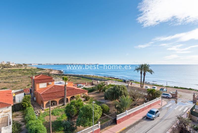 The property is located in a beautiful, green location, close to the Campoamor golf course. Peaceful, quiet housing estate with a swimming pool for residents. The house has a large corner and very sunny garden with direct access to the swimming pool. On the ground floor there is a spacious and bright living room with an open, fully equipped and modern kitchen and a bathroom. There is also an exit to the garden with a barbecue area by the kitchen. On the first floor there are two double bedrooms with built-in wardrobes and a bathroom. The double bedroom has an exit to the terrace with nice views of the surrounding area and the swimming pool, from the terrace by stairs we get to a private solarium with a beautiful view of the sea, there is also a utility room.