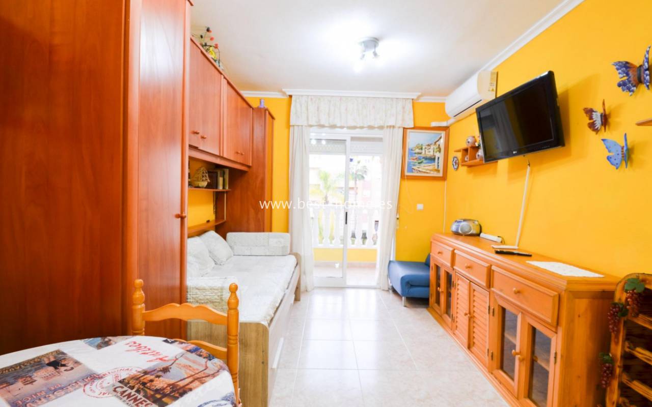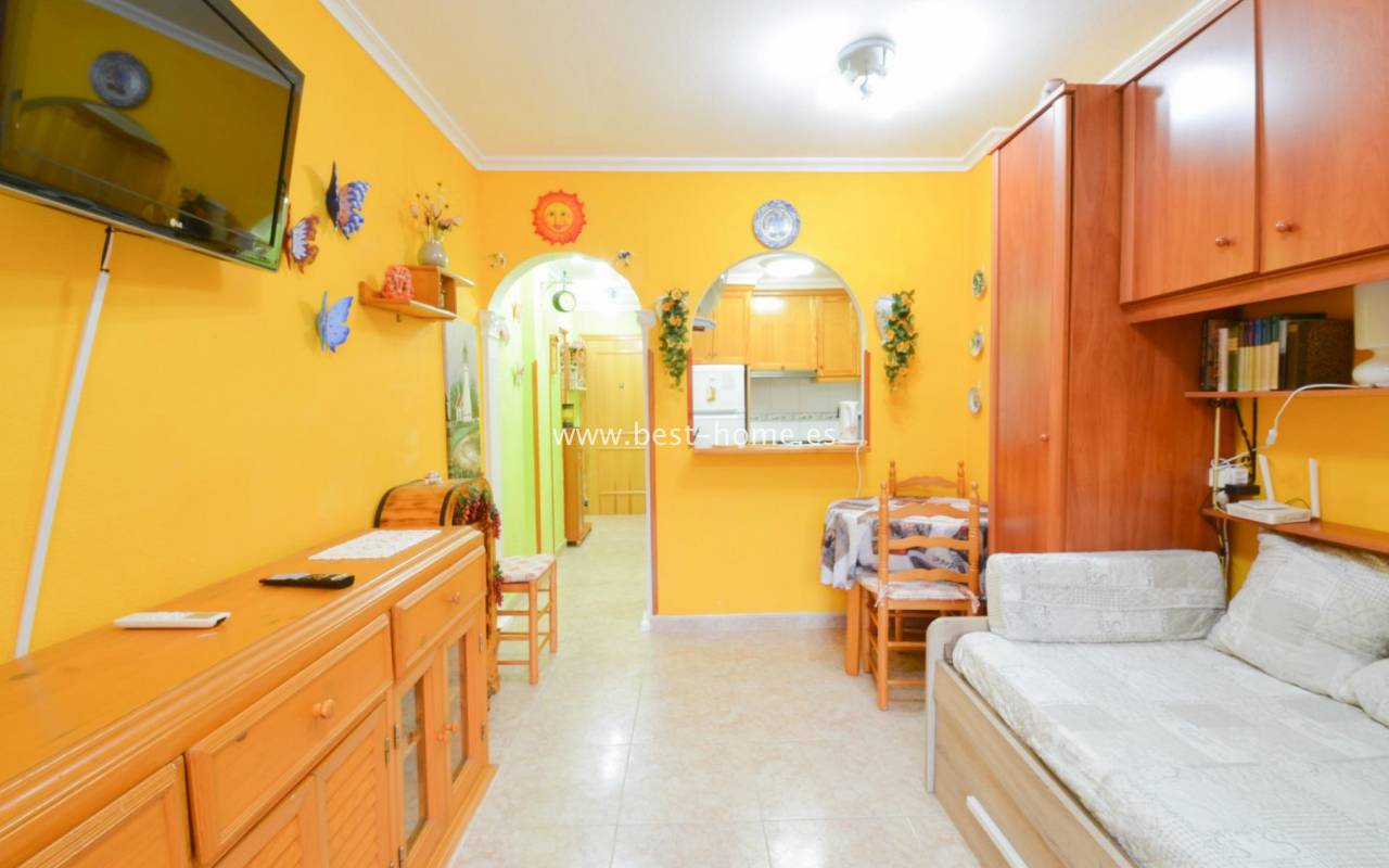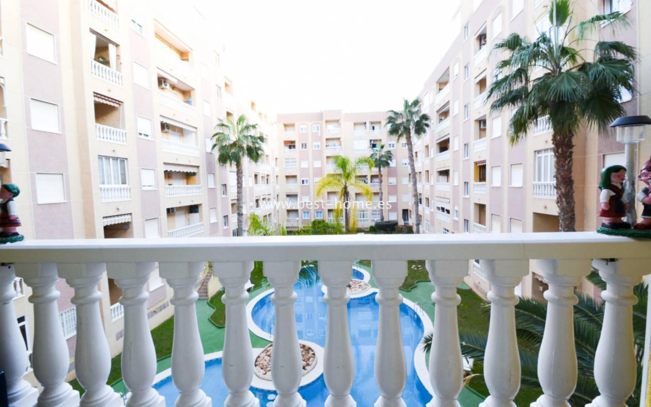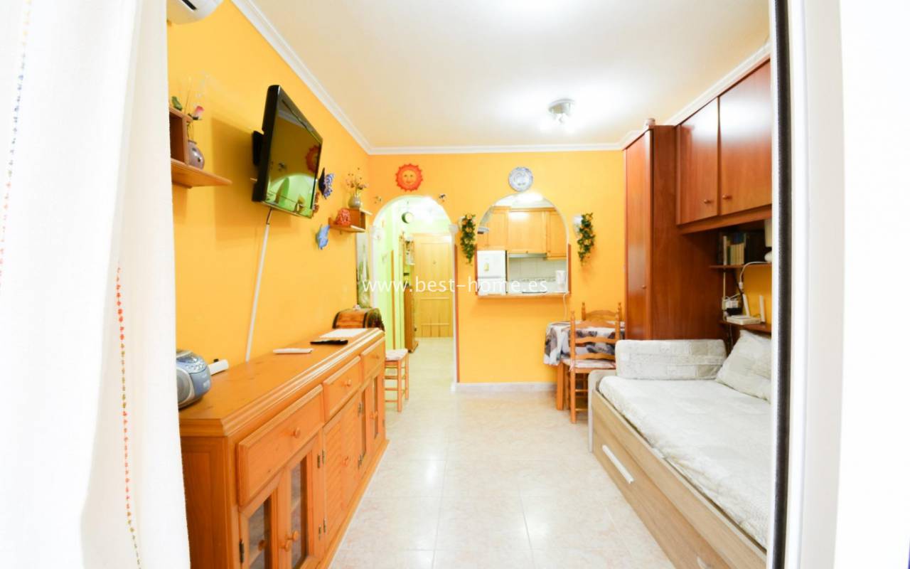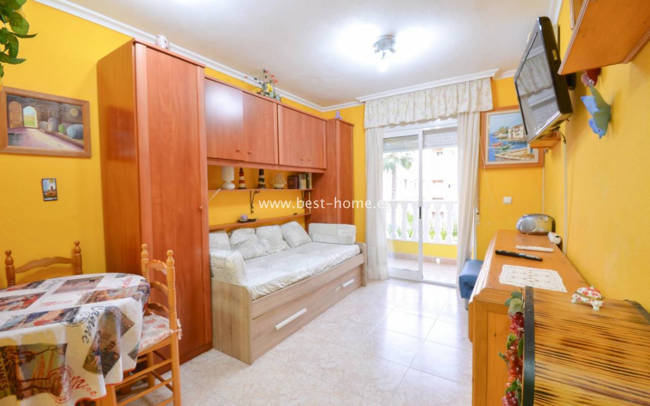Great offer!!! Studio with community pool, garage at the National Park in Torrevieja. It has a living room with access to a terrace overlooking the pool and palm trees, American-style kitchens with household appliances and a compact bathroom. The price of the property includes a parking space in the underground garage and a utility room. The apartment is equipped with air conditioning and sold with furniture. An ideal property for holiday rentals. Close to the park, gardens, bars, restaurants and lots of shops.