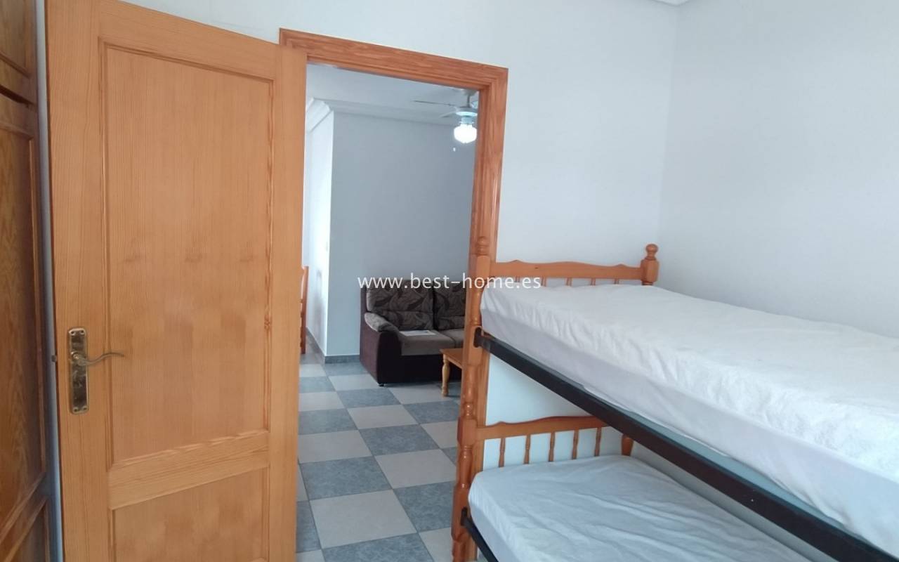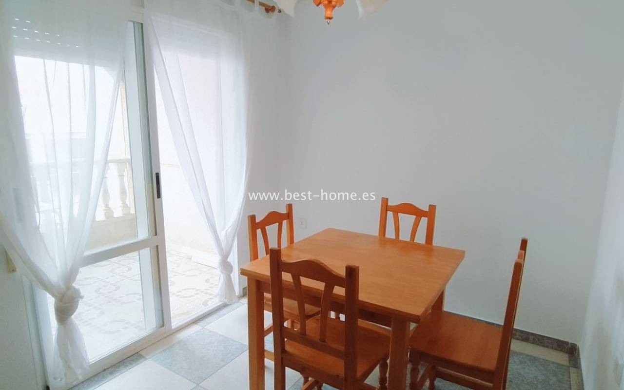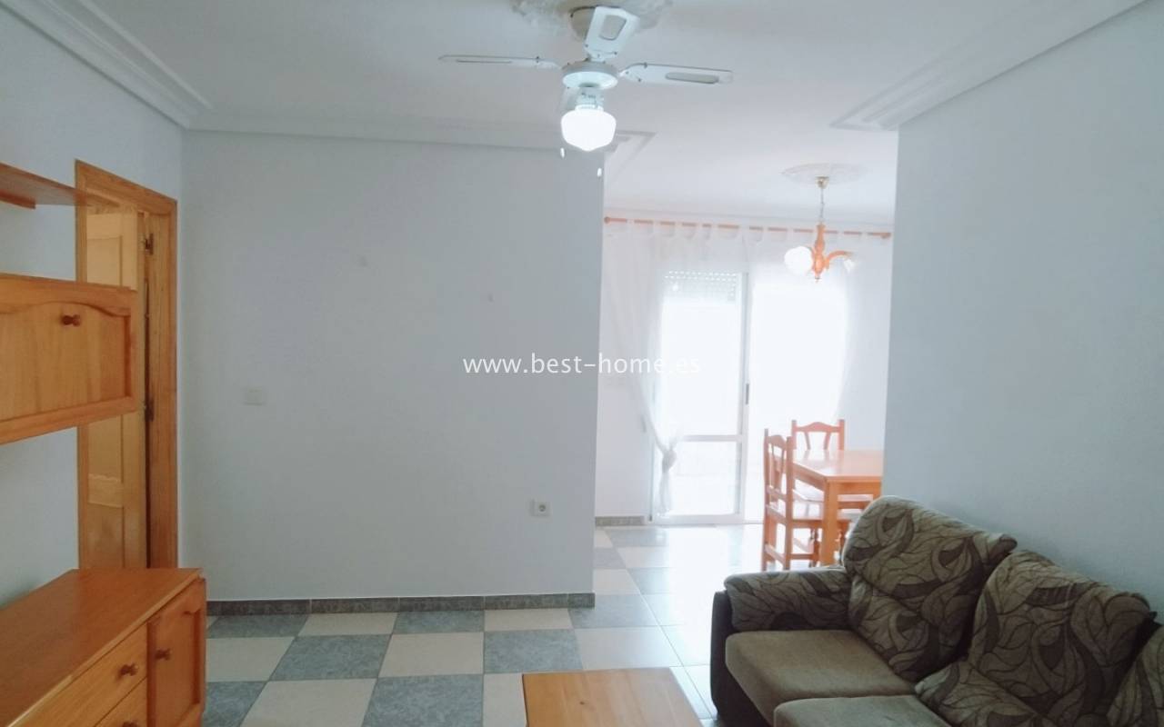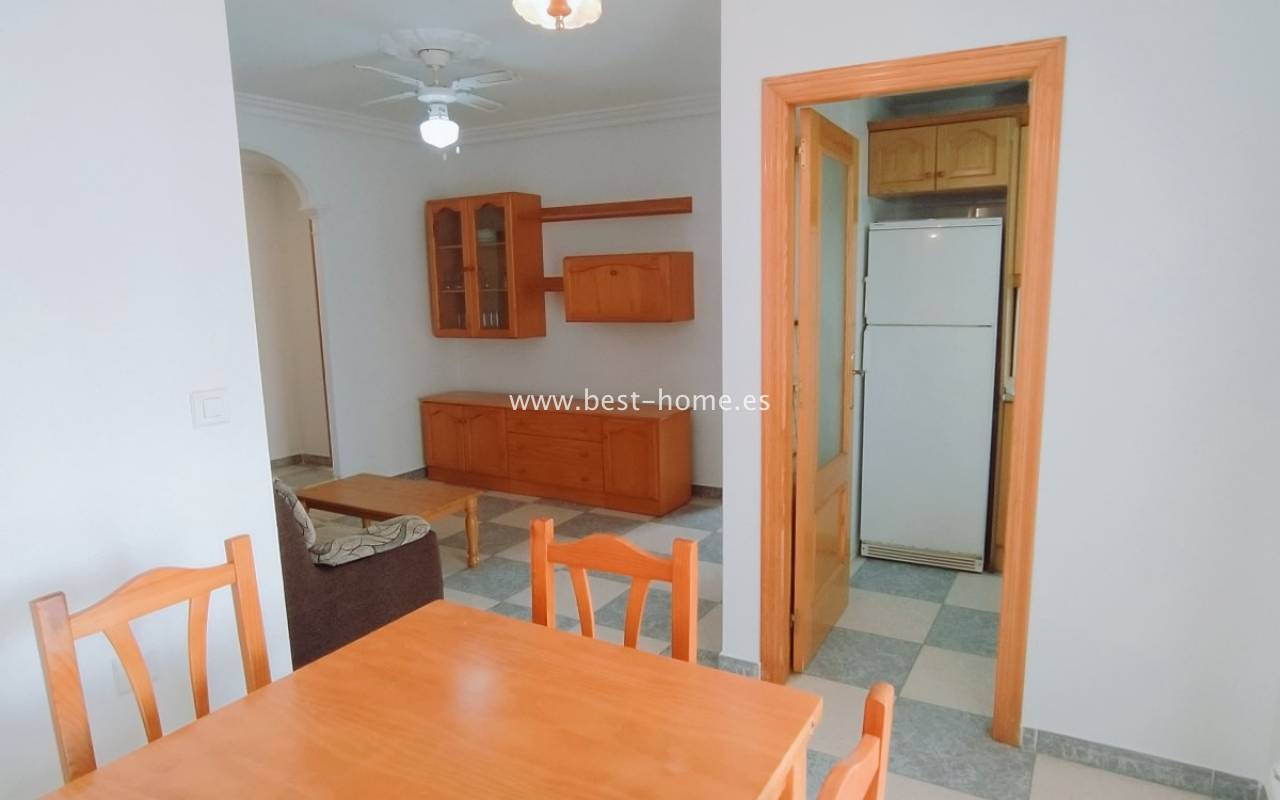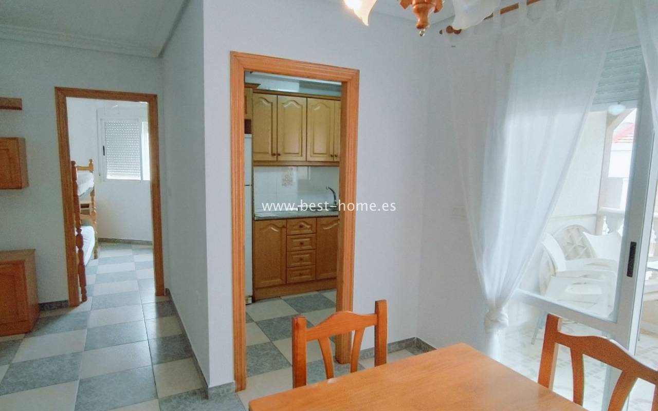 Apartment near the sea with 2 bedrooms in La Mata. It has a living room with a dining room and access to the terrace, 2 bedrooms, including one double, a kitchen equipped with household appliances and a bathroom. Apartment to live in, furnished and sold with furniture. Perfect investment for holiday or long-term rental. Nearby there are plenty of pubs, cafes, restaurants and a promenade stretching along the sea.