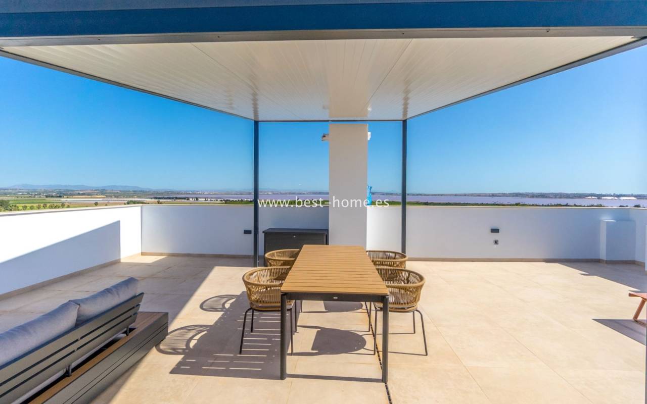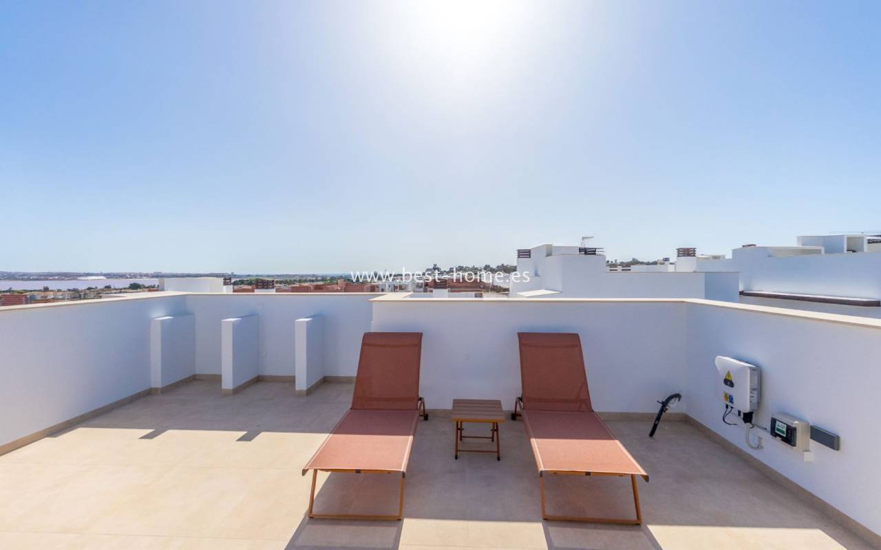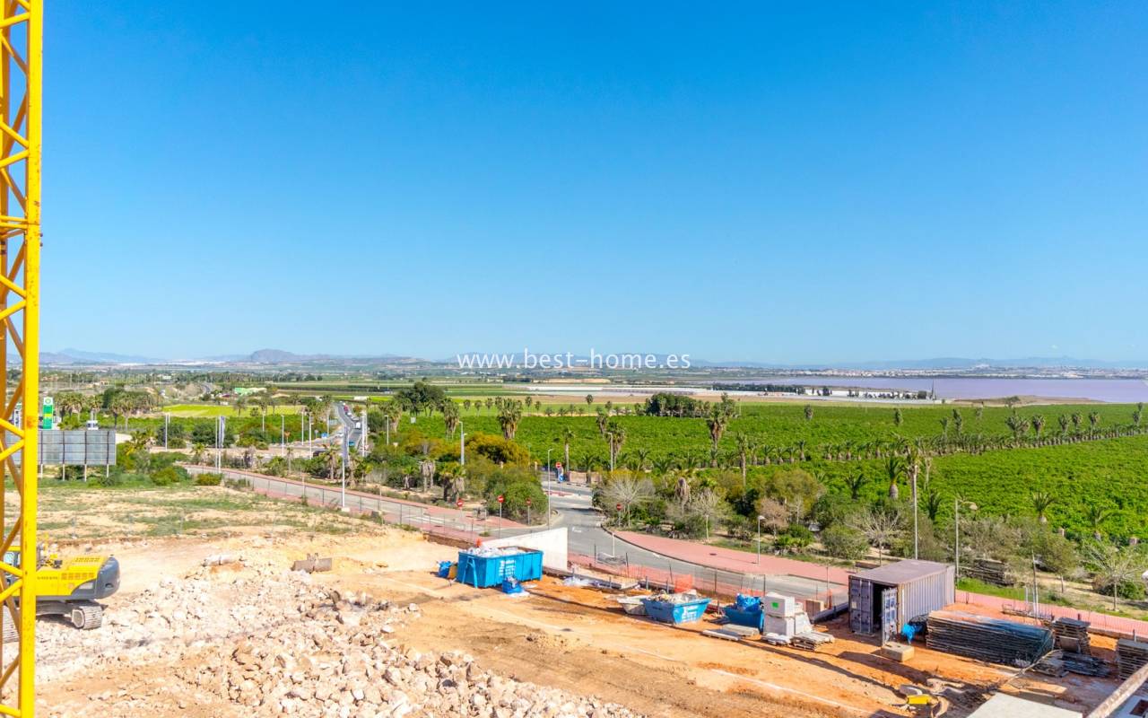 New, very attractive bungalows are being built in a great location in Los Balcones. There will be 48 apartments in the gated estate, including 24 on the ground floor with a front (26 m2) and rear terrace (30 m2) or on the first floor with a private solarium (65 m2). Each bungalow will consist of two bedrooms with built-in wardrobes, two complete bathrooms, a furnished kitchen with a bar and a sunny, spacious living room with a dining room. Each property will have stunning views of the salty pink lagoon and orange forests. The price includes kitchen furniture, heated floors in bathrooms, pre-installation of central air conditioning and complete bathrooms. Optional parking space (€10,000) and storage room (€3,000) in the basement of the building.