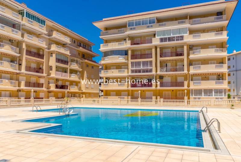 2 bedroom duplex with private garden and community pool in La Mata. It has a living room with access to the garden, 2 double bedrooms, an American-style kitchen equipped with household appliances, a bathroom and a toilet. The property is furnished and sold with furniture. There is a swimming pool in the estate, intended for residents. An ideal house for permanent residence or holiday rental. Nearby you will find a large number of pubs, restaurants, cafes, a bank, a park and a beautiful promenade stretching along the sea.