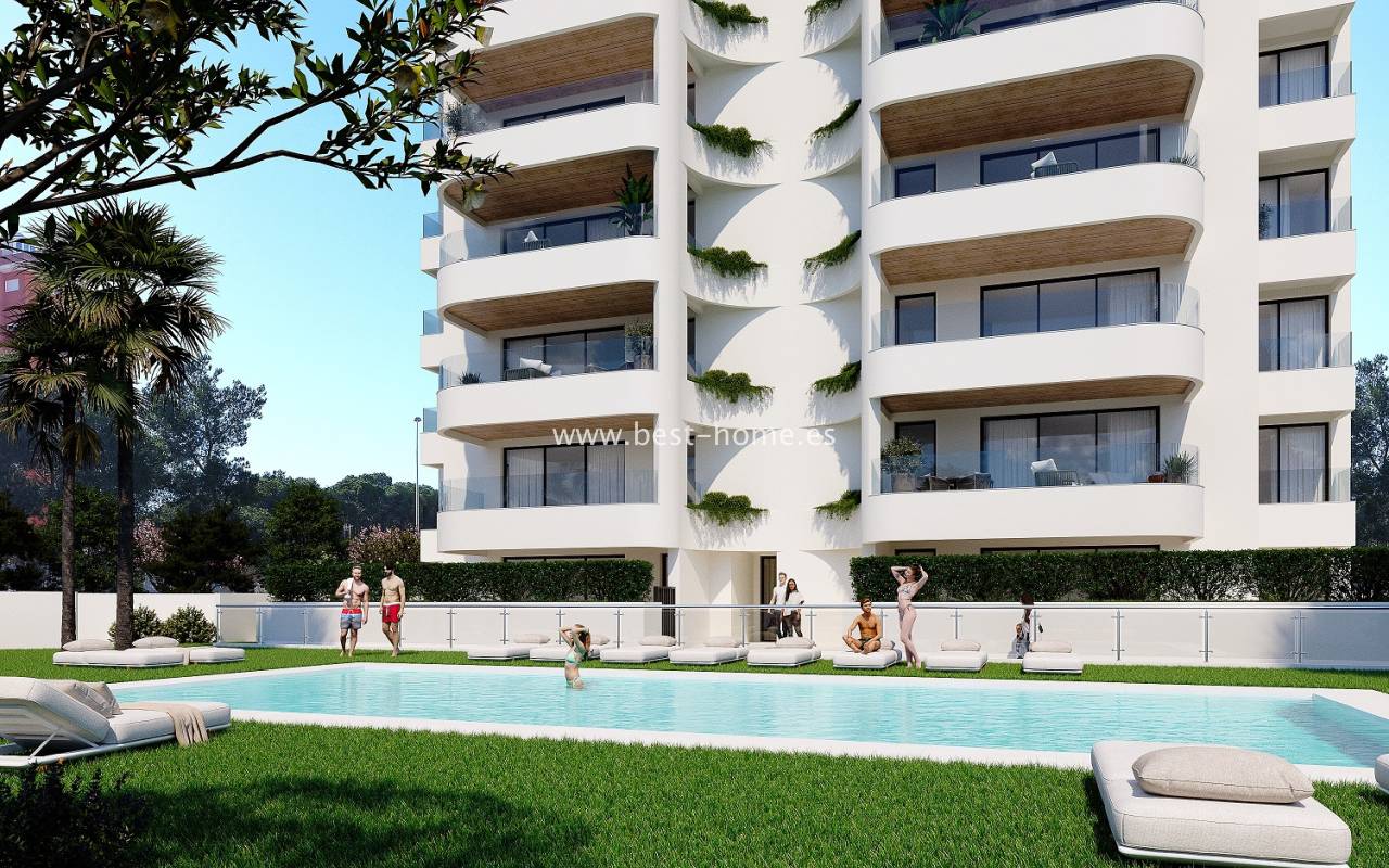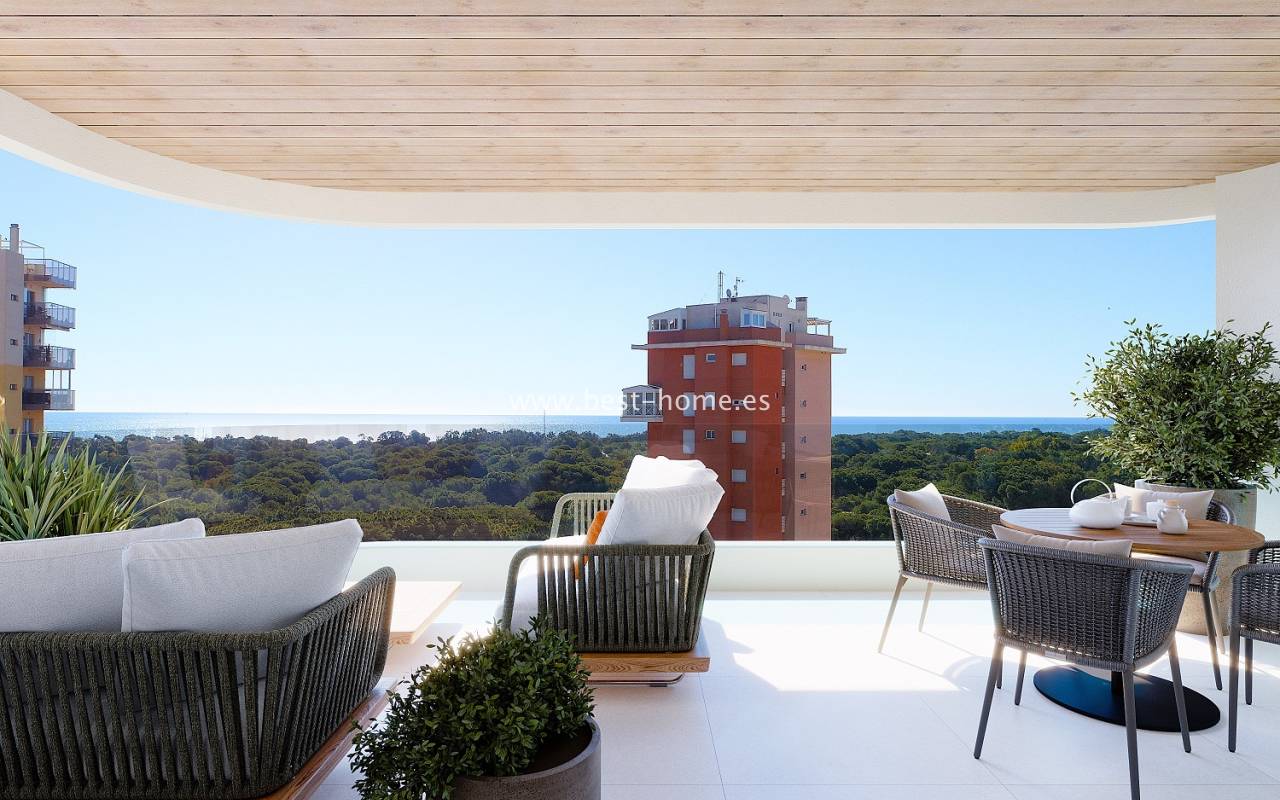 New, attractive apartments are being built in a great location next to the dunes in Guaradamar del Segura. The properties will consist of two bedrooms with built-in wardrobes, two bathrooms and a spacious living room with a dining room and a furnished kitchen. From the living room there will be access to the terrace, with fantastic views of the dunes, park and sea from the upper floor. The price will include complete bathrooms, buildings with household appliances (induction hob, oven, fridge, washing machine and dishwasher), pre-installation of central air conditioning, parking space and storage space. The estate will include a shared swimming pool with sun loungers, lush gardens with a chill-out zone, and a parking lot for bicycles with charging options.