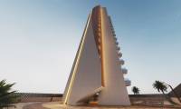 A new, luxurious apartment building is being built in a great location in Clape, between the beach and the salty lagoon. The spacious apartments will consist of a furnished and equipped kitchen with a dining room and a living room, a master bedroom with a dressing room and an en-suit bathroom, two further bedrooms, a second bathroom and a storage room/utility room. Each room will have access to a huge terrace with an area of 31 m2. The property will have views of the sea and the natural park/mountain Penyal d'Ifac. The price includes kitchen furniture and household appliances (Zanussi), complete bathrooms, electric blinds in the bedrooms, central hot/cold air conditioning, LED lighting, a parking space and a locker room in the basement of the building.