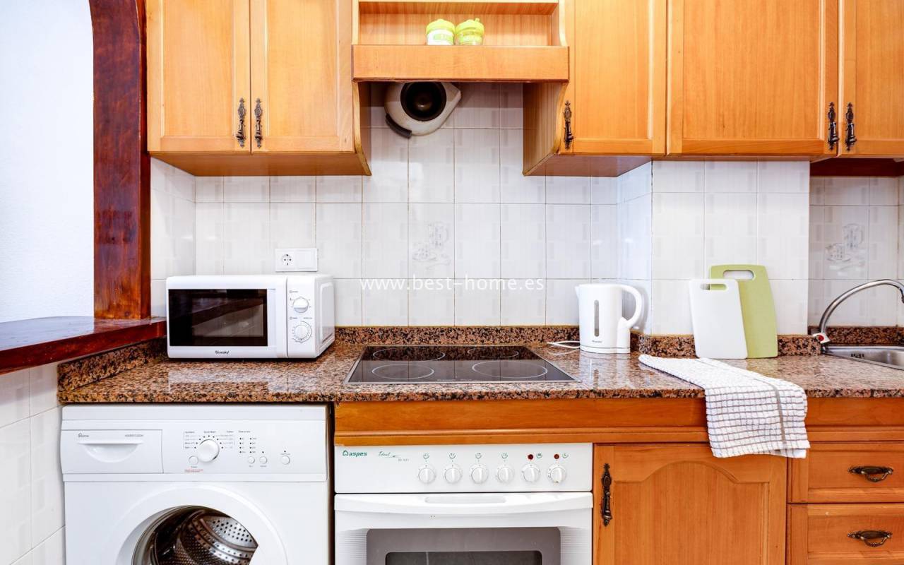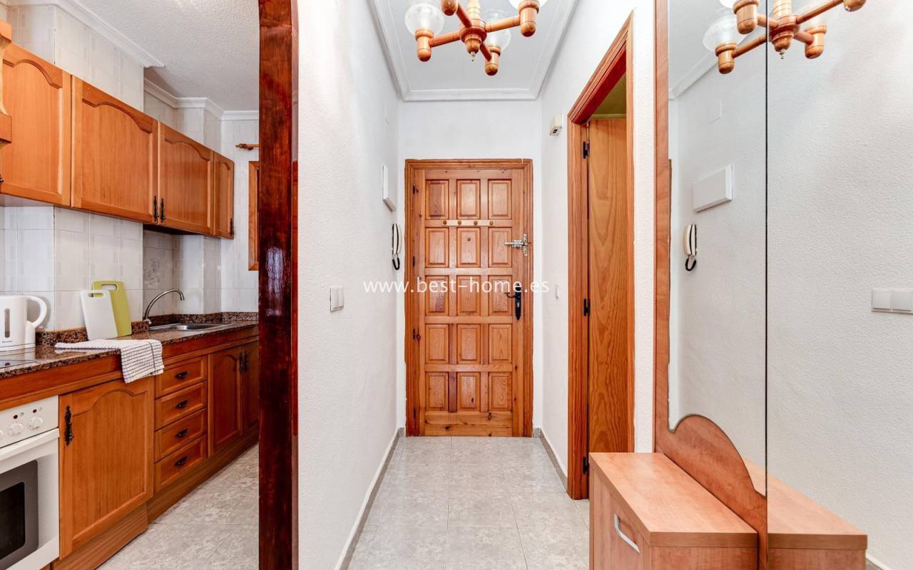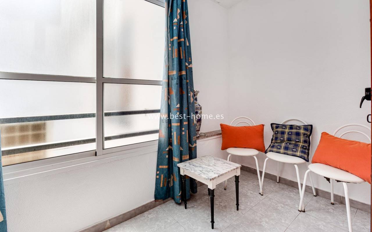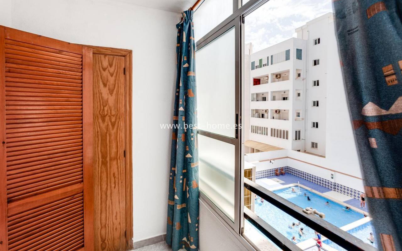Studio with community pool close to Playa del Cura beach in Torrevieja. It has a living room with an open kitchen and access to the terrace overlooking the swimming pool, and a bathroom. Perfect apartment for holiday rental or permanent residence. Equipped with air conditioning and sold with furniture. There are many shops, pubs and restaurants nearby.