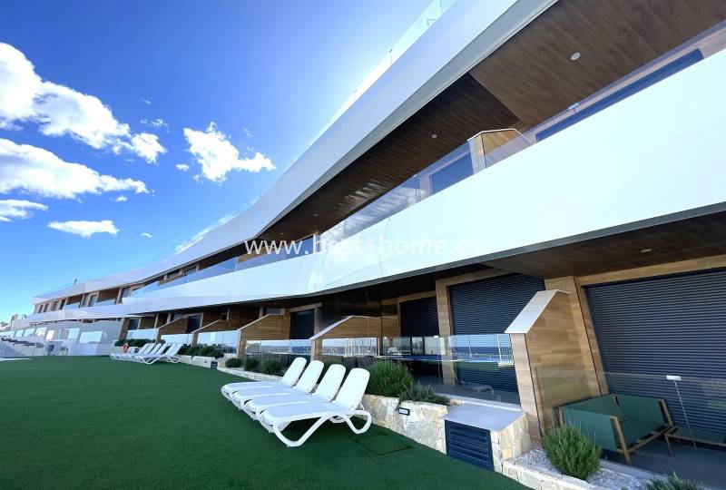 New, fantastic villas are being built in a great location in a closed and guarded area next to an 18-hole golf course. The single-story villas will consist of 2 large bedrooms, 2 bathrooms, a toilet, an entrance hall, a spacious and bright living room with a dining room and a kitchen with an island, and a laundry room. In front of the house you will find a private swimming pool surrounded by lush greenery. The price includes complete bathrooms, kitchen furniture (hood and induction hob), central hot/cold air conditioning, Domotica system, heated floors in the bathrooms and living room, LED lighting, private swimming pool. Houses with energy certificate A. In the urbanization area we will find a small shopping center, restaurants, bars, playgrounds, cycling paths and a sports center with a lagoon for swimming on sub boards and a sofa, a gym, a place for yoga, and padel courts. and tennis and much more. It is an ideal place to live permanently.