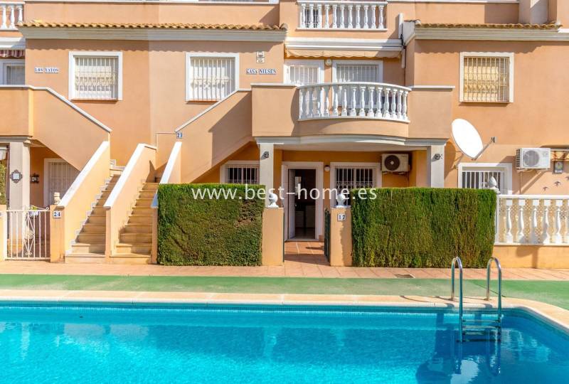 A two-level duplex with a private garden in a quiet, peaceful estate full of vegetation, palm trees, trees, close to the park in Torrevieja. It has a garden through which you enter the bright, nicely arranged living room, where you will find a modern kitchen well-equipped with household appliances. On the top of the property you will find a bright double bedroom with a French balcony with a beautiful view and a renovated bathroom. The apartment is furnished and equipped with air conditioning on each floor. On the estate there are 3 swimming pools intended for residents. Nearby you will find a park, a large number of shops, bars, restaurants.