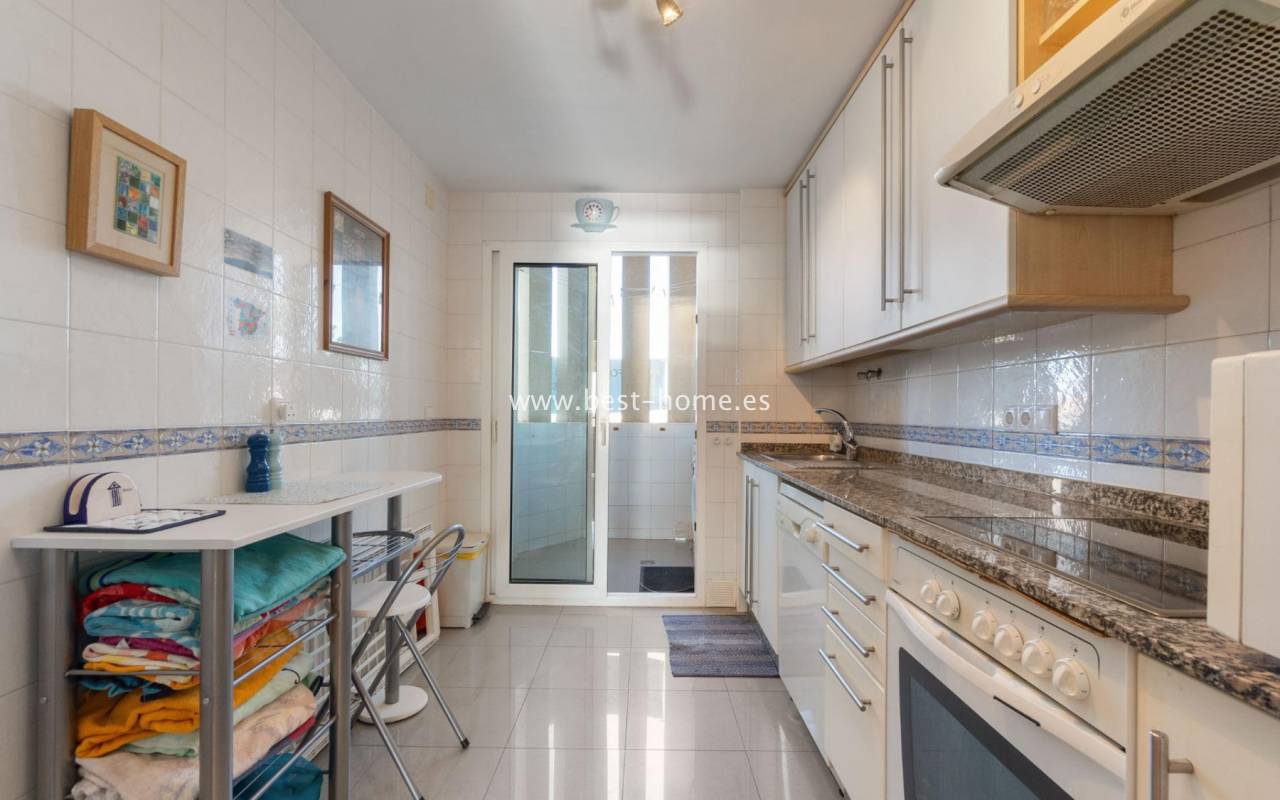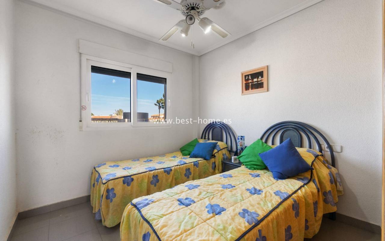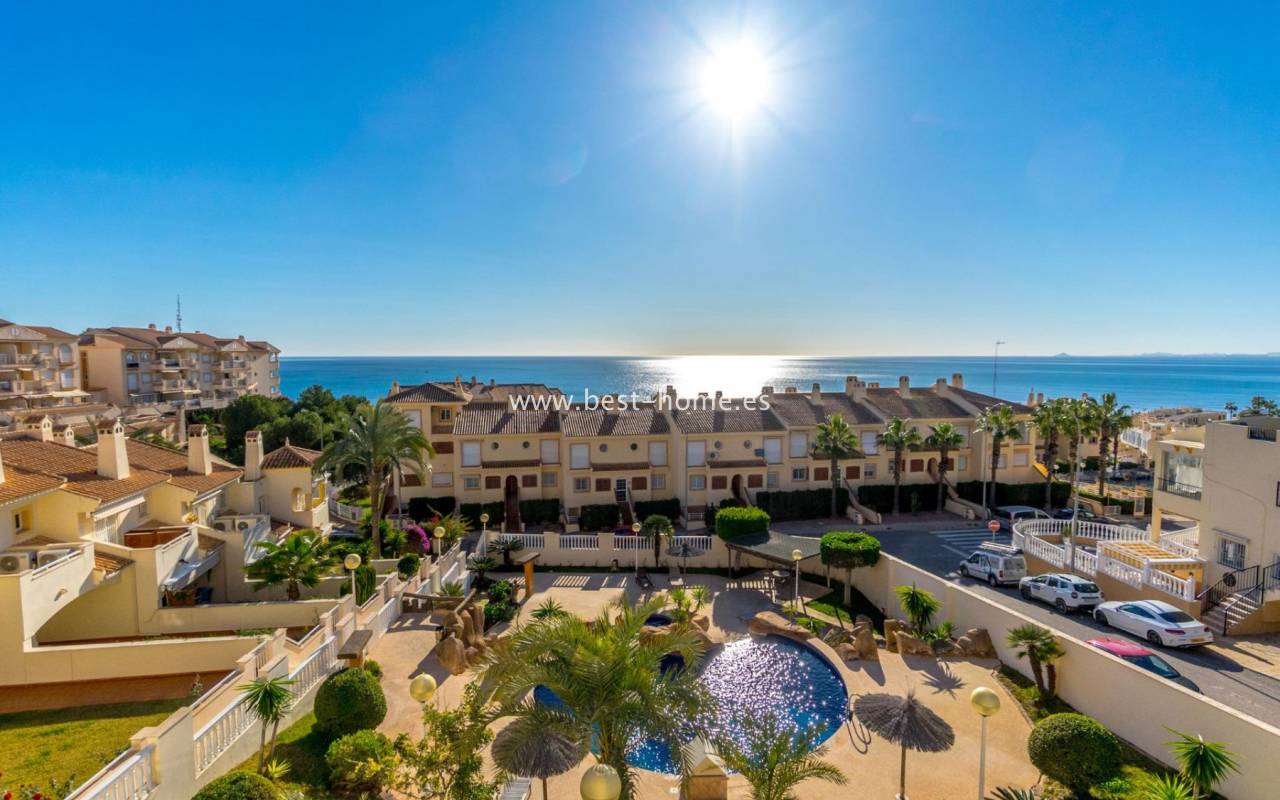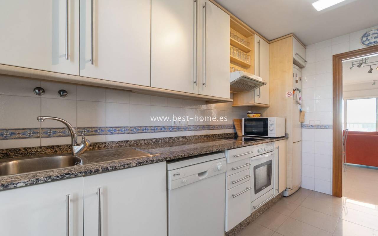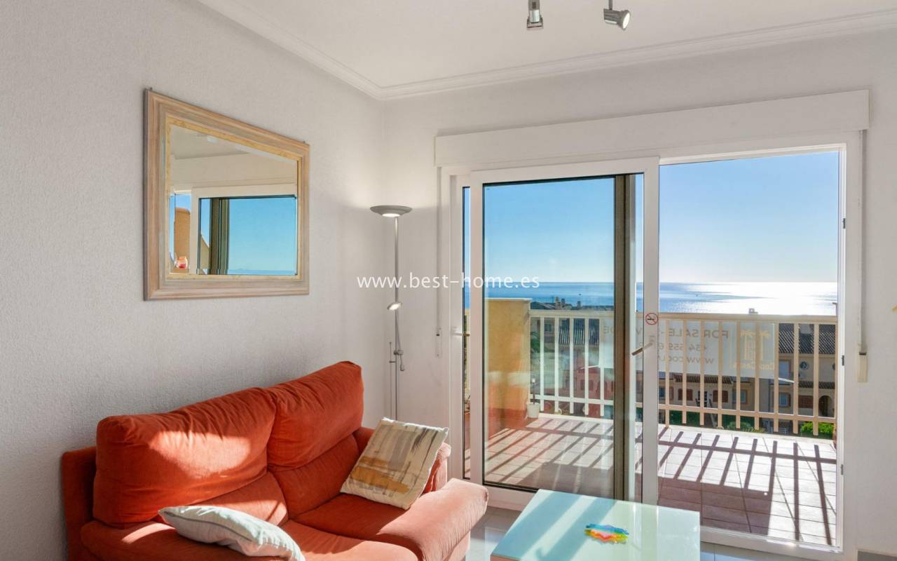 Sunny apartment with fantastic sea views, right by the beach in Dehesa de Campoamor. It has a bright, spacious living room with access to a large terrace, from which there is a beautiful view of the Mediterranean Sea. Additionally, the apartment has 2 double bedrooms, a separate kitchen equipped with household appliances, a bathroom and a laundry room. The price of the property includes a parking space in the underground garage and a storage room. On the estate there are 2 swimming pools, including a paddling pool for children with a waterfall. Nearby we will find a supermarket, pharmacy, café and restaurants. Ideal property for holiday rental or permanent residence.