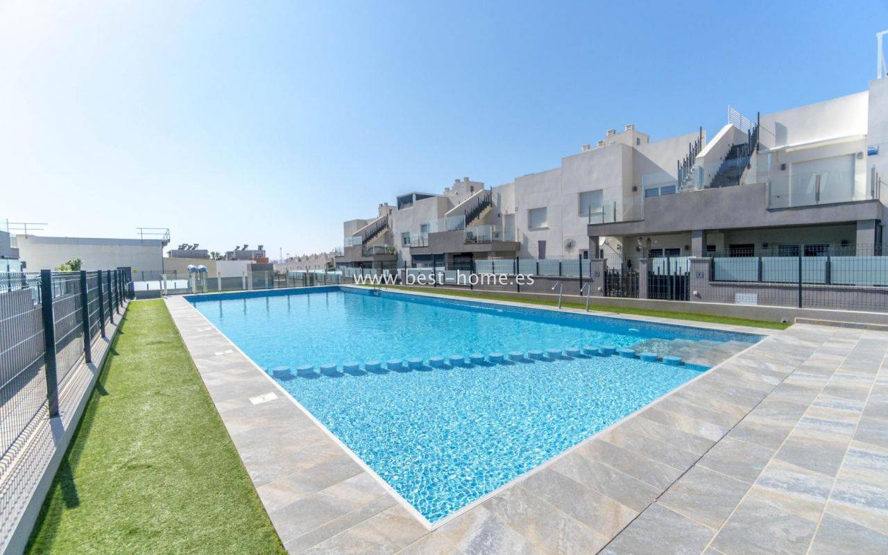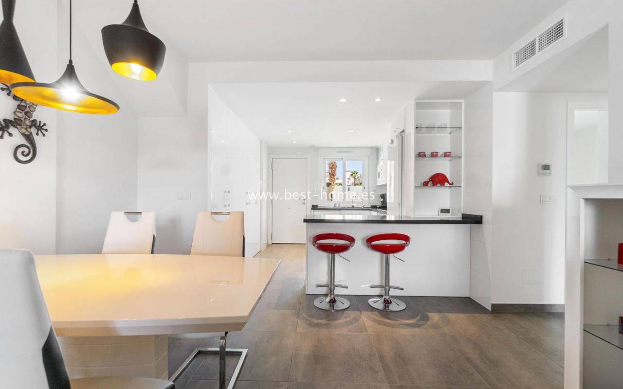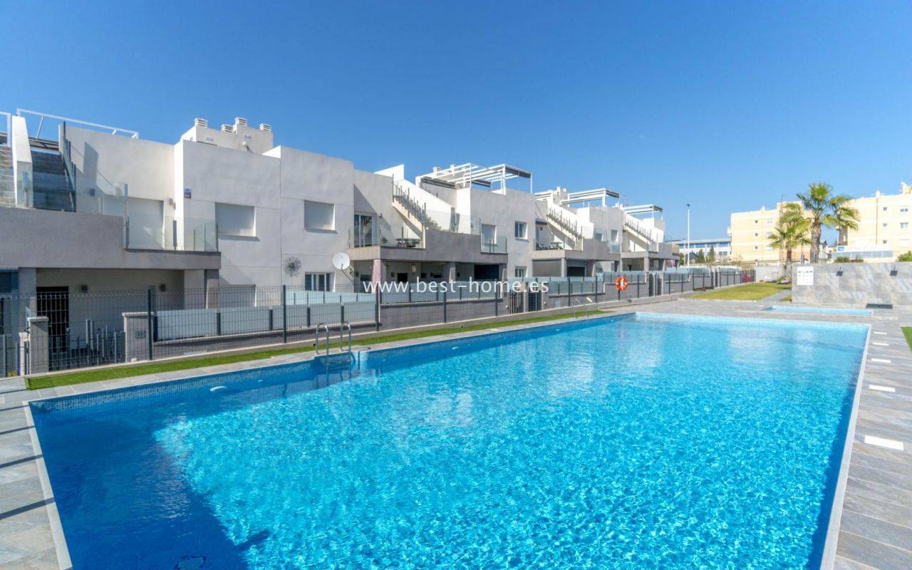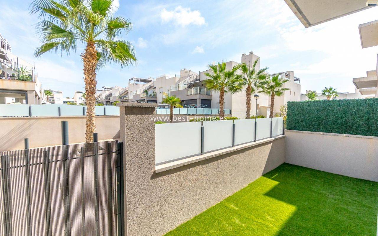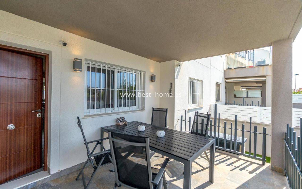Bungalow on the ground floor with a private garden, a parking space and a community pool. We will enter the property through an external terrace, from which there is a view of a beautiful park. Then we will see a spacious living room, an open American-style kitchen equipped with good quality household appliances from which there is direct access to the garden, which is connected by common parts of the residential complex. Additionally, the apartment has 2 double bedrooms and 2 bathrooms. The apartment is equipped with duct air conditioning, underfloor heating and is sold with furniture. Additionally, in the price we will receive a garage space in the underground car park. On the estate there is a swimming pool intended for residents.
