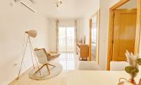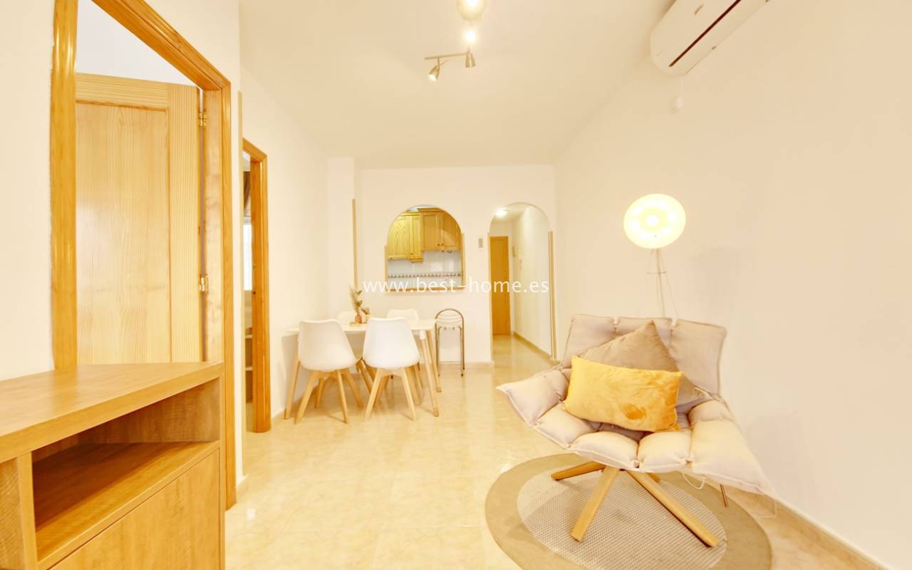 This sunny apartment is the perfect blend of comfort and practicality. The bright living room with access to the terrace offers an ideal space for relaxation and enjoying the outdoors. The apartment features two spacious bedrooms with double beds, and the American-style kitchen is fully equipped with modern appliances, making cooking a pleasure. There's also a stylish bathroom. The apartment is equipped with air conditioning and is being sold fully furnished, meaning you can move in immediately. It’s an excellent option for both permanent living or as a rental property. Additionally, the building offers a community pool exclusively for residents, providing extra comfort and a great way to unwind on hot days.