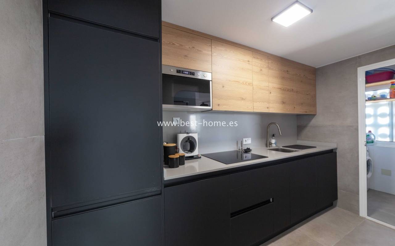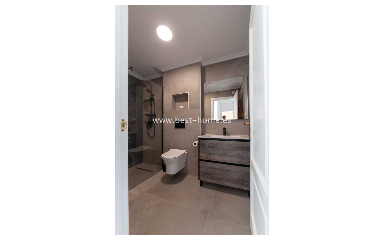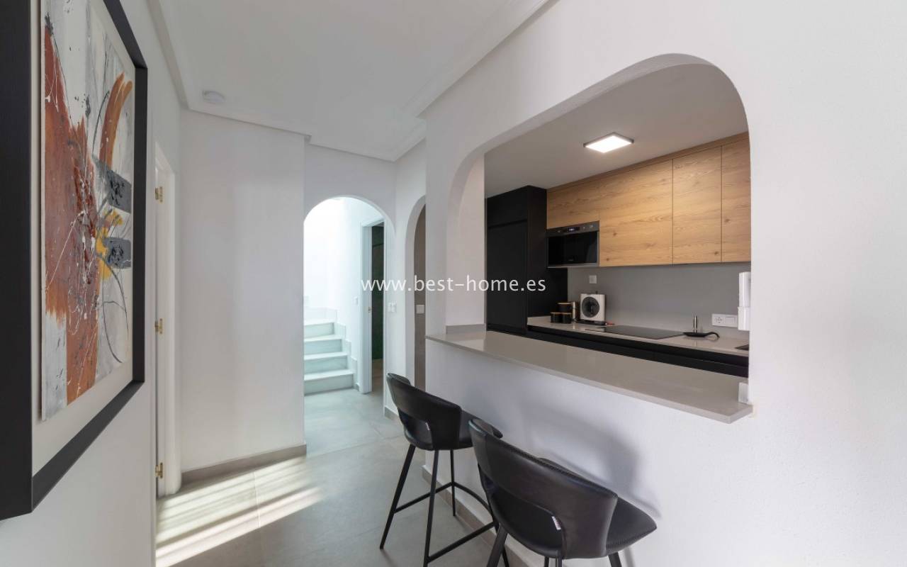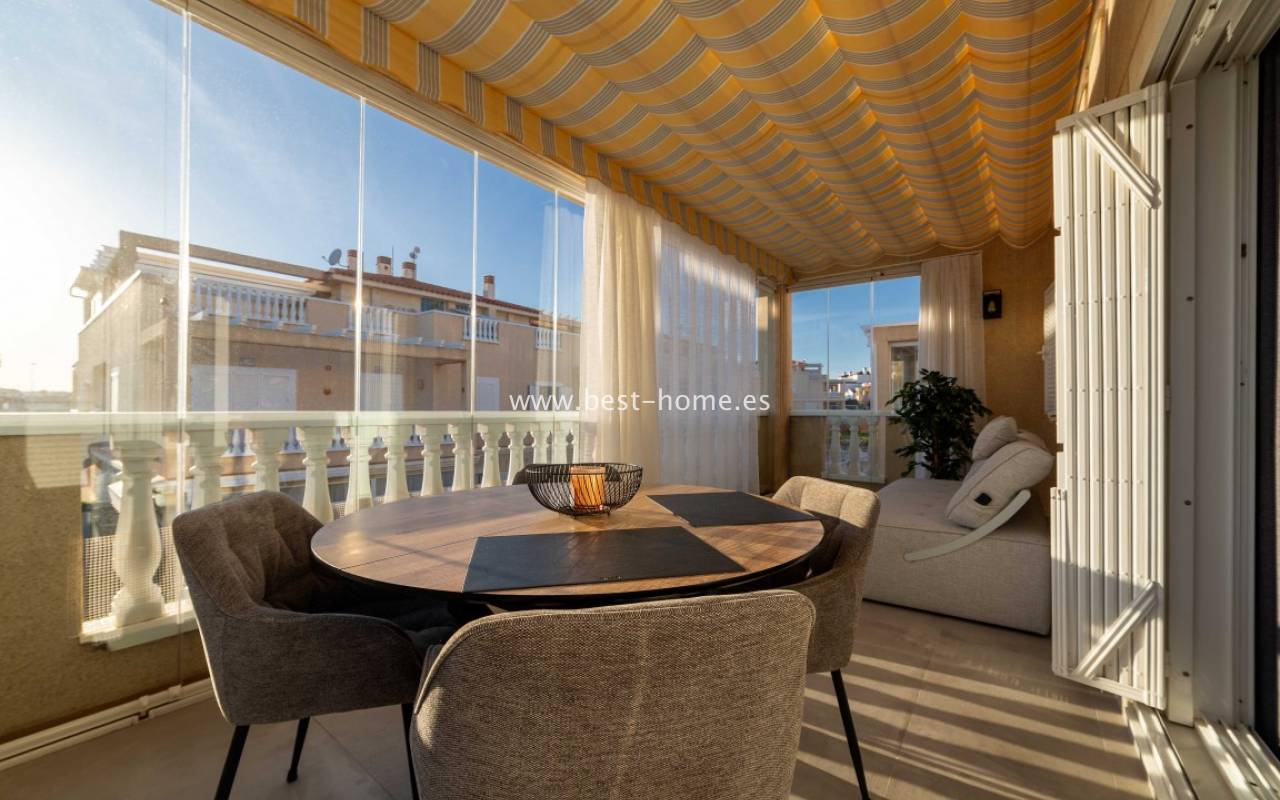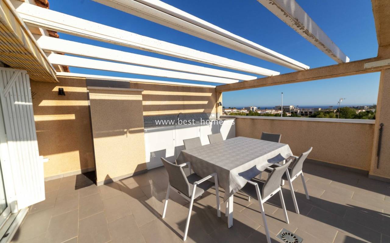 Discover your future home in the beautiful area of Orihuela Costa! This wonderful, corner penthouse, fully renovated, is located in a quiet street on the first floor, with two levels connected by elegant interior stairs. There is no lift in the building.