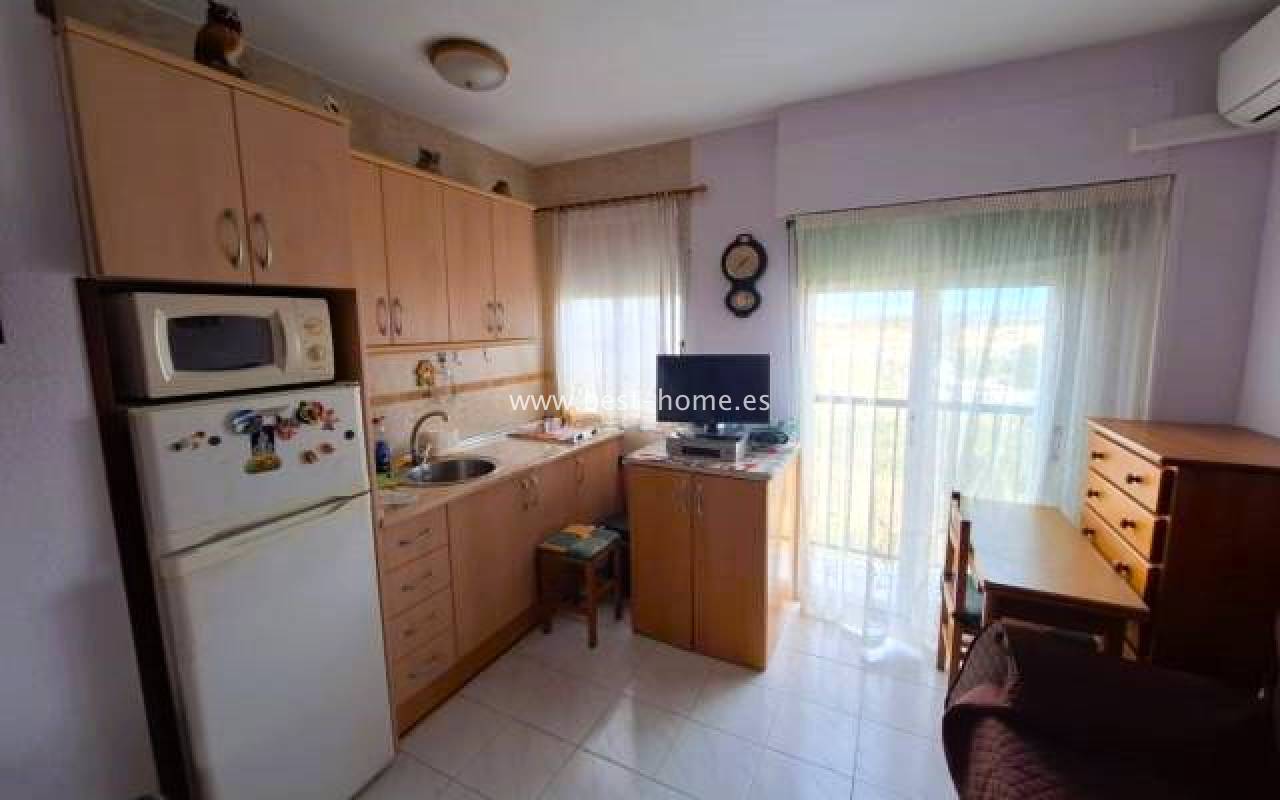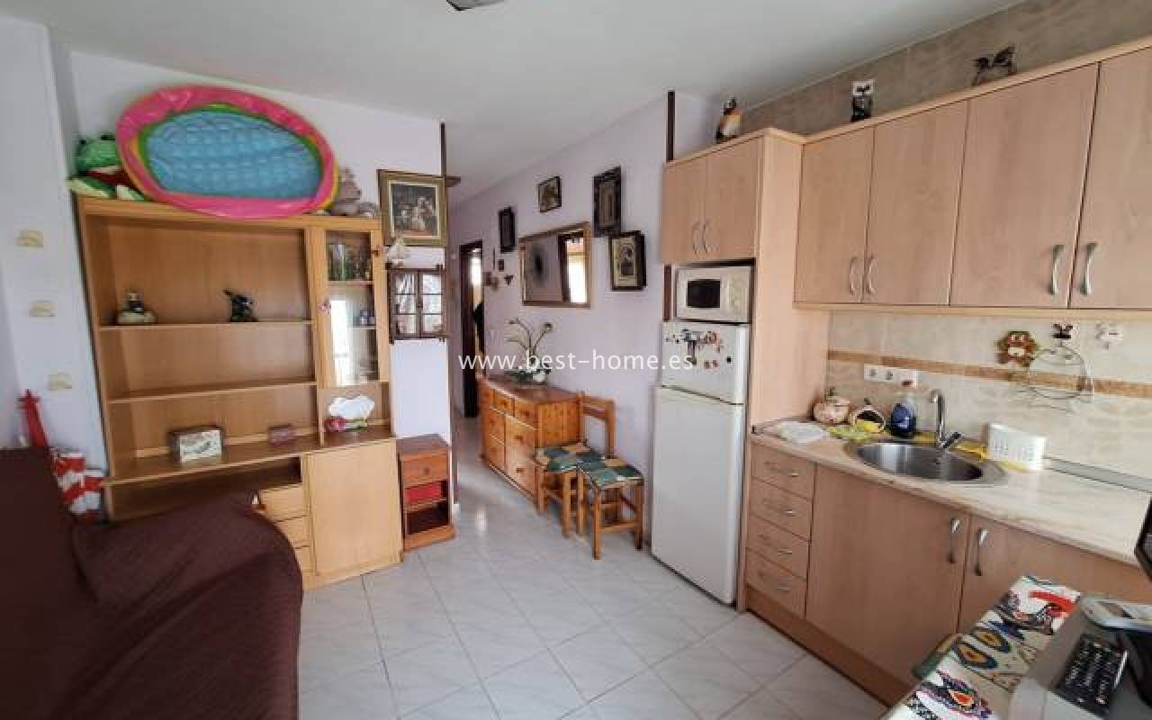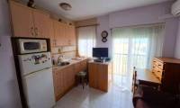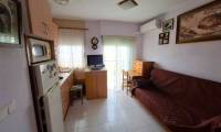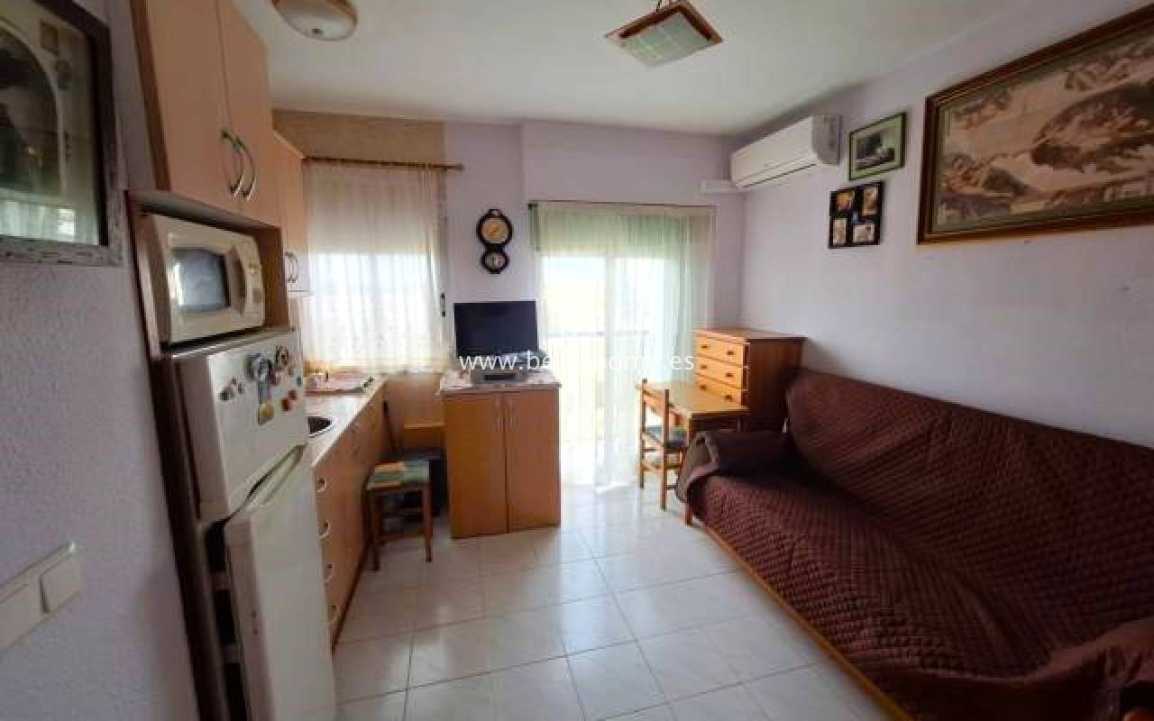The cheap apartment is located on the 4th floor and consists of one bedroom, bathroom and living room connected to a furnished kitchen. The living room has an exit to the terrace, from which there are open views of the salt lagoon and mountains in the distance. The price includes furniture, household appliances and air conditioning. The beach is only 250 m away.