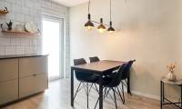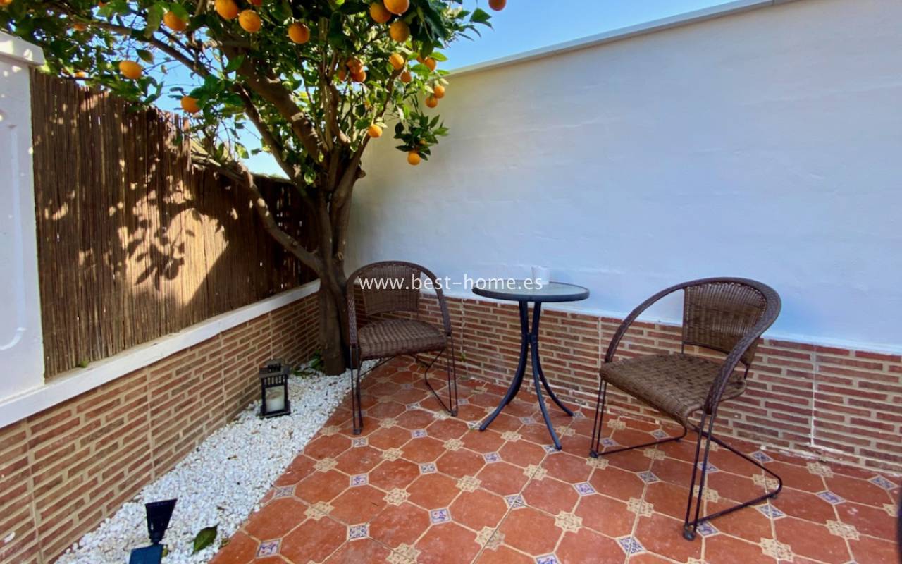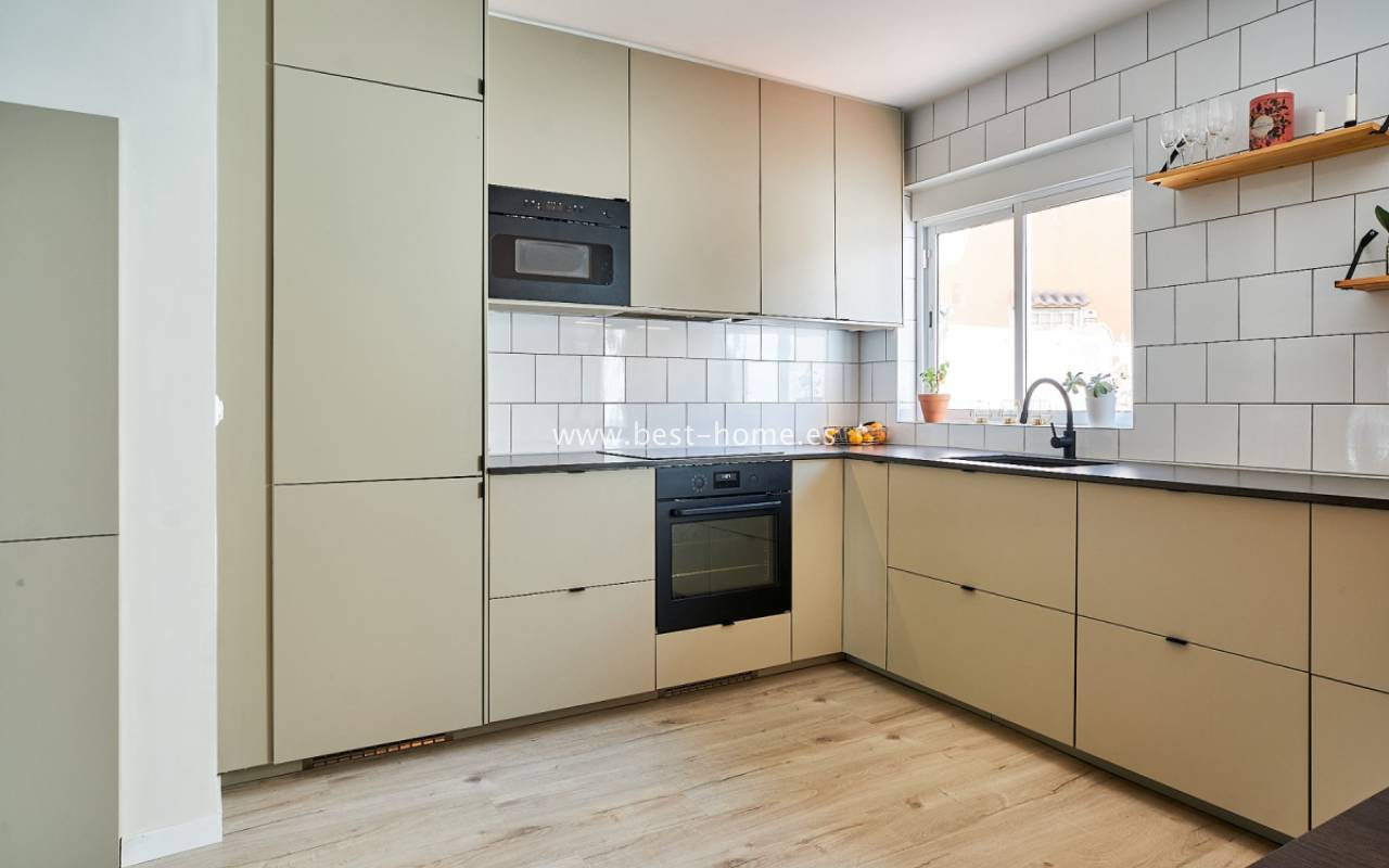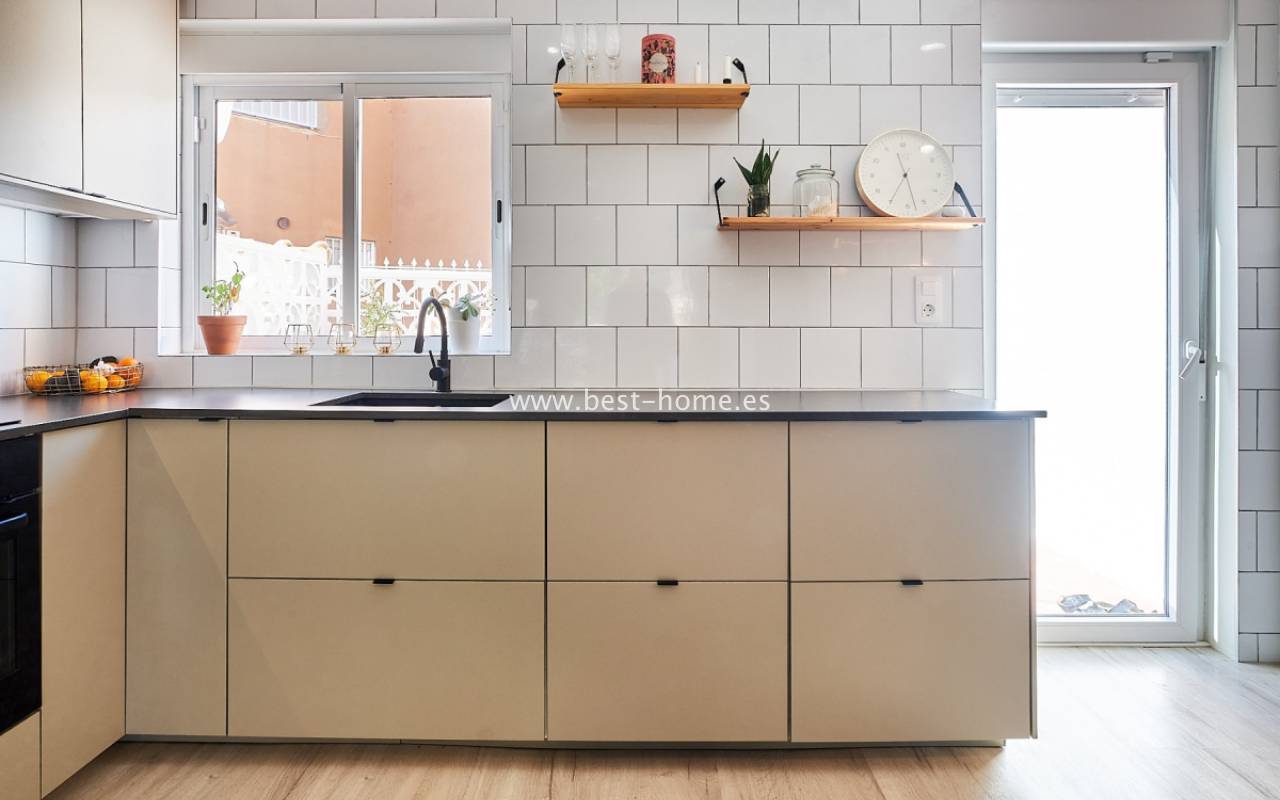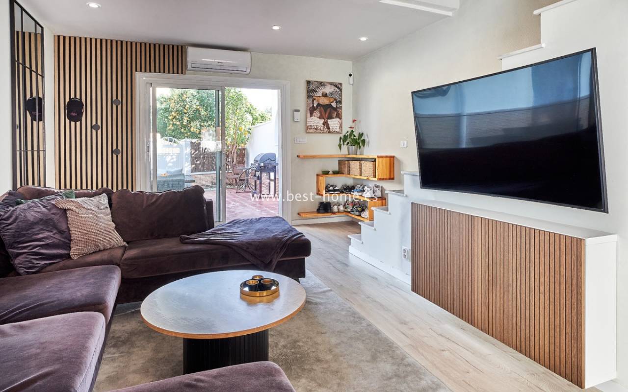 Beautifully designed duplex with private garden, barbecue and bright interior. Upon entering the property from the outside, there is a spacious terrace of 30 m², ideal for relaxing outdoors, surrounded by family and friends, enjoying the Mediterranean climate. The interior of the house impresses with a large, bright living room with an open kitchen, providing plenty of space and natural light. The whole has been designed in a modern style, taking care of comfort and elegance. In the center of the living room there is a spacious sofa. From the kitchen there is an exit to the rear terrace, where you can spend time outdoors. On the upper floor there are two spacious double bedrooms, each with windows facing outside and built-in wardrobes. From the master bedroom you can go directly to the balcony. Between both bedrooms there is a fully ren