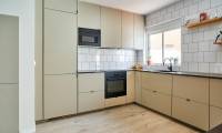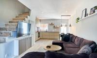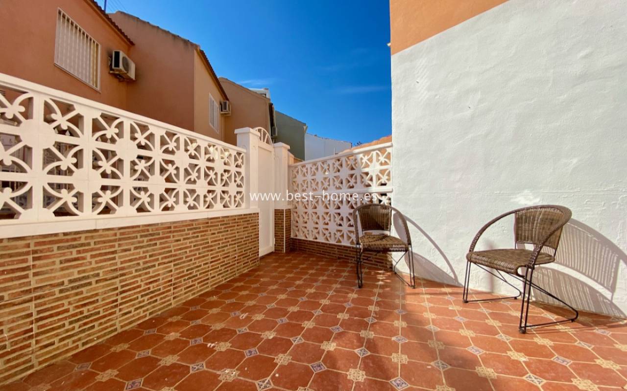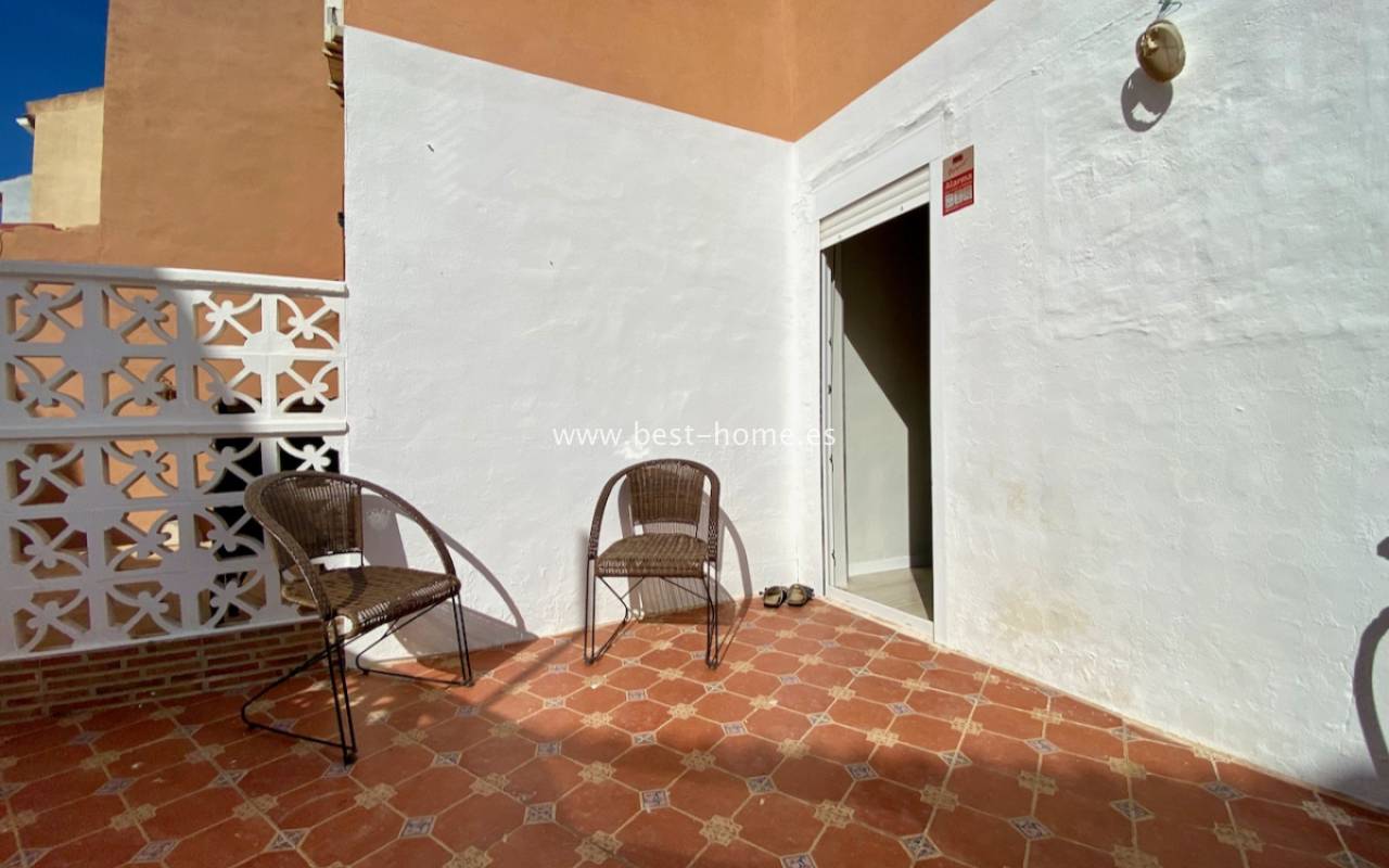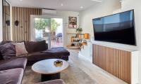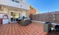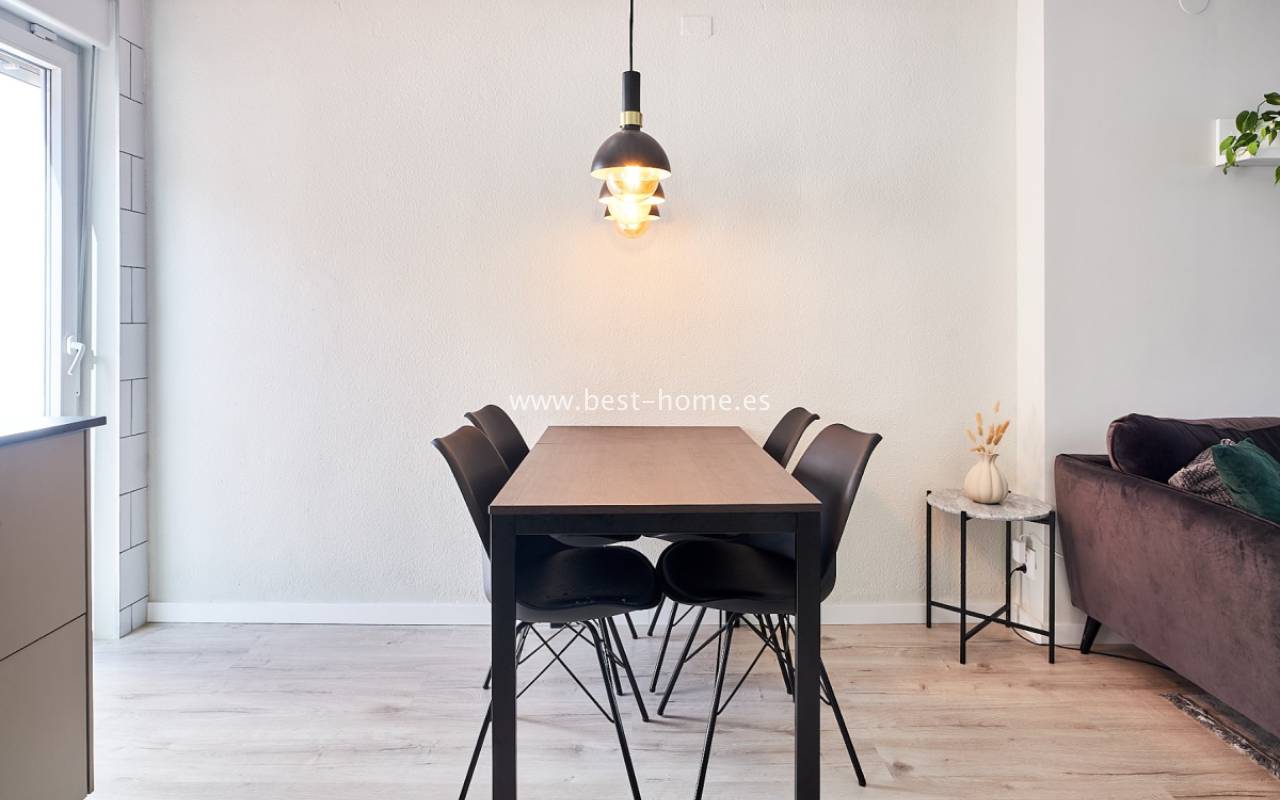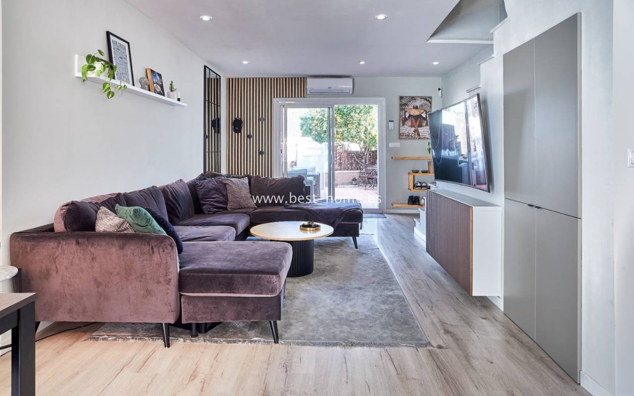Beautifully designed duplex with private garden, barbecue and bright interior. Upon entering the property from the outside, there is a spacious terrace of 30 m², ideal for relaxing outdoors, surrounded by family and friends, enjoying the Mediterranean climate. The interior of the house impresses with a large, bright living room with an open kitchen, providing plenty of space and natural light. The whole has been designed in a modern style, taking care of comfort and elegance. In the center of the living room there is a spacious sofa. From the kitchen there is an exit to the rear terrace, where you can spend time outdoors. On the upper floor there are two spacious double bedrooms, each with windows facing outside and built-in wardrobes. From the master bedroom you can go directly to the balcony. Between both bedrooms there is a fully ren