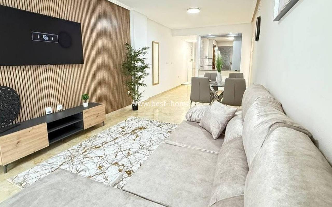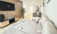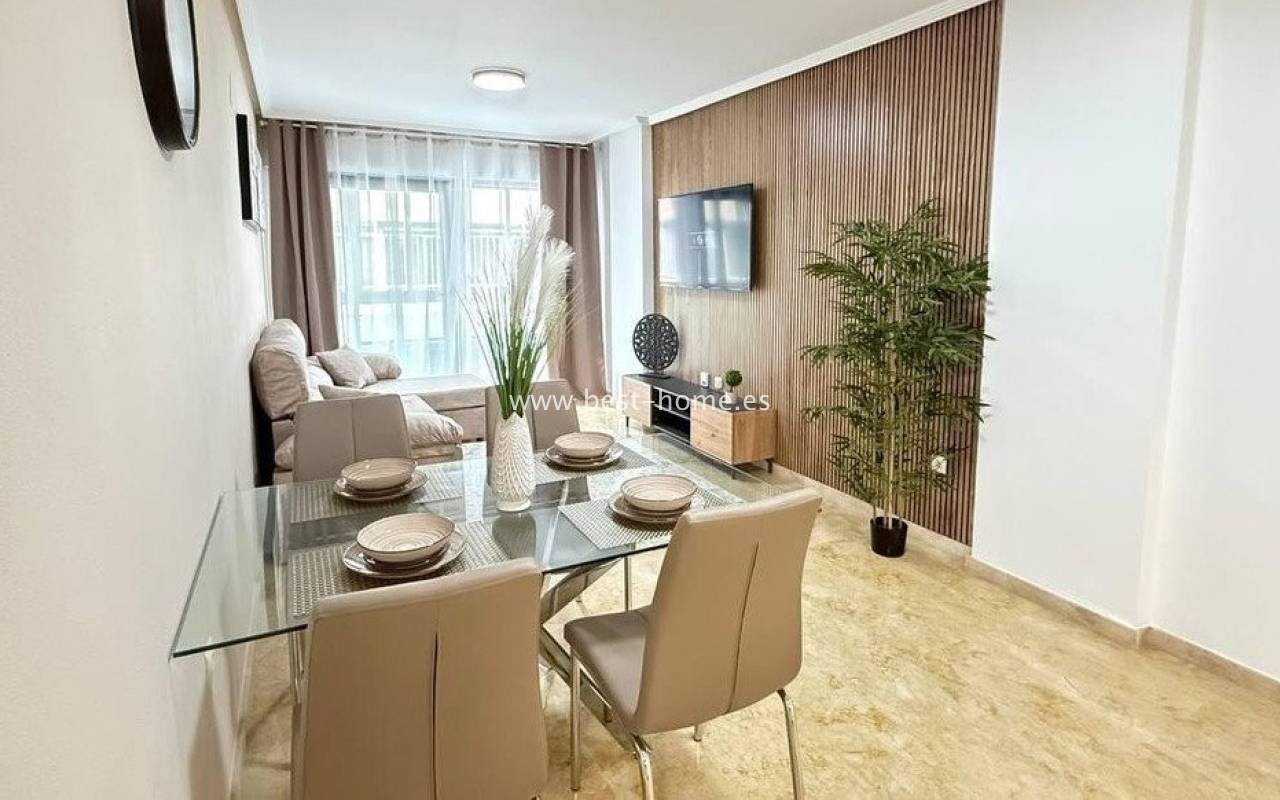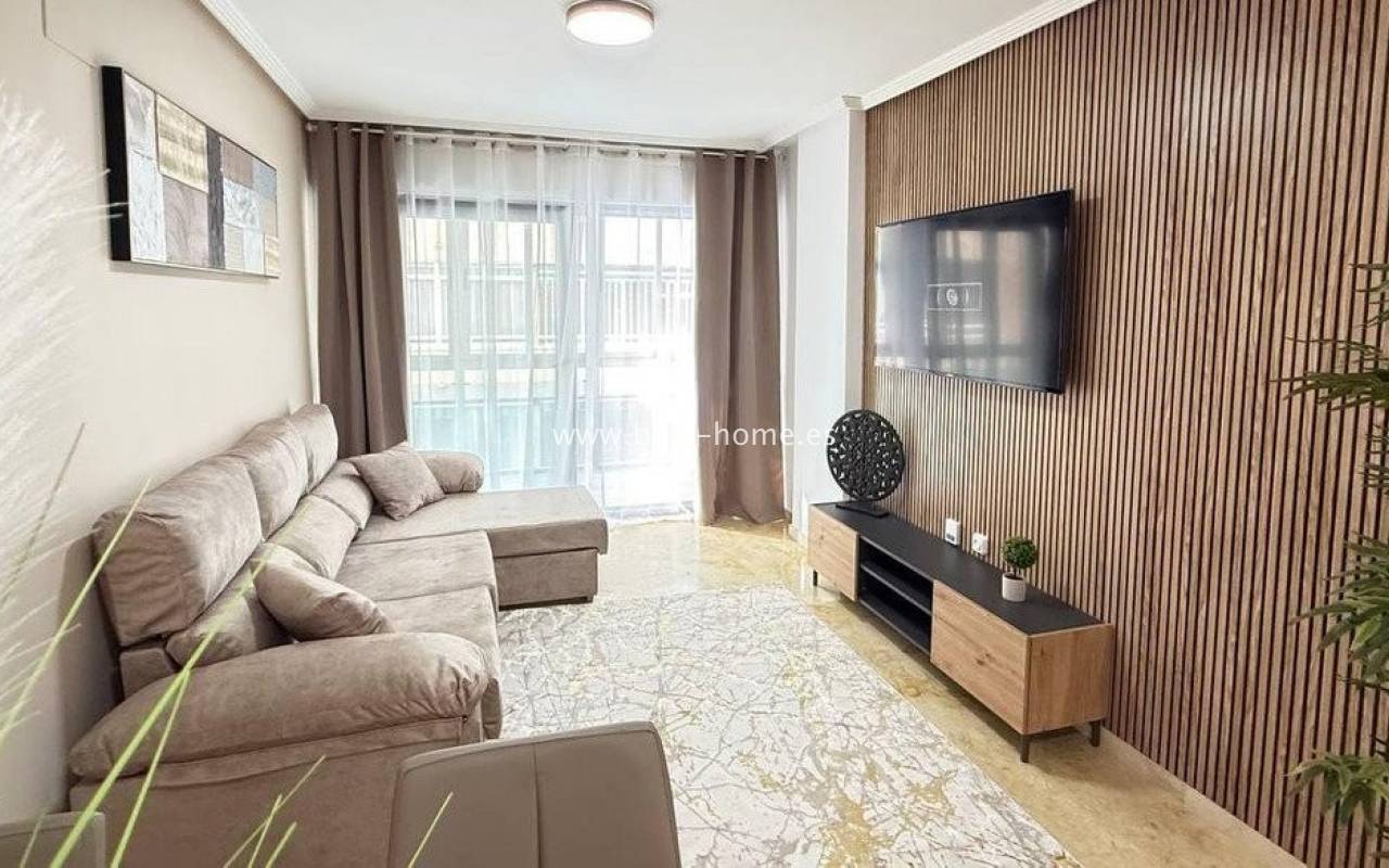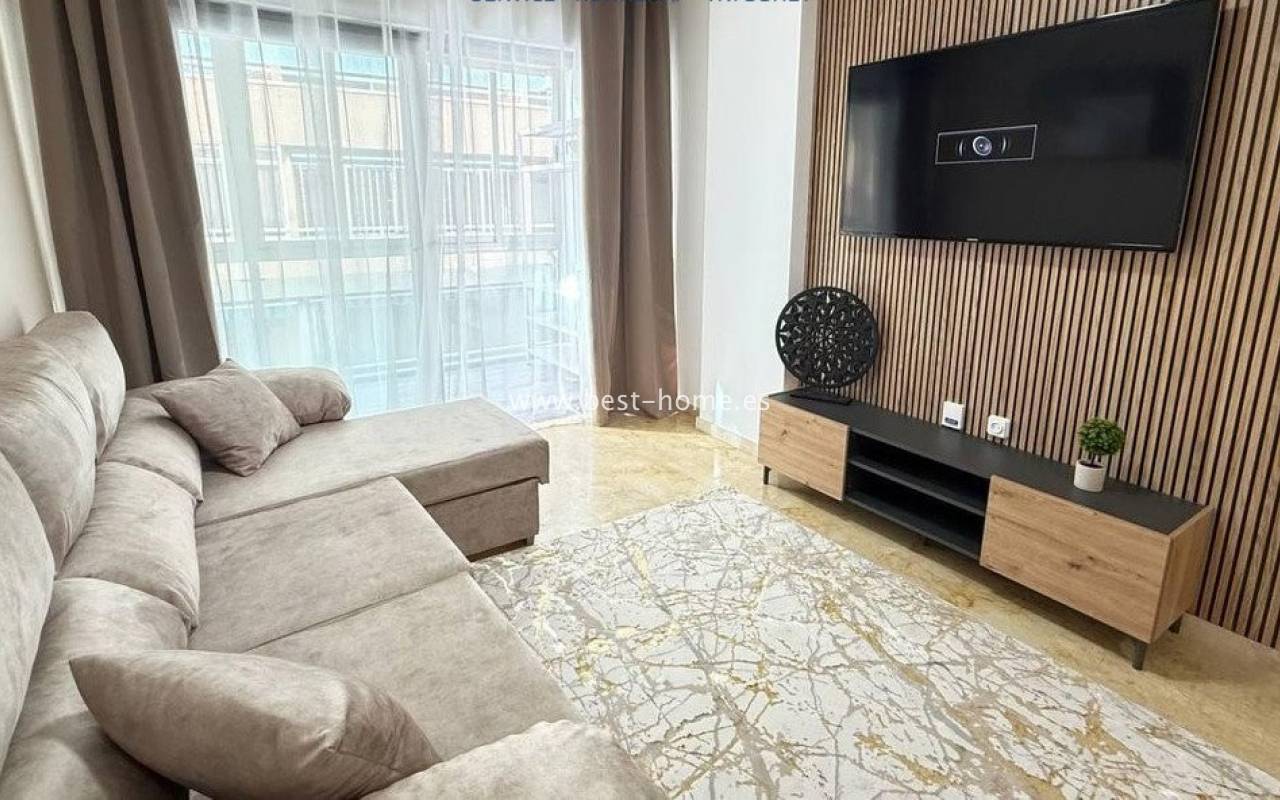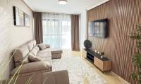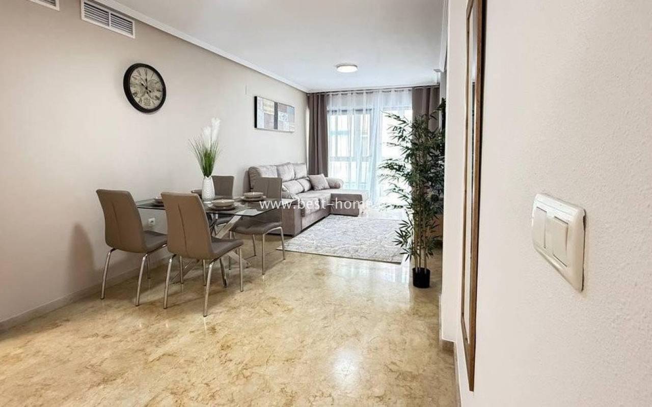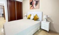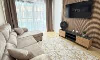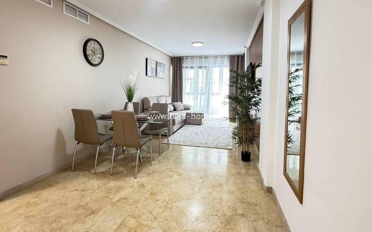 Apartment with side sea view and community pool. It has a bright spacious living room with access to a large terrace with a side sea view, 2 double bedrooms with built-in wardrobes, a kitchen equipped with household appliances and a bathroom. The property is equipped with central air conditioning and is sold with furniture. On the estate there is a swimming pool intended for residents. Nearby we will find a beautiful promenade along the sea, a large number of cafes and restaurants.