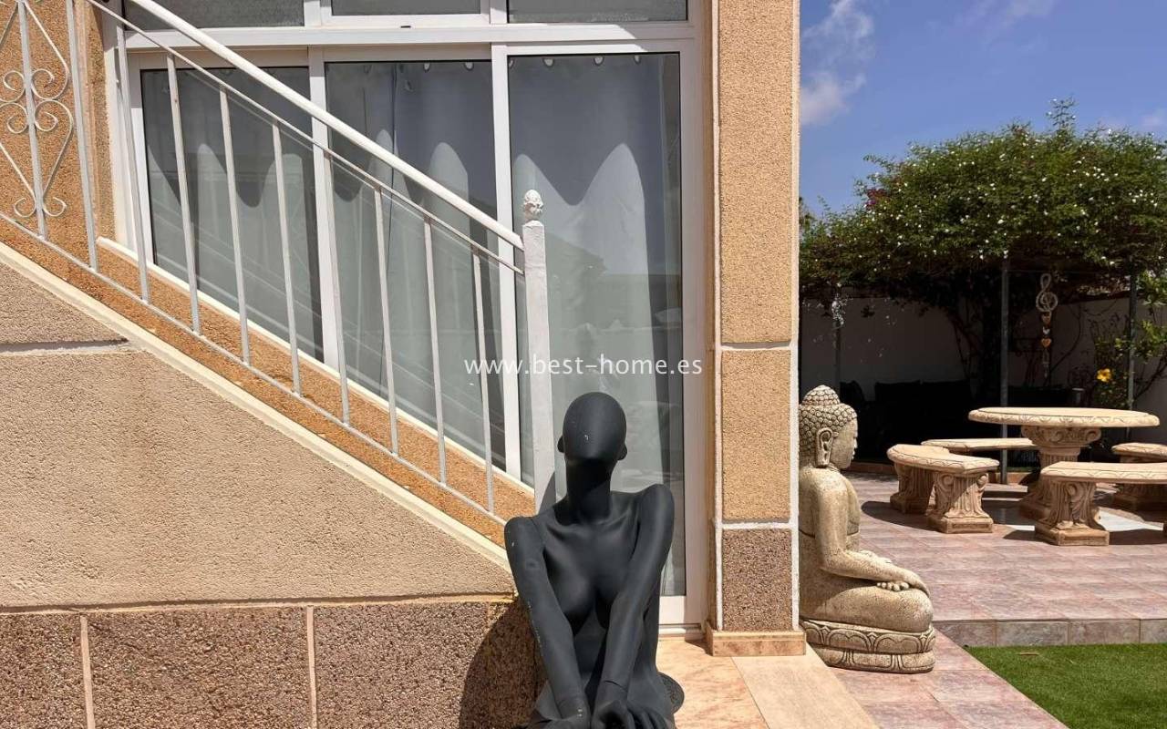 Picturesque villa with charming plot, private pool, parking space at a good price. Downstairs there is a closed patio, ideal for colder winter days, open bright living room, separate kitchen equipped with household appliances, two double bedrooms and a bathroom. On the first floor behind us independent stairs that lead to the master suite with bathroom and American kitchen. The apartment has its own solarium, from which there are views of the countryside and the sea. The property is built on one of the plots in the area, large outdoor area and private pool, which enjoys light all day. In addition, it offers ample storage space, ideal for bicycles and beach equipment. The villa provides parking for cars, as well as a place to move the car in front of the property. Located close to La Florida and Los Altos, the location is 5-15 minutes from a wide selection of bars and restaurants and less than 10 minutes from supermarkets. The beaches are a short drive away. Ideal property for permanent residence, characteristic, charming, full of freedom.