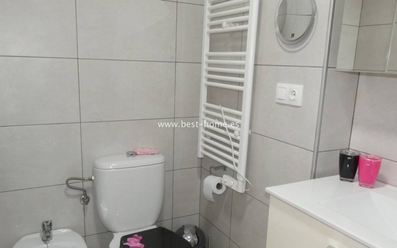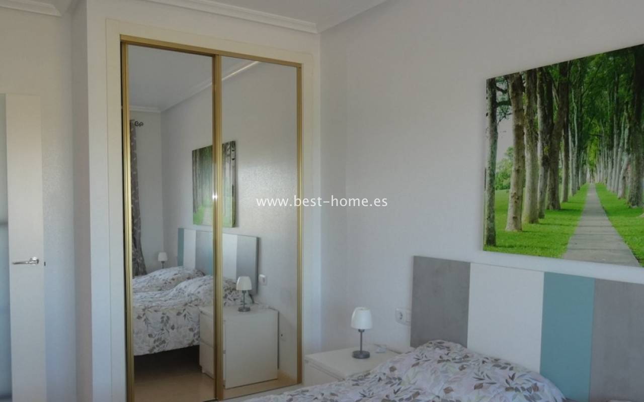 We are pleased to present a one-room apartment in the safe, gated Residential Cecilia complex, located in Algorfa, on the Costa Blanca South. This well-kept estate offers residents access to a communal swimming pool and lounge areas. The building has a lift, which increases the comfort of everyday life. After entering the apartment, we get to the hallway, from which you can go to the bedroom and bathroom - this one has been renovated and equipped with a spacious walk-in shower. Next, there is a fully equipped kitchen in the form of an annex, connected to the living room and dining room. The room is spacious, air-conditioned (with cooling and heating function), and a lot of natural light comes in through the large, glass balcony doors. The living room opens onto a balcony with a beautiful view of the Callosa Mountains, groves and fields - the same view also extends from the bedroom. The location of the estate is excellent - within walking distance there are bars, restaurants, the main square of Algorfa and many other amenities. Just five minutes from the luxurious five-star La Finca Golf & Spa resort and only a fifteen-minute drive from the award-winning beaches of Guardamar del Segura, the proximity to the airports makes this apartment an ideal option for a holiday getaway or an attractive investment for year-round rental.