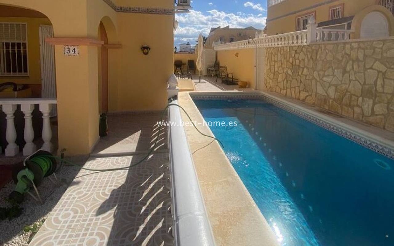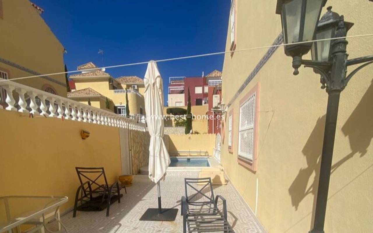 Amazing duplex with garden, private pool and solarium. This wonderful property is located in the charming El Galan district of Villamartin, on the picturesque Orihuela Costa. The interior of the house has been fully furnished in a stylish and functional way, guaranteeing the convenience and comfort of everyday life. The private pool is the perfect place for relaxing days in the sun or a refreshing swim. The whole is located in a closed, fenced estate, which provides residents with peace and a sense of security. On the ground floor there is a large living room, a spacious bedroom, a kitchen with access to the rear garden, a toilet, which increases the comfort of everyday use, especially when receiving guests. On the first floor there are two more, tastefully decorated bedrooms with built-in wardrobes and access to private solariums - ideal for relaxing in the fresh air. An additional advantage of the property are three public, heated swimming pools on the estate, which allow bathing all year round and facilitate integration with neighbors in the pleasant Mediterranean climate. This unique offer is a perfect combination of peace, comfort and a great location - close to golf courses, beaches and numerous attractions in the region.
