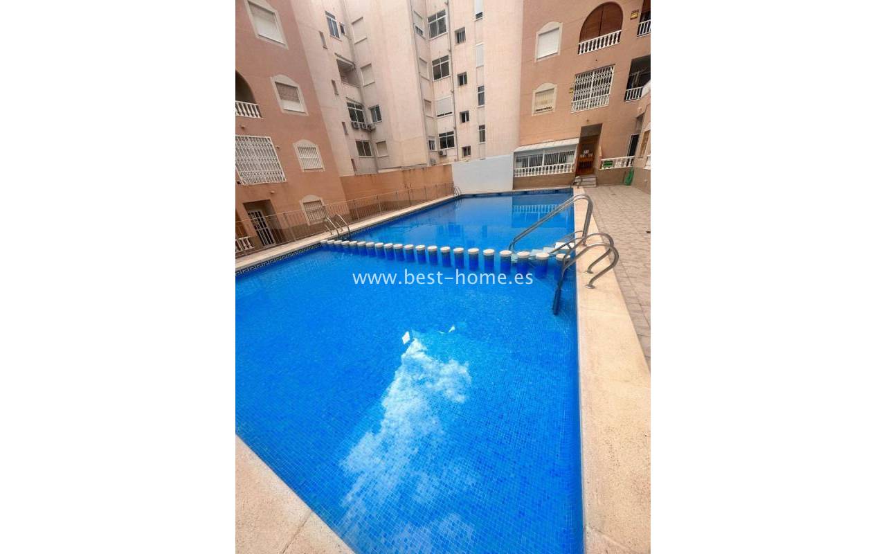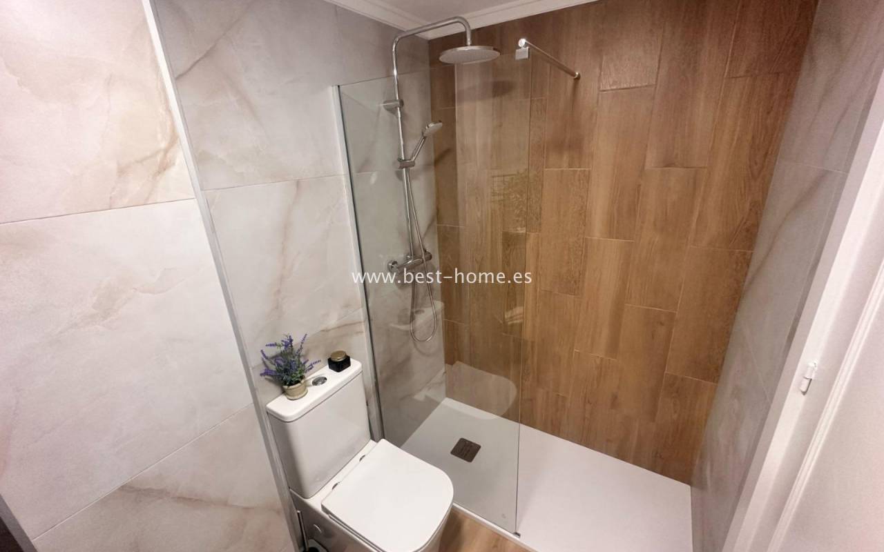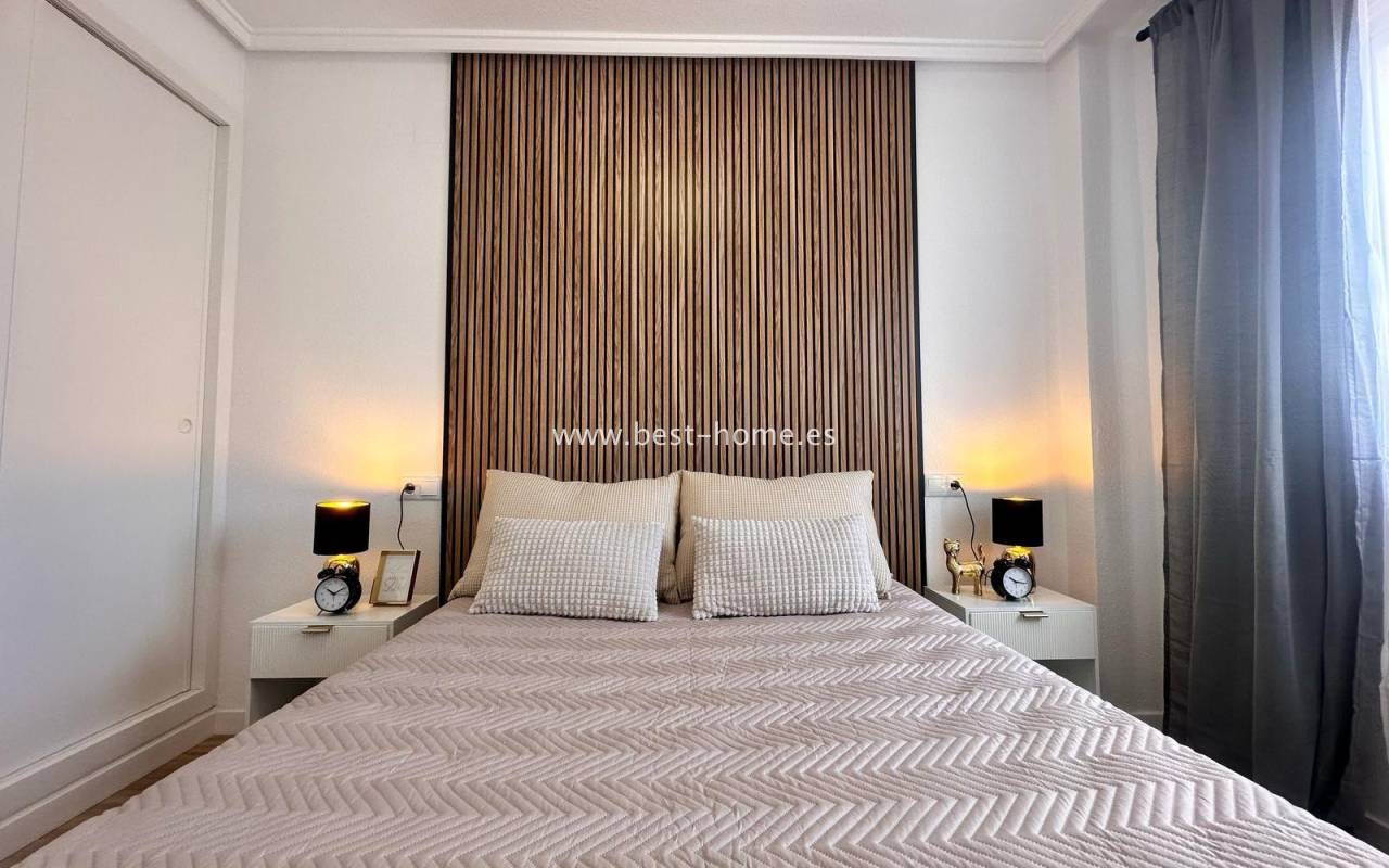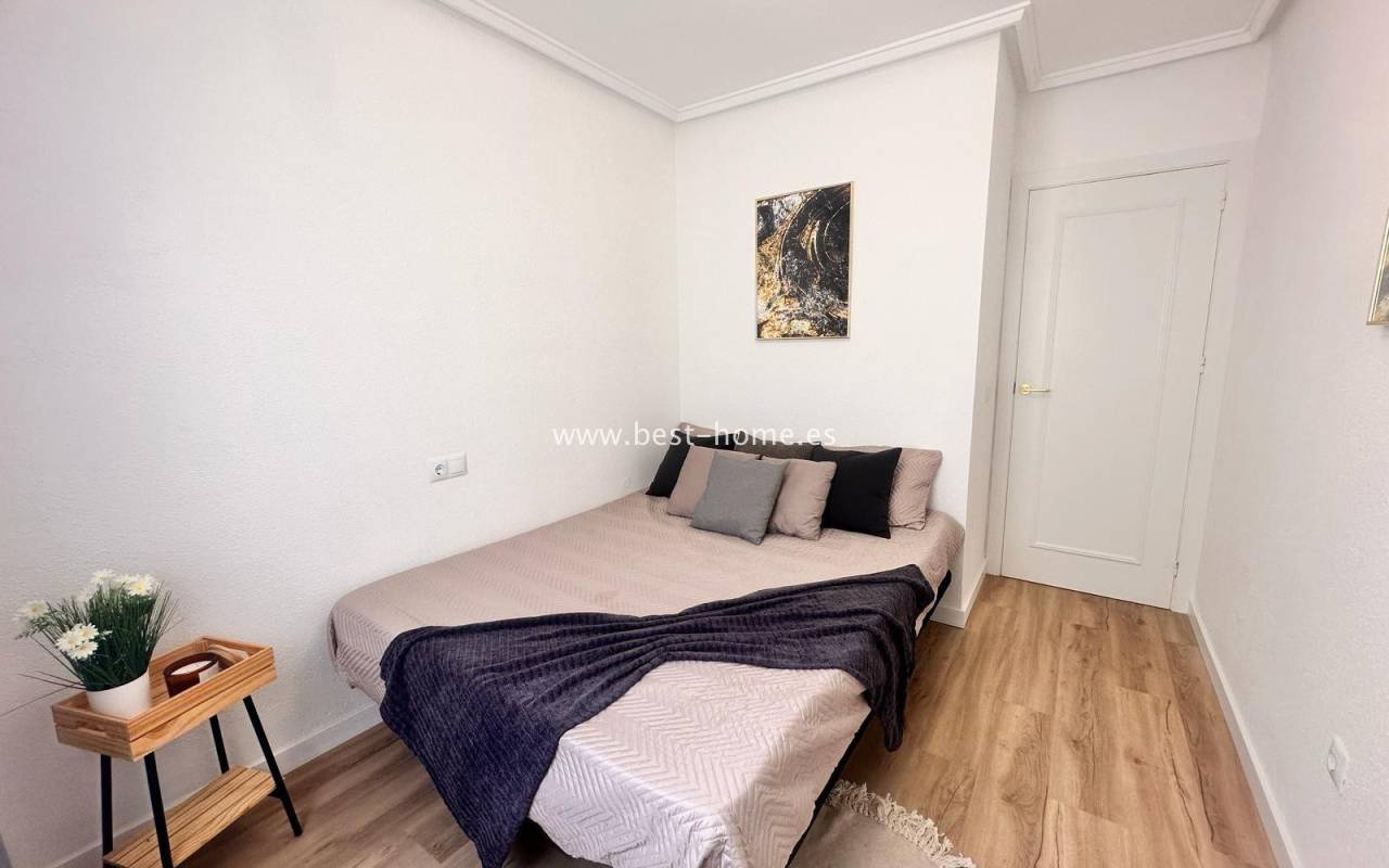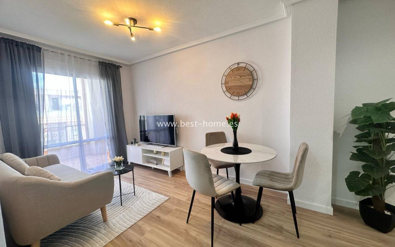 Nicely arranged after general renovation penthouse with a community pool in Torrevieja. It has a living room with access to a sunny terrace, an open kitchen equipped with household appliances, 2 bedrooms, including a double master with a built-in wardrobe and a bathroom. The apartment is equipped with air conditioning and is sold with furniture. There is a swimming pool on the estate, intended for residents. The property is ideal for holiday or long-term rental. Nearby we will find a Consum grocery store, a large number of restaurants, bars, pubs and a beautiful promenade along the sea.