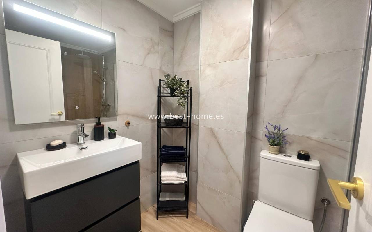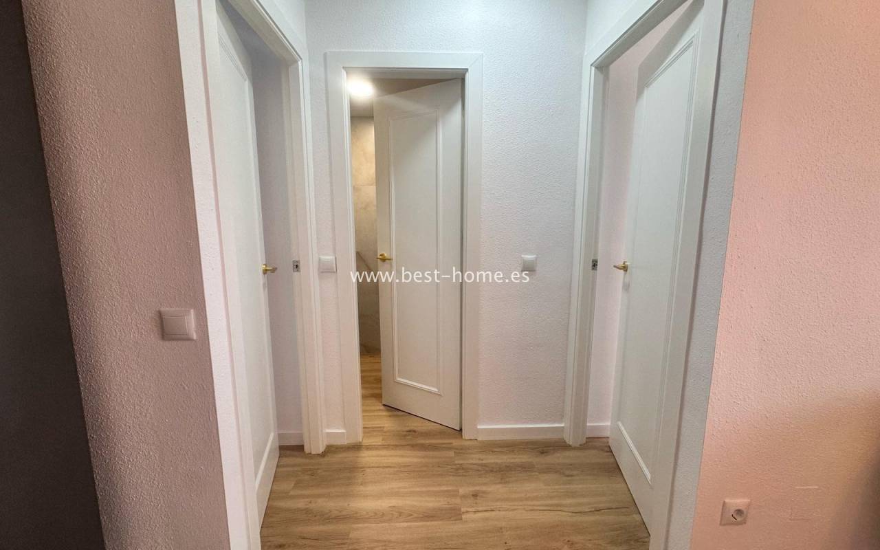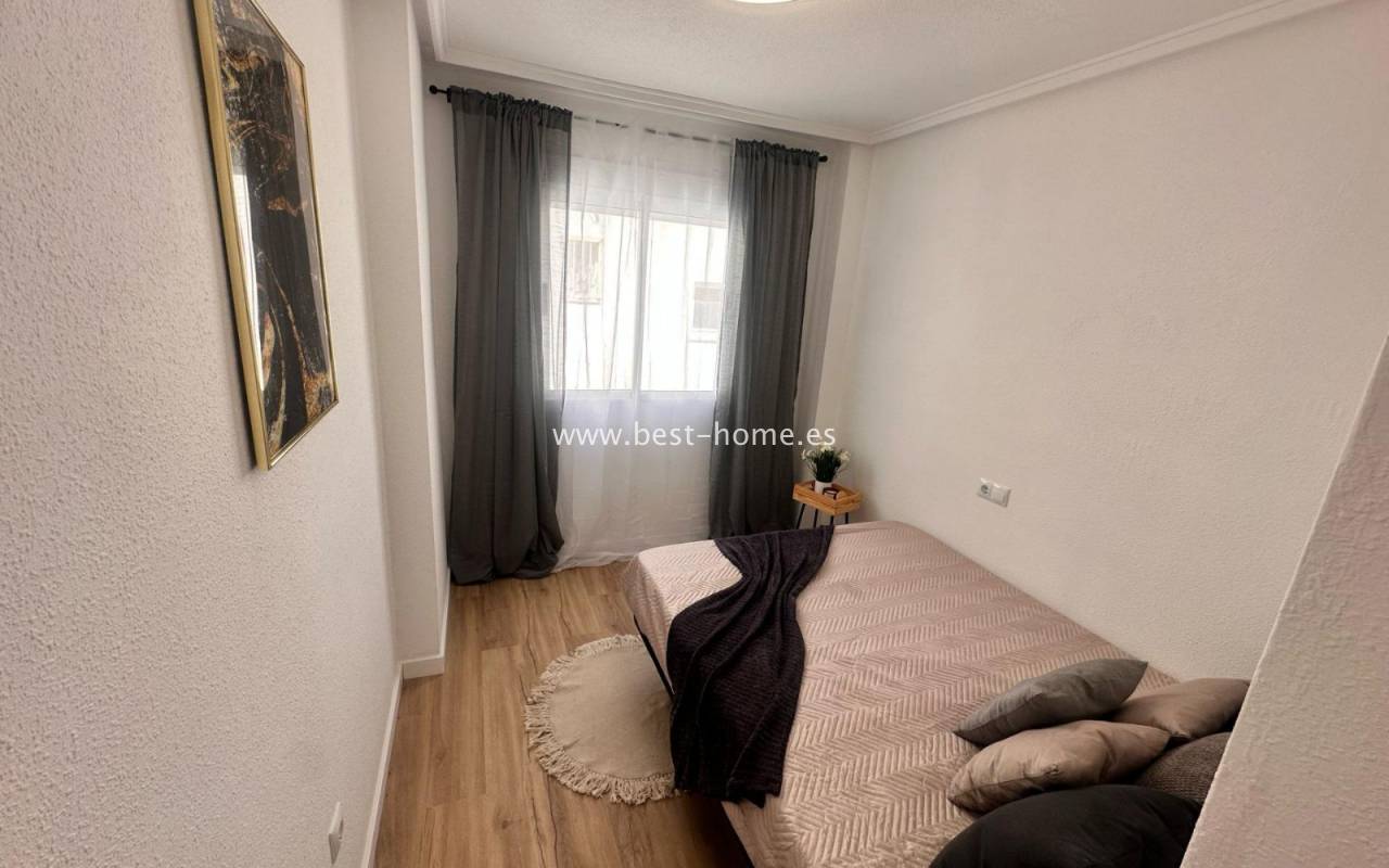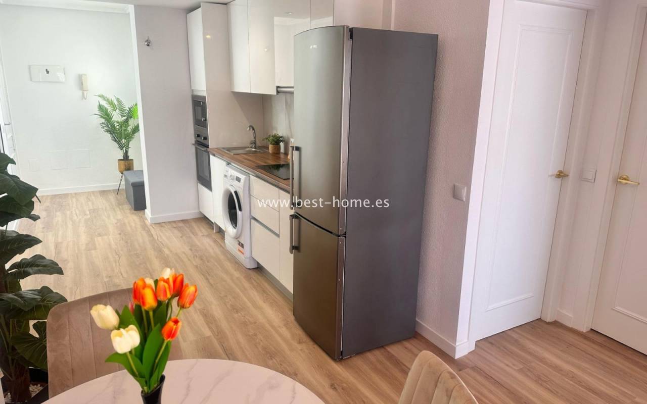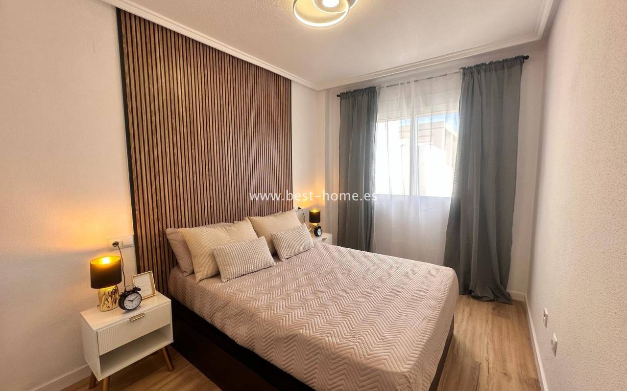 Nicely arranged after general renovation penthouse with a community pool in Torrevieja. It has a living room with access to a sunny terrace, an open kitchen equipped with household appliances, 2 bedrooms, including a double master with a built-in wardrobe and a bathroom. The apartment is equipped with air conditioning and is sold with furniture. There is a swimming pool on the estate, intended for residents. The property is ideal for holiday or long-term rental. Nearby we will find a Consum grocery store, a large number of restaurants, bars, pubs and a beautiful promenade along the sea.