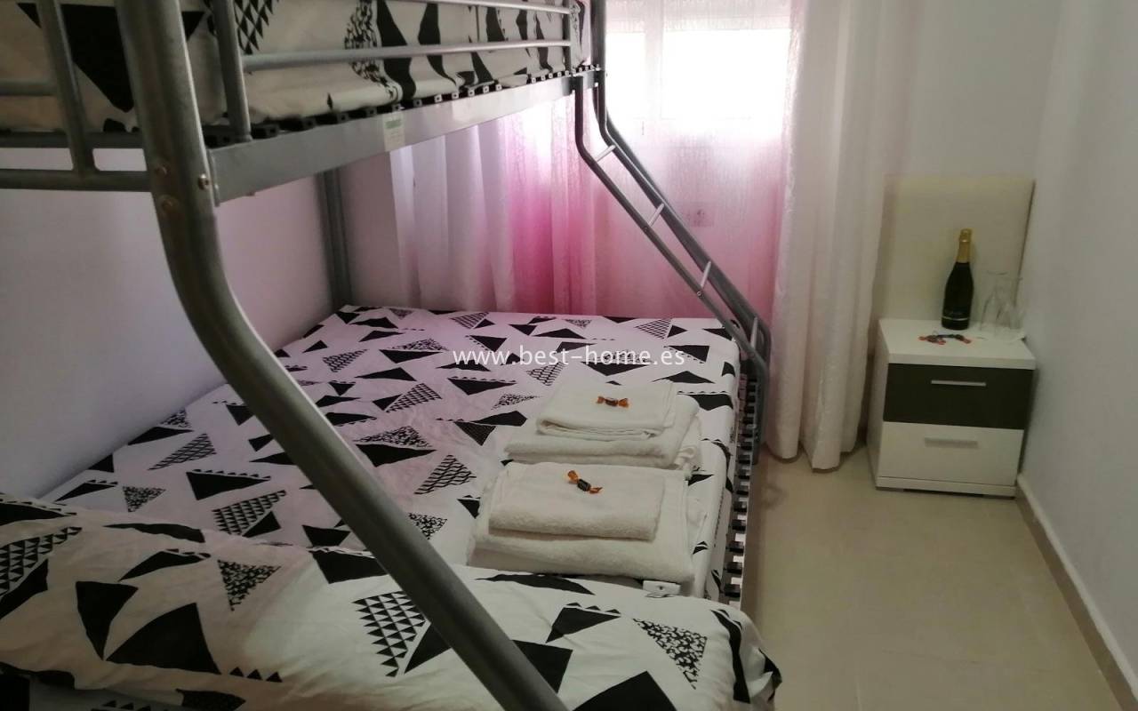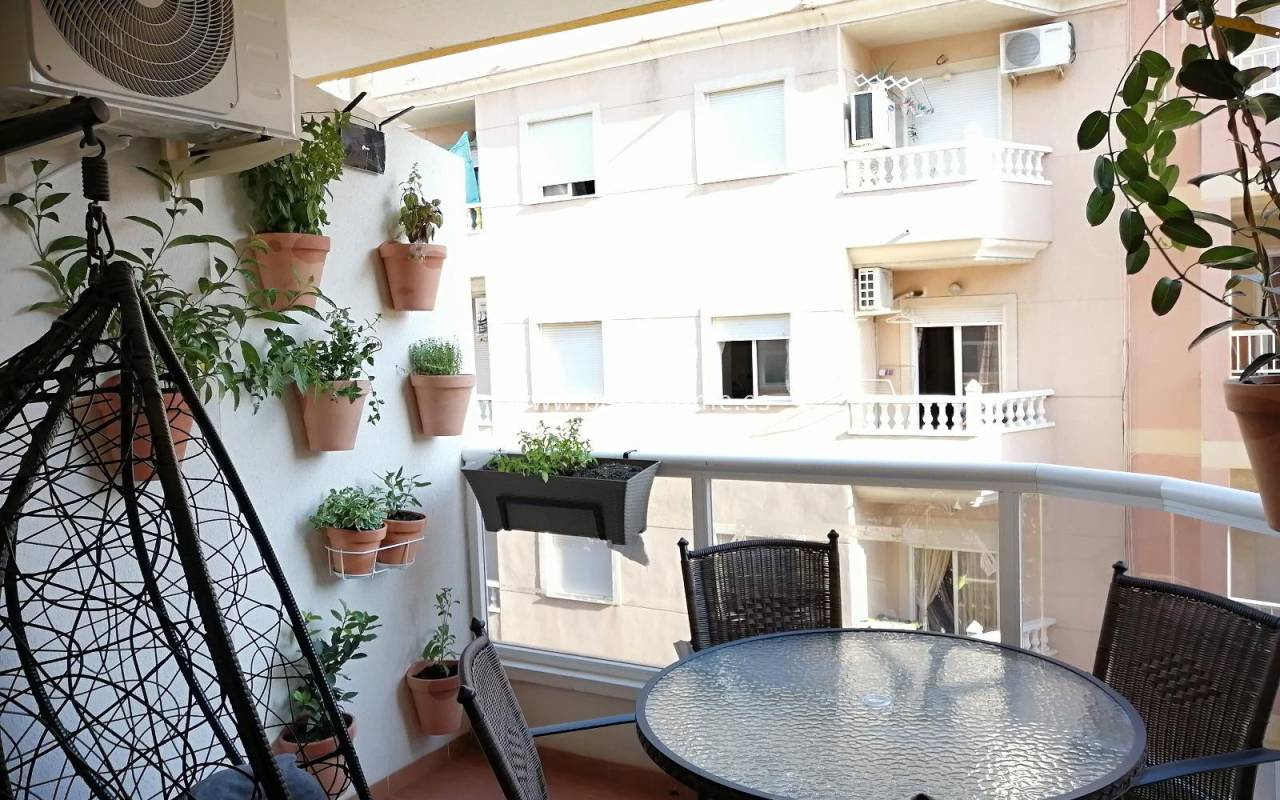 Sunny apartment close to two beautiful beaches in Torrevieja. It has a living room with access to the terrace, 2 bedrooms, a kitchen with a window, a bathroom. An additional advantage of this property is a parking space and a storage room included in the price. Ideal property for investment or long-term rental. There are plenty of bars, pubs, pastry shops, ice cream parlors and restaurants nearby.