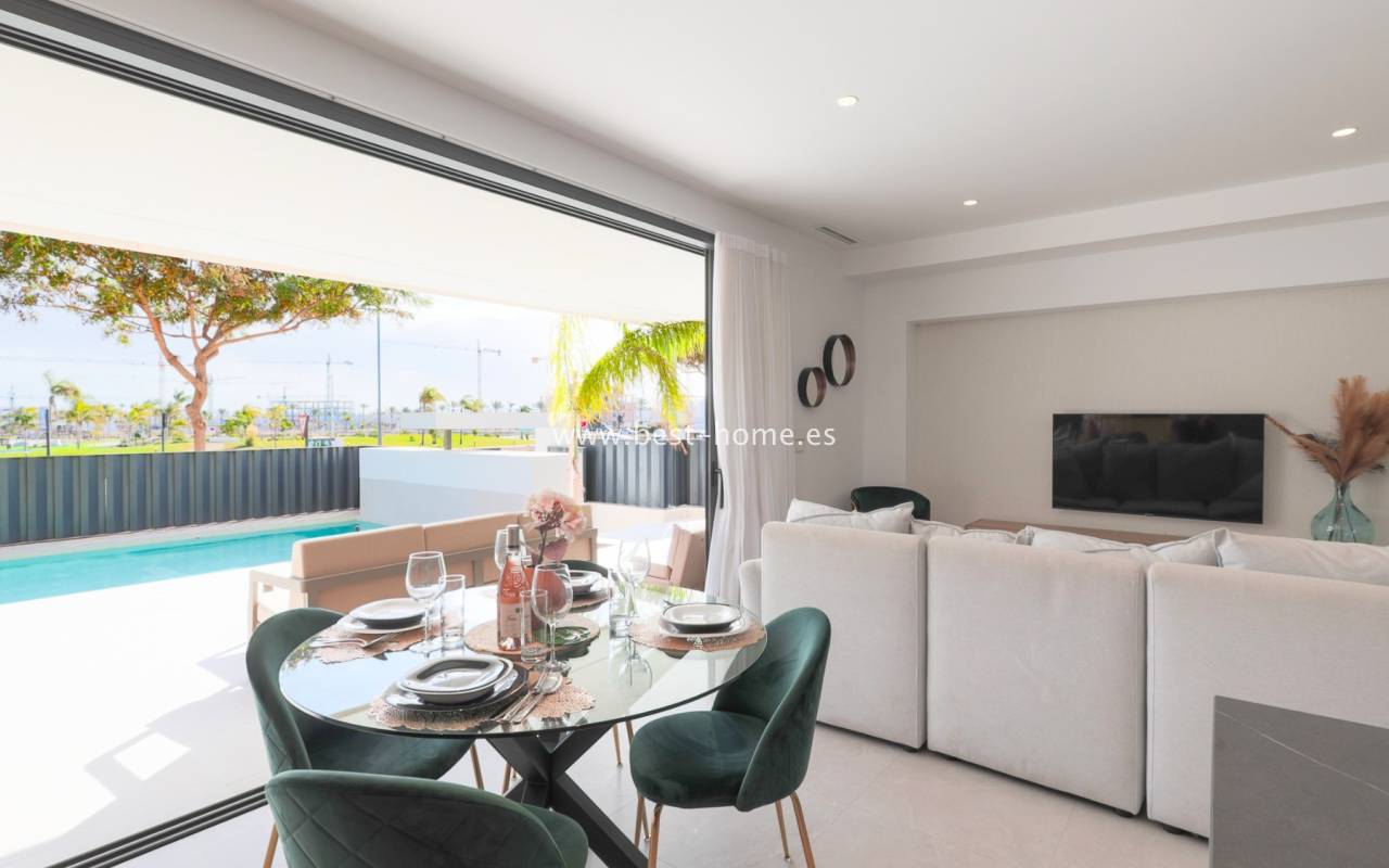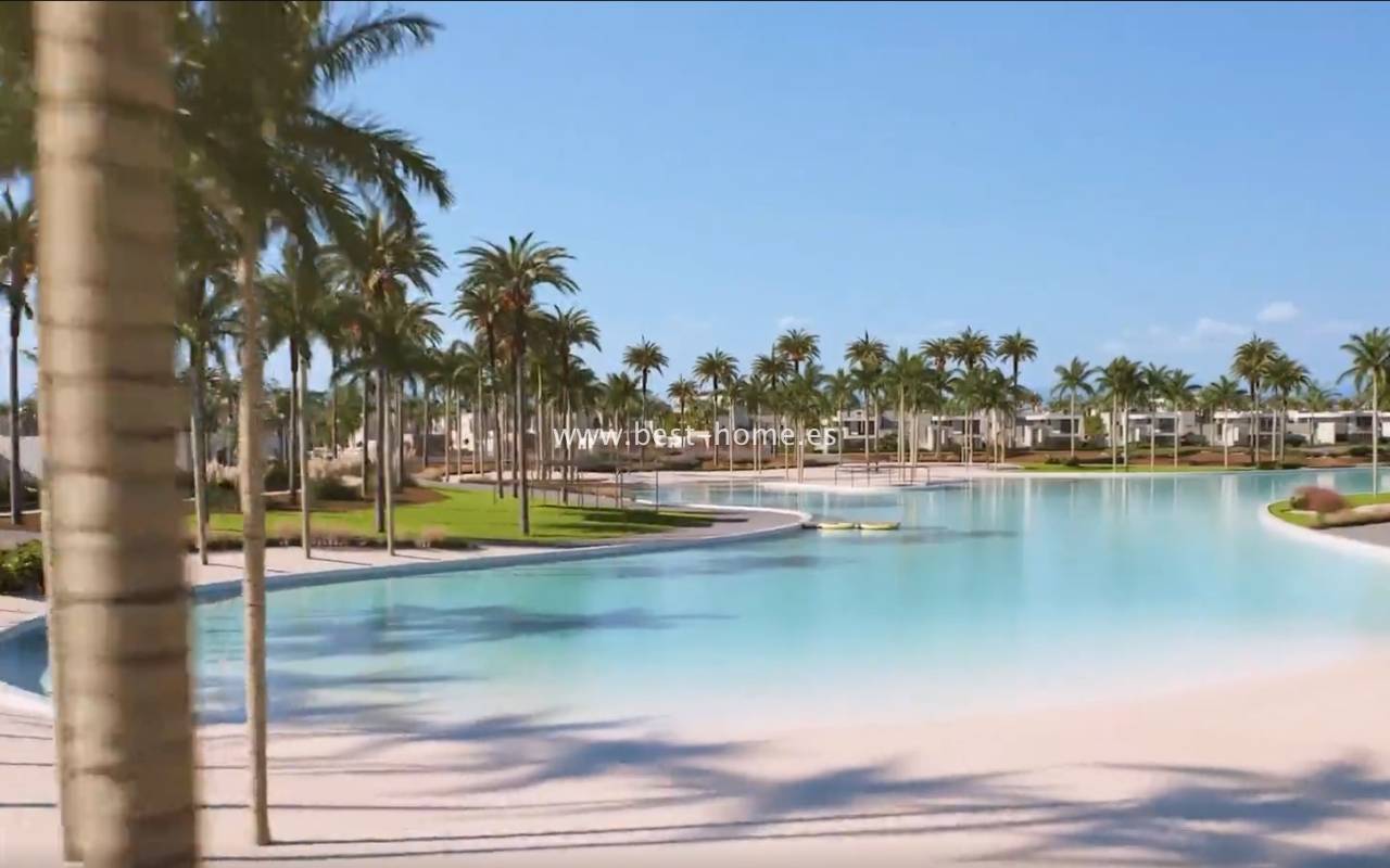 On the area of over 700,000 m2 available only to residents there will be many attractions, including: a crystal clear lagoon (with an area of 16,000 m2) with islands, surrounded by a wonderful beach (8,000 m2), a nature reserve with lush vegetation and a place to practice yoga, numerous paths for walking, cycling, mini golf, outdoor gyms, playgrounds, tennis courts, beach volleyball courts. For water sports enthusiasts, kayaks and sup boards will be available on the lagoon. Of course, there will also be a huge selection of bars, restaurants and shops. New, luxurious villas under construction (phase 5) are in this amazing place. The houses on the ground floor will have a spacious and bright living room combined with a furnished kitchen with an island, one double bedroom with an en-suit bathroom and a toilet. From the living room there will be an exit to the terrace and the garden with a private pool through large, sliding windows. On the first floor we will find the main, large bedroom with a wardrobe, bathroom and access to two terraces and a second bedroom with a bathroom (also with access to the terrace). On the next floor we will find a solarium/terrace on the roof (45 m2) with the possibility of installing a jacuzzi and making a summer kitchen. From the living room, down the stairs we will get to a huge basement (94 m2) with windows and access to the patio. In the basement you can make a cinema room, gym or additional bedrooms. The price includes kitchen furniture with household appliances, central air conditioning hot/cold, finished bathrooms, electric blinds, external and internal LED lighting, decorative lighting, wallpaper in the living room and master bedroom, heated floors in the bathrooms, domotica system, private swimming pool (possibility of installing a heat pump) and a barbecue by the pool. Very high quality of finishing. Plots from 289 m2 to 316 m2. Three parking spaces. There are only 9 houses available with prices ranging from €555,000 to €585,000.