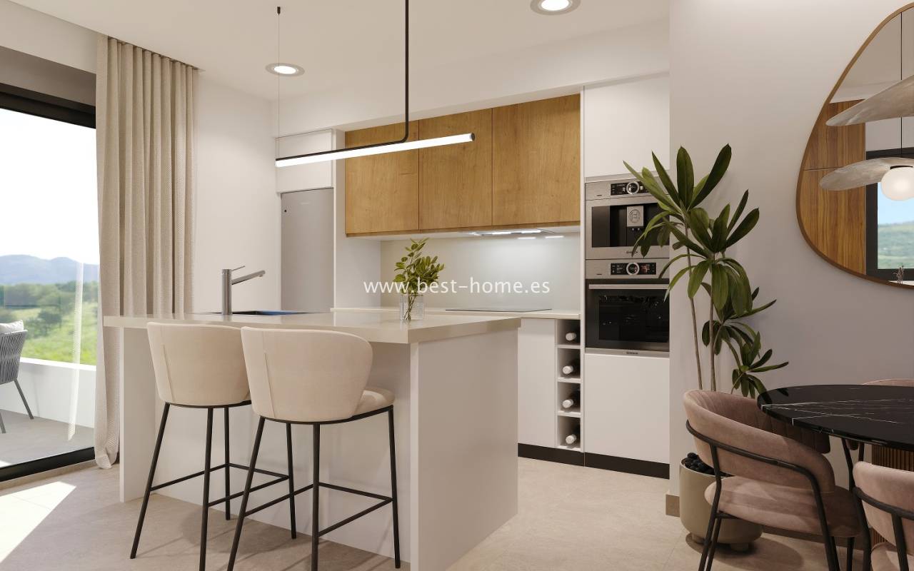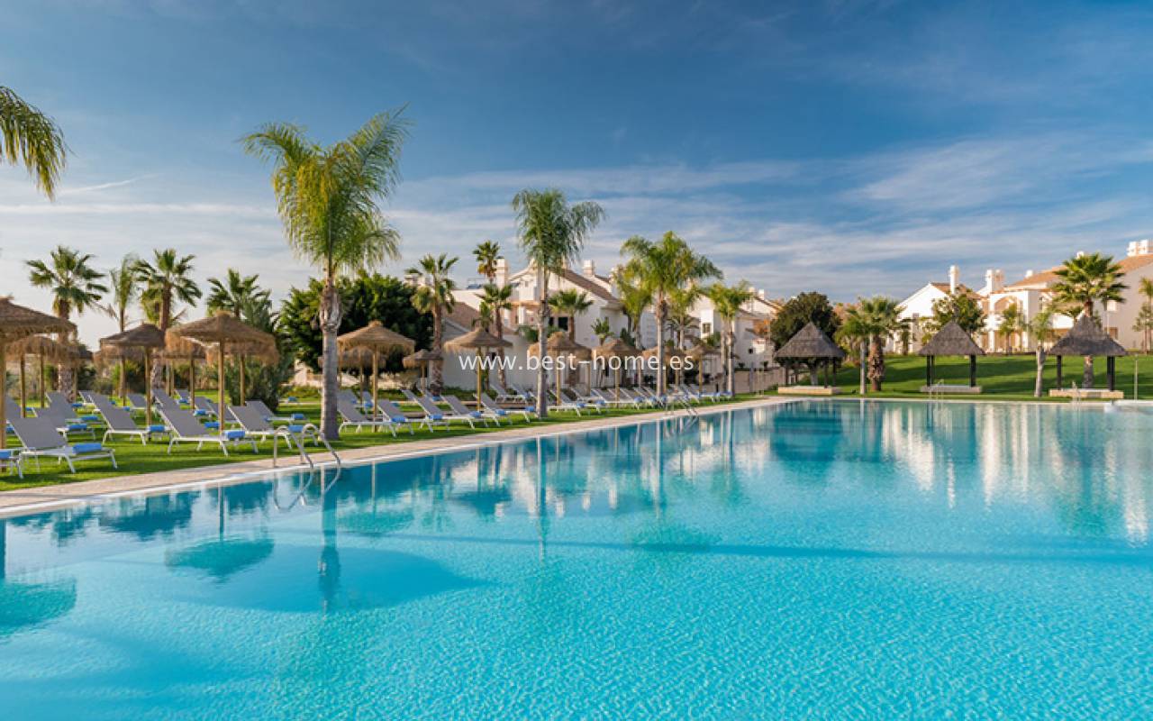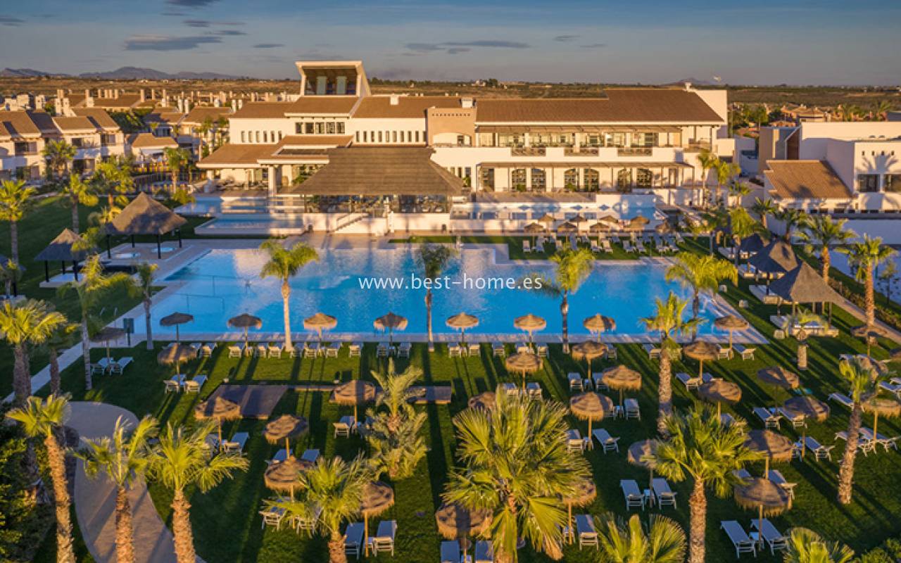New, attractive apartments are being built on the gated Hacienda del Alamo golf resort. There are properties available on the ground floor with a garden, on the 1st floor with a 20-meter terrace and on the 2nd floor with a solarium/roof terrace (45 m2). Each apartment will consist of two bedrooms, two bathrooms, a furnished kitchen connected to the dining room and living room. The living room will have access to the terrace. The price includes finished bathrooms, kitchen furniture, pre-installation of central air conditioning, parking space and storage room. There will be a communal swimming pool and green areas for residents. On the resort premises there is a sports center, a 4-star hotel, many restaurants and bars.