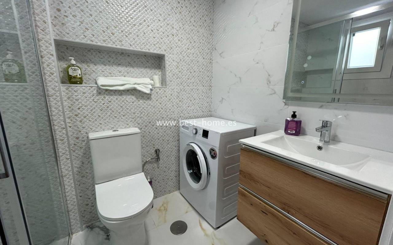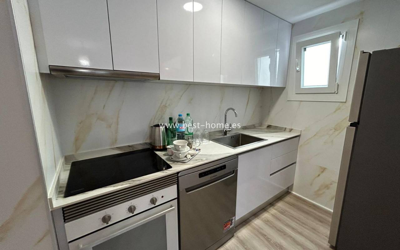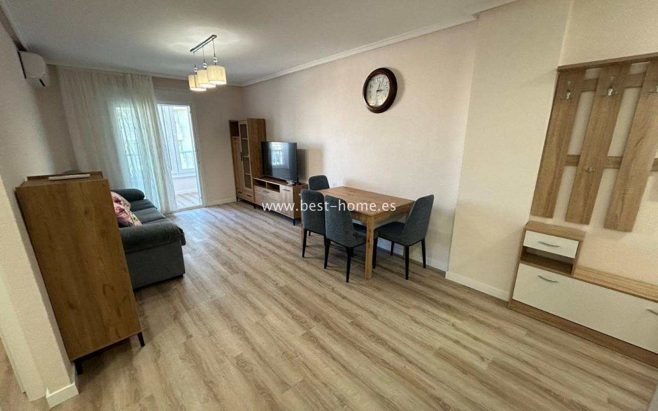 Nicely furnished apartment overlooking the Nacional Park in Torrevieja. It has a bright living room with access to a closed terrace, a kitchen equipped with household appliances, 2 double bedrooms, including the main one with a built-in wardrobe, a bathroom. The apartment is furnished and equipped with household appliances. Near the property we will find a park, shops, pharmacies, a large number of restaurants and a marina.