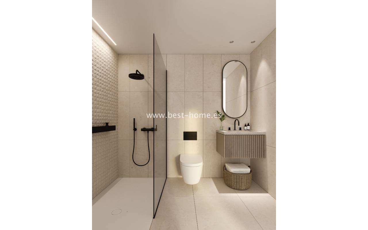 New, excellently located apartments built in the beautiful city of Calpe. Spacious apartments with 2 bedrooms, 2 bathrooms and a bright, living room connected to a furnished kitchen are available. The living room will have an exit to the terrace, with open views of the surrounding area (sea view from the upper floors). The price includes kitchen furniture with household appliances (induction hob, oven, hood and fridge), central air conditioning hot / cold, finished bathrooms, electric external shutters and a parking space and a storage room in the basement of the building. Residents will have at their disposal two swimming pools with sun loungers surrounded by green areas, a playground for children, a paddle tennis court, etc.