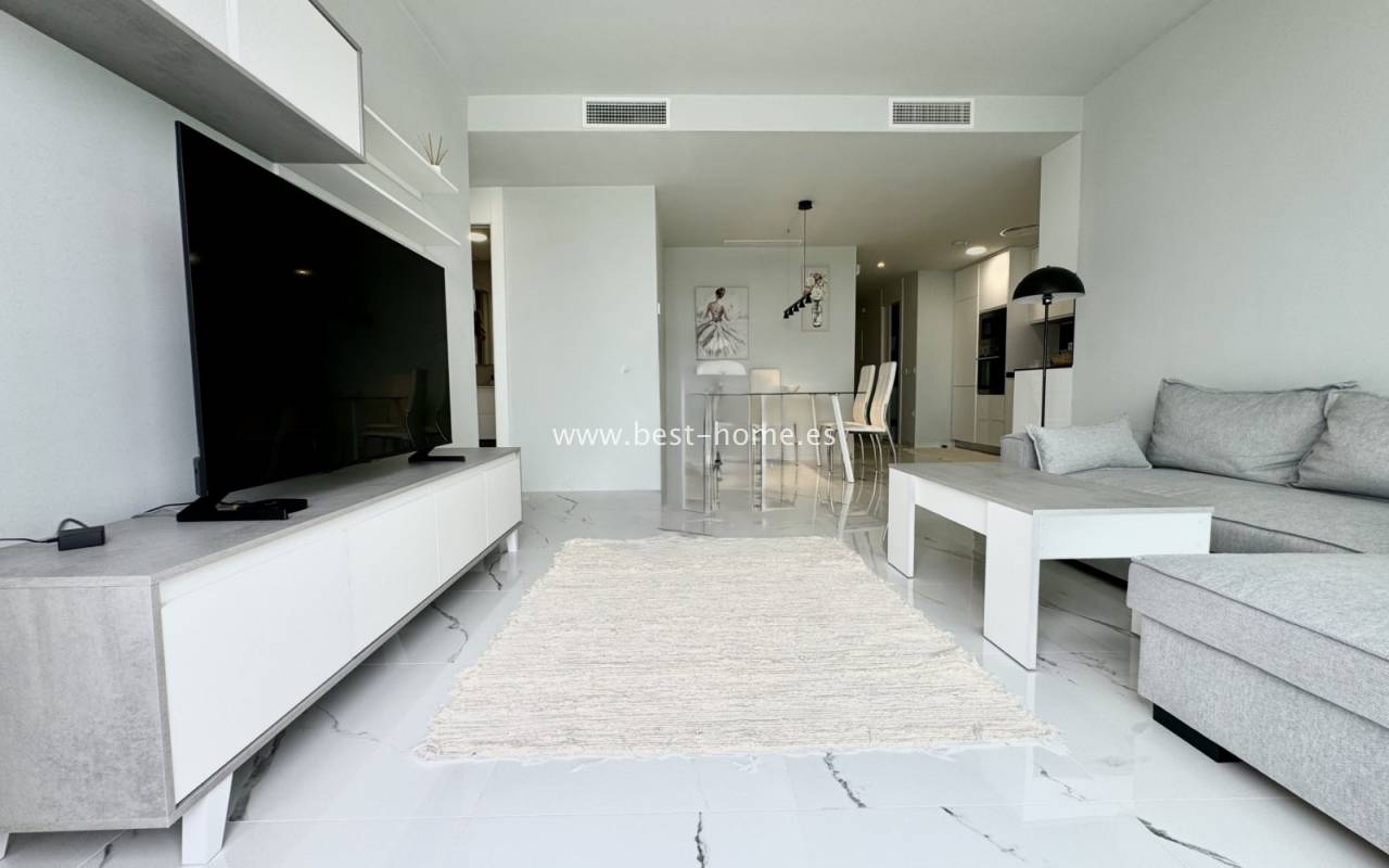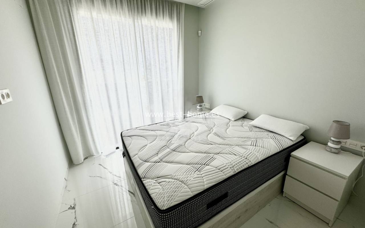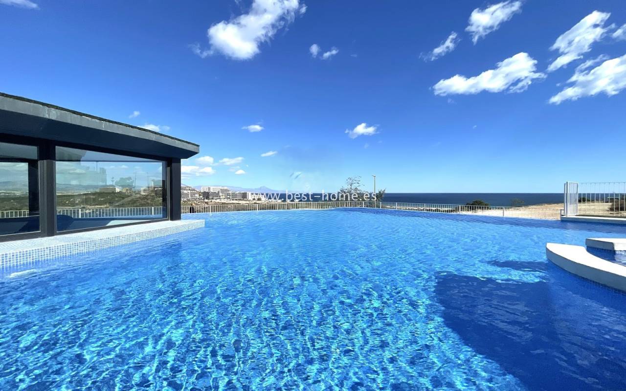 A fantastic apartment with a panoramic sea view in a modern estate in Gran Alacant. It has a living room with access to a huge 28 m2 terrace, a modern kitchen equipped with household appliances, 2 double bedrooms with built-in wardrobes, 2 bathrooms (including one en-suite). The apartment has the latest technological solutions, such as a heat pump or central air conditioning, which effectively reduce electricity consumption. Additionally, on the estate we will receive spacious common areas: infinity pools, paddling pools for children or an air-conditioned gym and green areas with sun loungers. The apartment is located in a convenient location, away from the busy streets of the city, so we can enjoy peace and privacy, while not giving up any of the amenities offered to us. The apartment is equipped with a central air conditioning system and is sold with furniture. Ideal for holiday or long-term rental, due to the location close to the airport 5 km and approx. 600 m. close to the beautiful sandy beach of Playa Carabassi. For this price we will also receive a parking space in the underground garage, which will provide a lot of additional comfort and convenience.