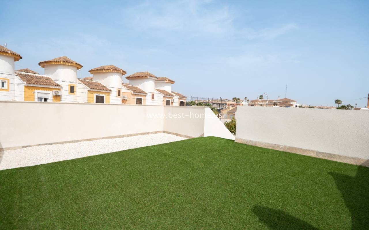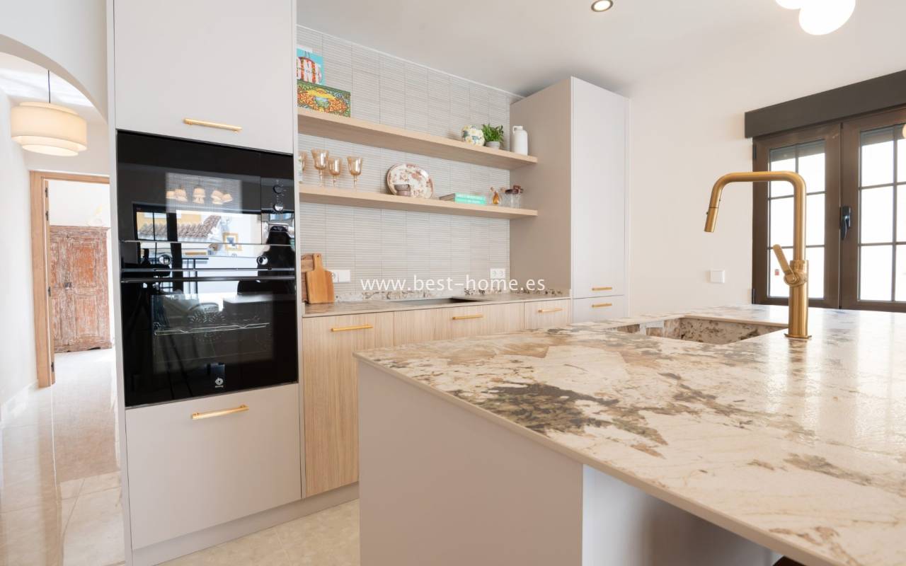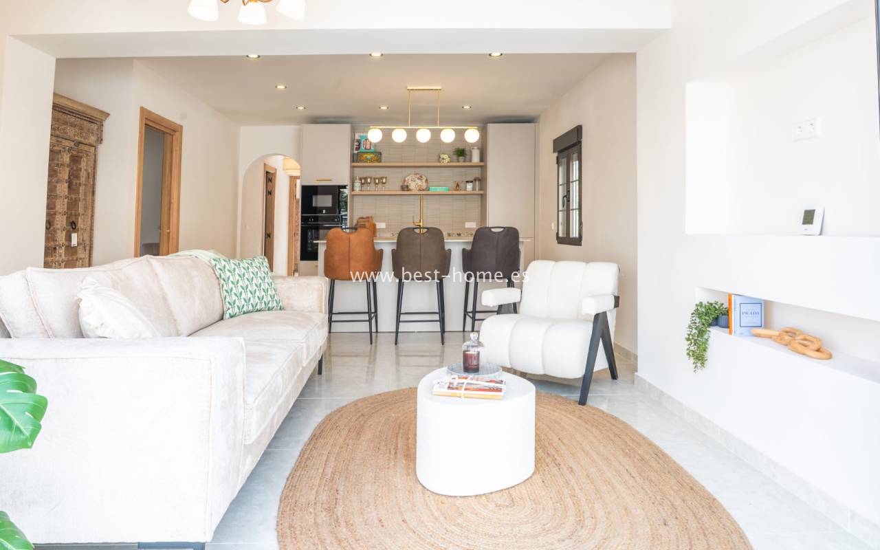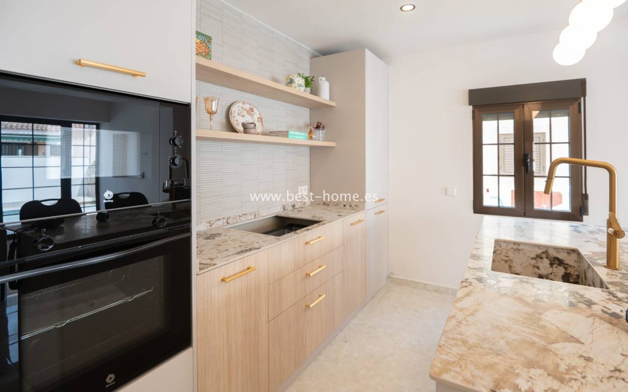 We invite you to discover this remarkable detached villa located in one of the most sought-after areas of Playa Flamenca. This beautifully renovated property is a true gem on the market. Designed with meticulous attention to detail by the renowned House of Murray, it combines elegance, comfort, and contemporary Mediterranean living.