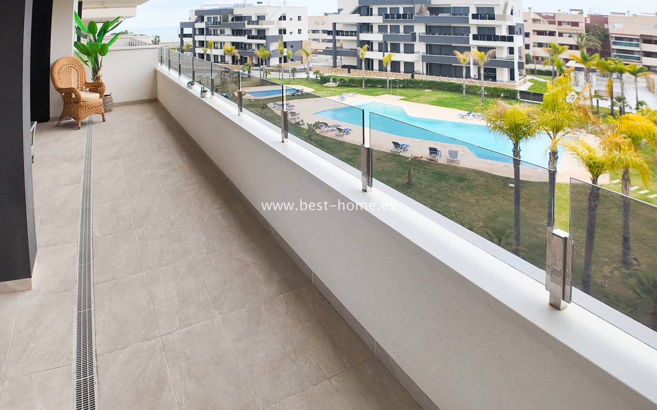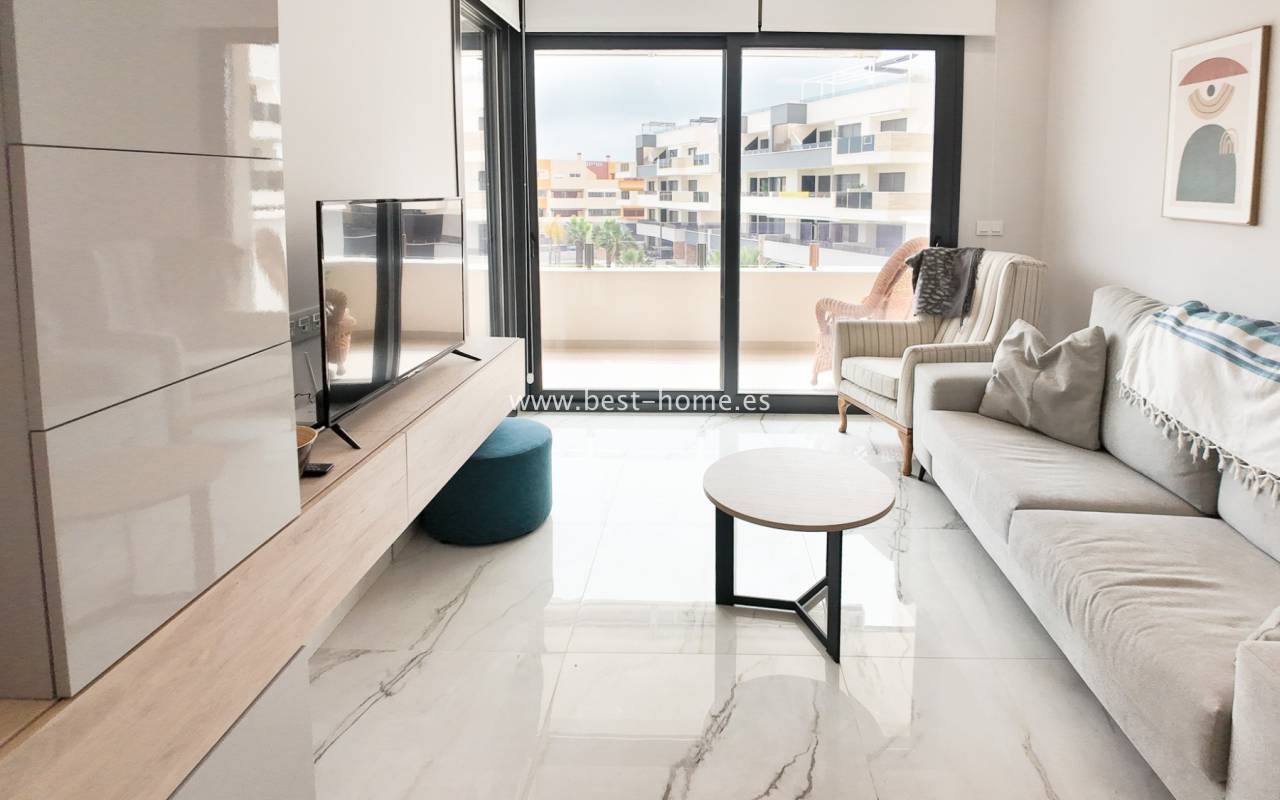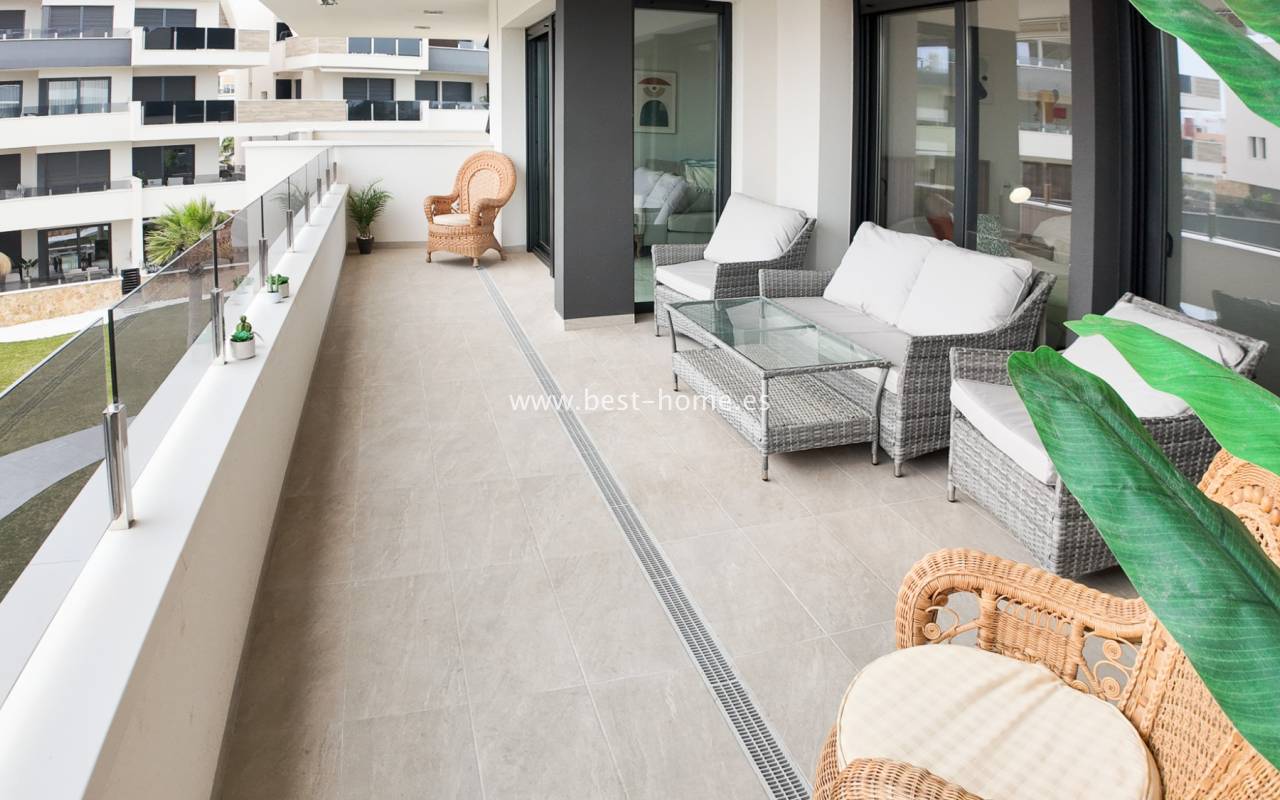 The apartment is located in a gated community in a great location in Playa Flamenca. The property is on the 2nd floor, consists of 2 bedrooms, 2 bathrooms, a furnished and equipped kitchen connected to the dining room and living room. All rooms have access to the terrace (22 m2), with views of the communal pool and green areas. The price includes full furniture, household appliances, central air conditioning, heated floors in the bathrooms and a parking space.