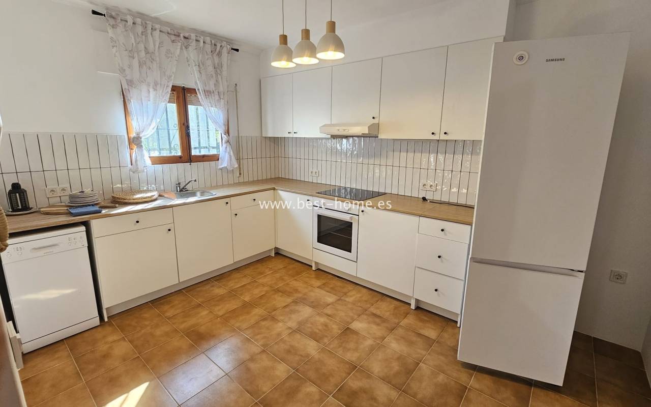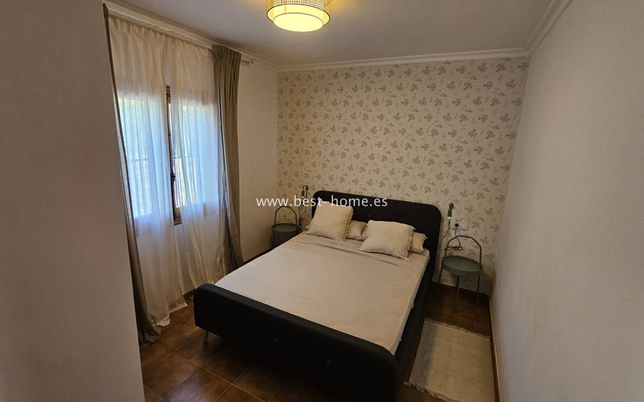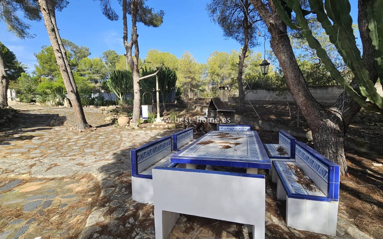 The ground floor villa has a spacious and bright living room with dining room and fireplace, a separate, fully equipped kitchen with utility room, three bedrooms and two bathrooms. The master bedroom has an en-suite bathroom and a large wardrobe. Outside we will find a wonderful garden with mature plants, plenty of nooks to relax, a large private swimming pool, as well as parking spaces.