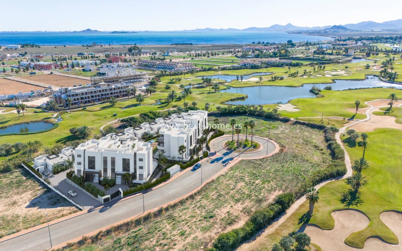 A new, attractive estate is being built in a great location on the first coastline from the golf course. The gated estate will include two blocks with spacious apartments and villas. The two-story block will feature penthouses with 2 bedrooms, 2 bathrooms, a furnished kitchen with a bar connected to the dining room and living room. The master bedroom and living room will have access to a terrace (20 m2), from which we will get to the solarium/roof terrace (65 m2). The property will have views of the golf course, the sea and the La Manga peninsula. The price includes kitchen furniture (hood, hob), pre-installation of central air conditioning, electric external blinds, finished bathrooms and a parking space. Swimming pool and communal gardens for residents. Prices: