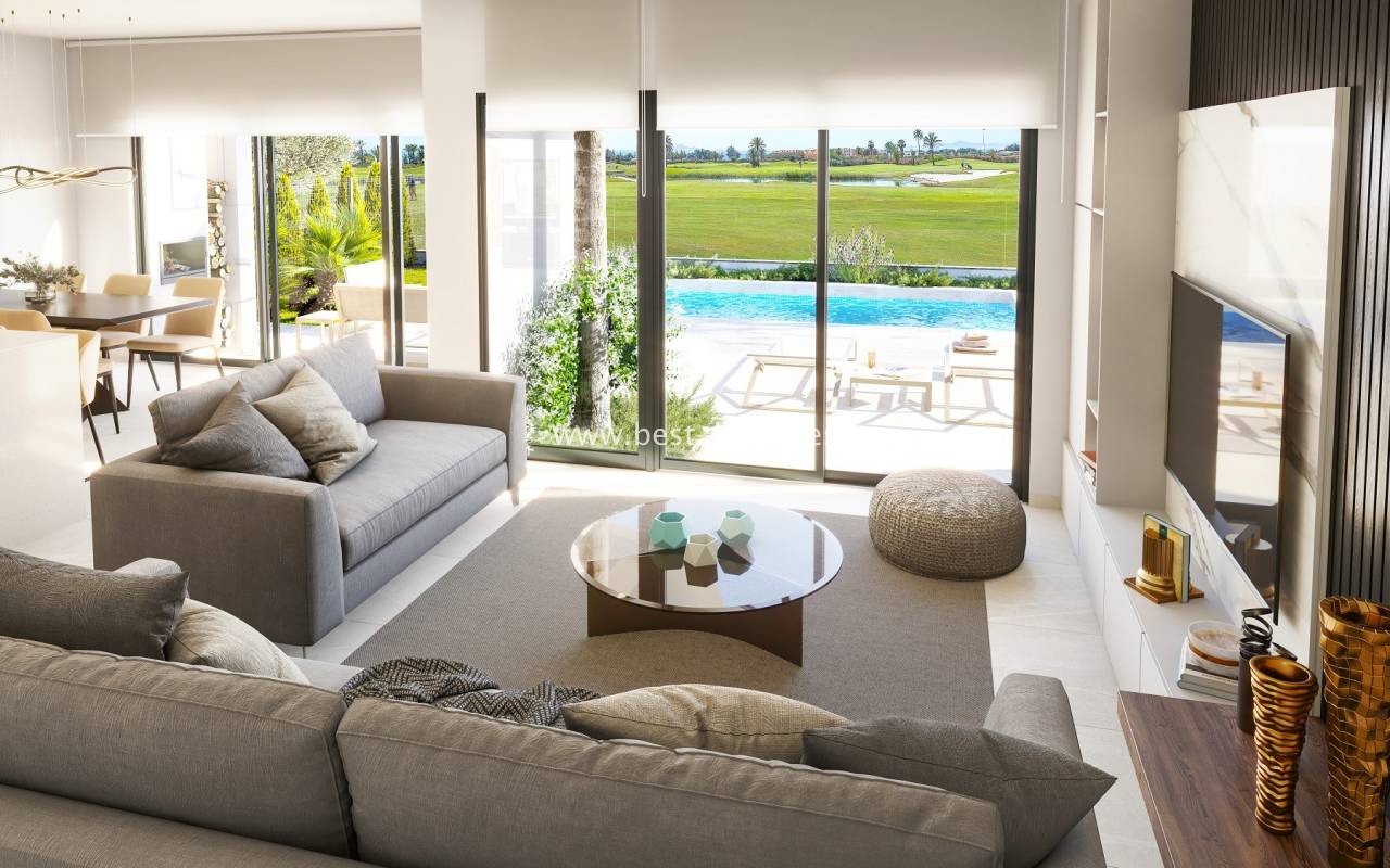 The new, attractive estate is being built in a great location on the 1st coastline from the golf course. The gated estate will include two blocks with spacious apartments and villas. There are 8 single-storey villas available on plots from 274 m2 to 319 m2. Each house will consist of a spacious and bright living room combined with a dining room and furnished kitchen, 3 bedrooms with built-in wardrobes, 2 bathrooms and a toilet. The living room, dining room and bedroom will have access to the terrace and private swimming pool. The price includes kitchen furniture (hood, hob), pre-installation of central air conditioning, electric external blinds, finished bathrooms and swimming pool.