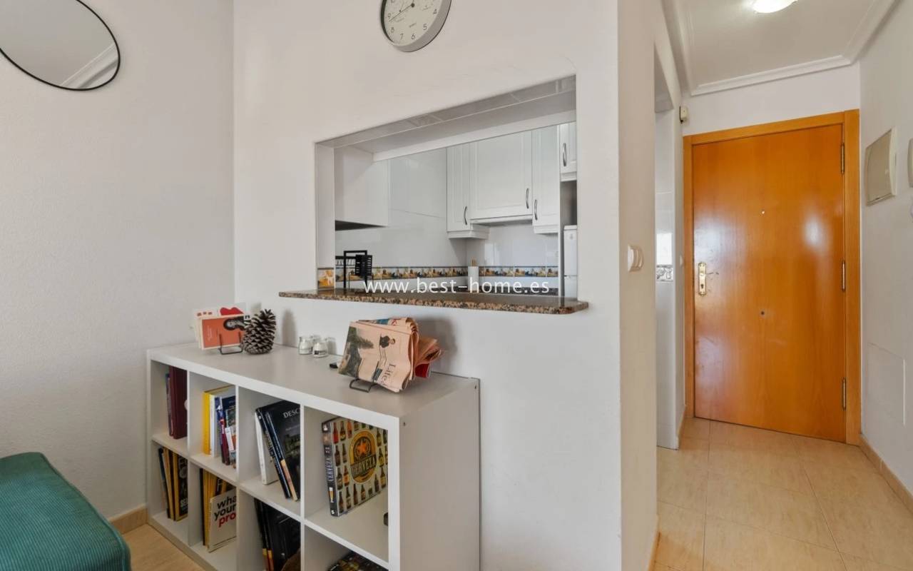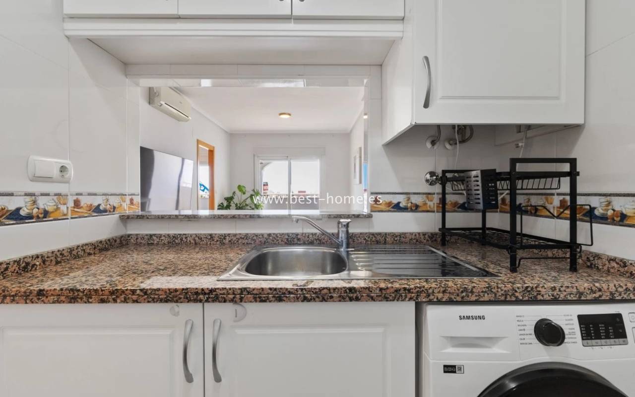 The apartment is in a very good location close to La Mata beach. The property is on the 4th floor, consists of two bedrooms, one bathroom, a furnished kitchen and a spacious living room. From the master bedroom and living room there is an exit to the terrace, from which there is a side view of the sea. The price includes furniture, household appliances and a parking space. There are many restaurants, bars, pharmacies and supermarkets nearby.