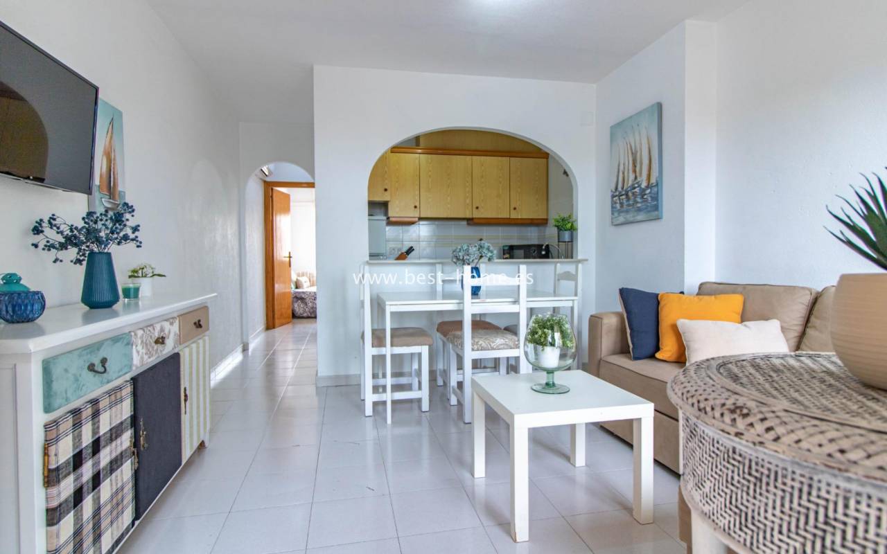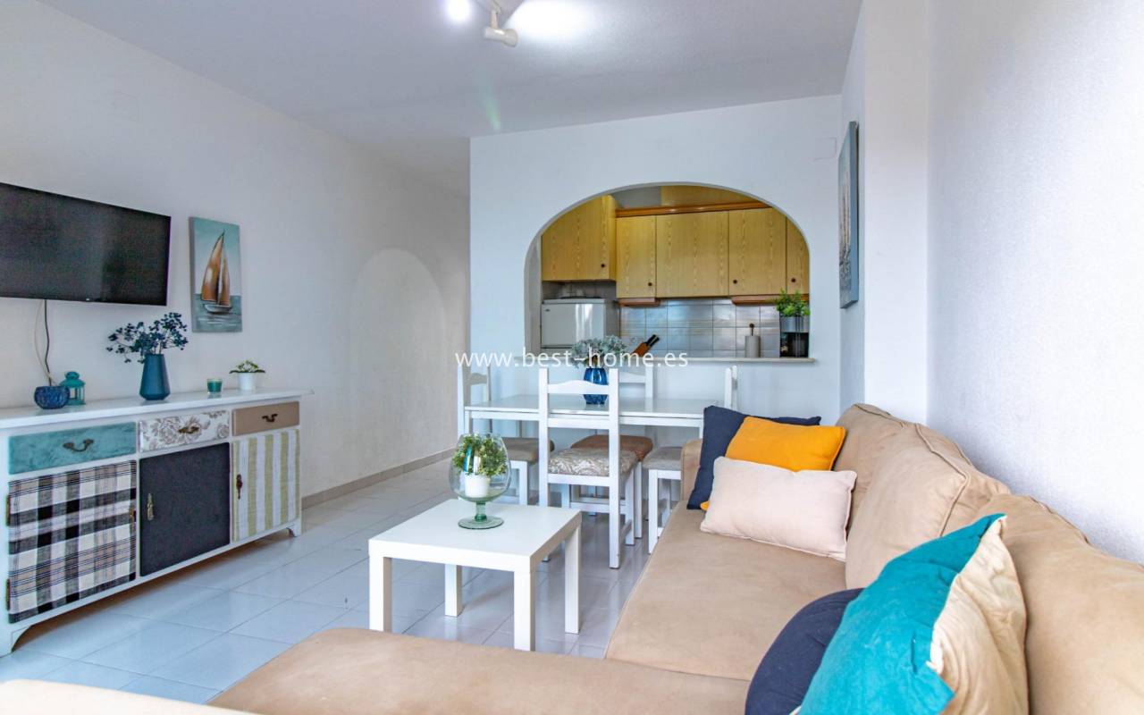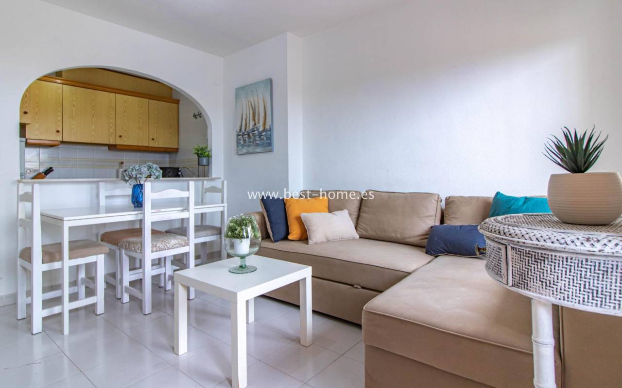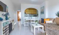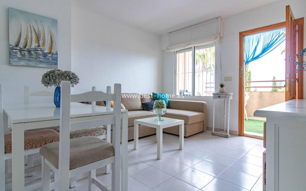 A bungalow on the first floor located in the Los Balcones urbanization with a community pool. Through the entrance terrace we get to the bright, spacious living room, in addition in the apartment we get a double bedroom with a built-in wardrobe, a kitchen equipped with household appliances, a bathroom. The apartment is furnished and equipped with air conditioning. An additional advantage of this property is a swimming pool intended for residents. On the estate there is a playground for children. Nearby we will find a Mercadona supermarket, a public hospital, a large number of restaurants and cafes.
