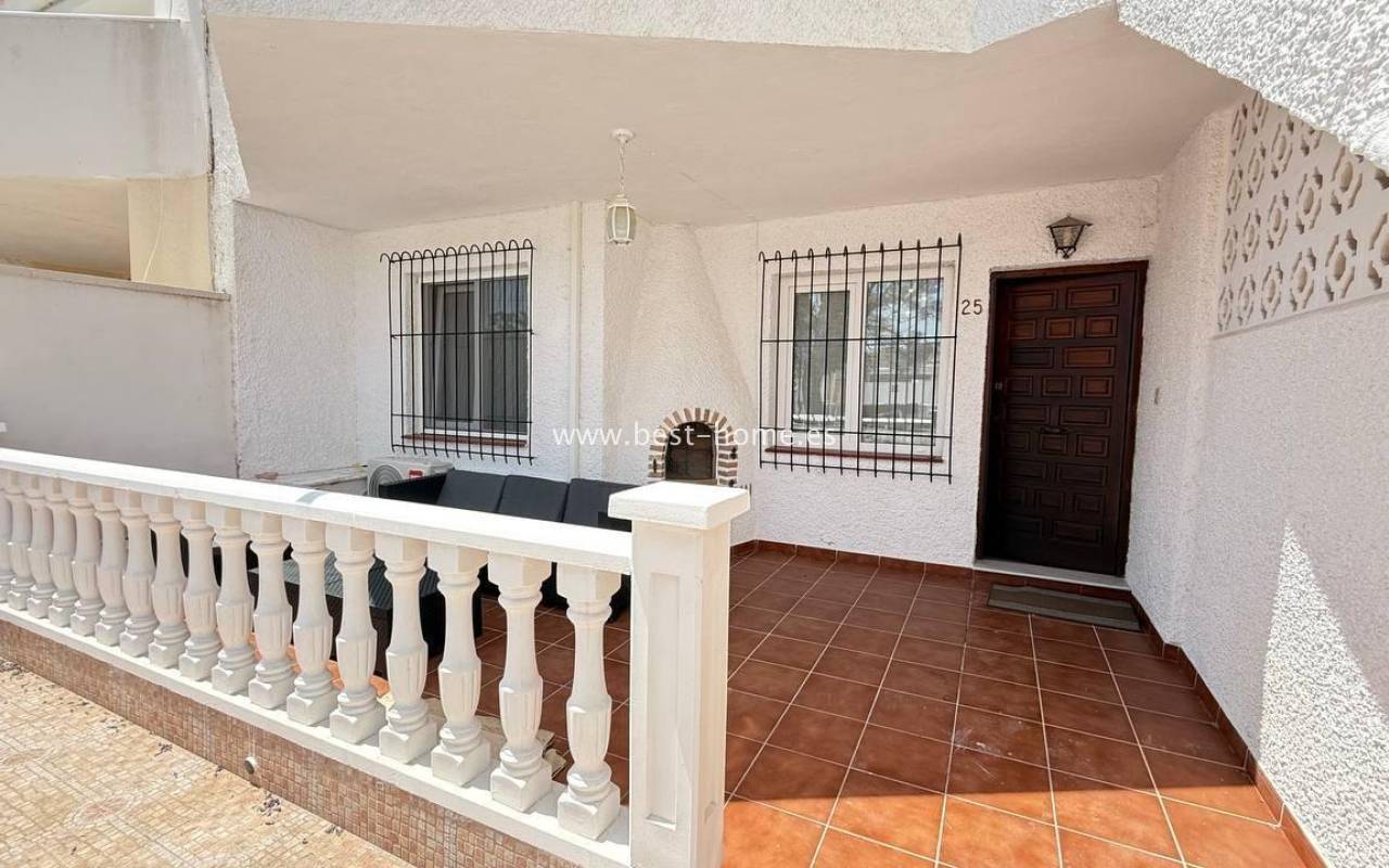 Bungalow with garden in a great location. The property is located in the Cabo Roig district, about 800 m from the beach and with all amenities nearby. The property has been completely renovated, has a living room with fireplace, separate kitchen, two bedrooms and a bathroom. Outside there is a large terrace with a brick barbecue and a garden. The property is equipped with air conditioning, for sale with furniture.