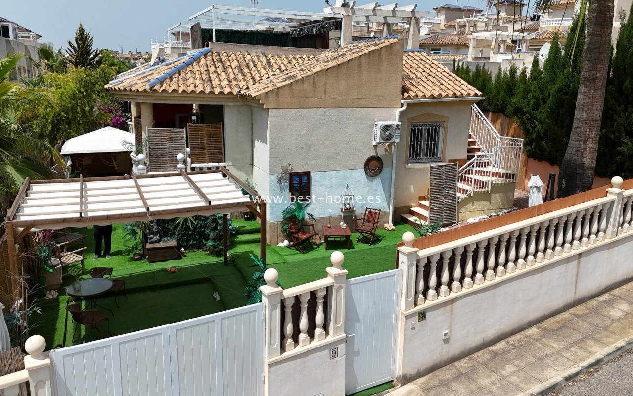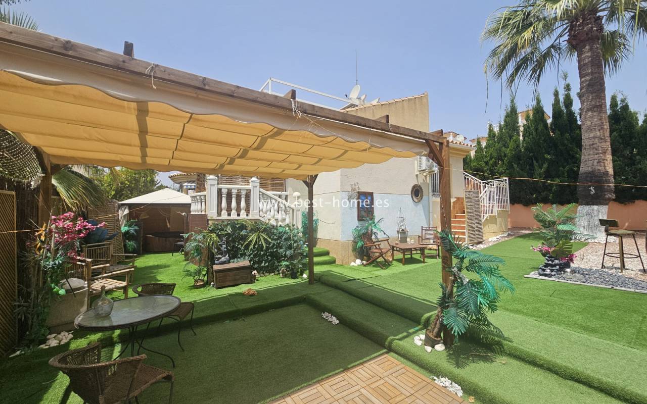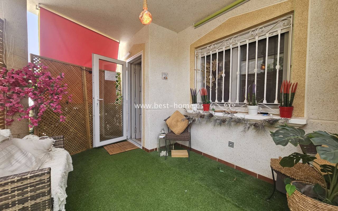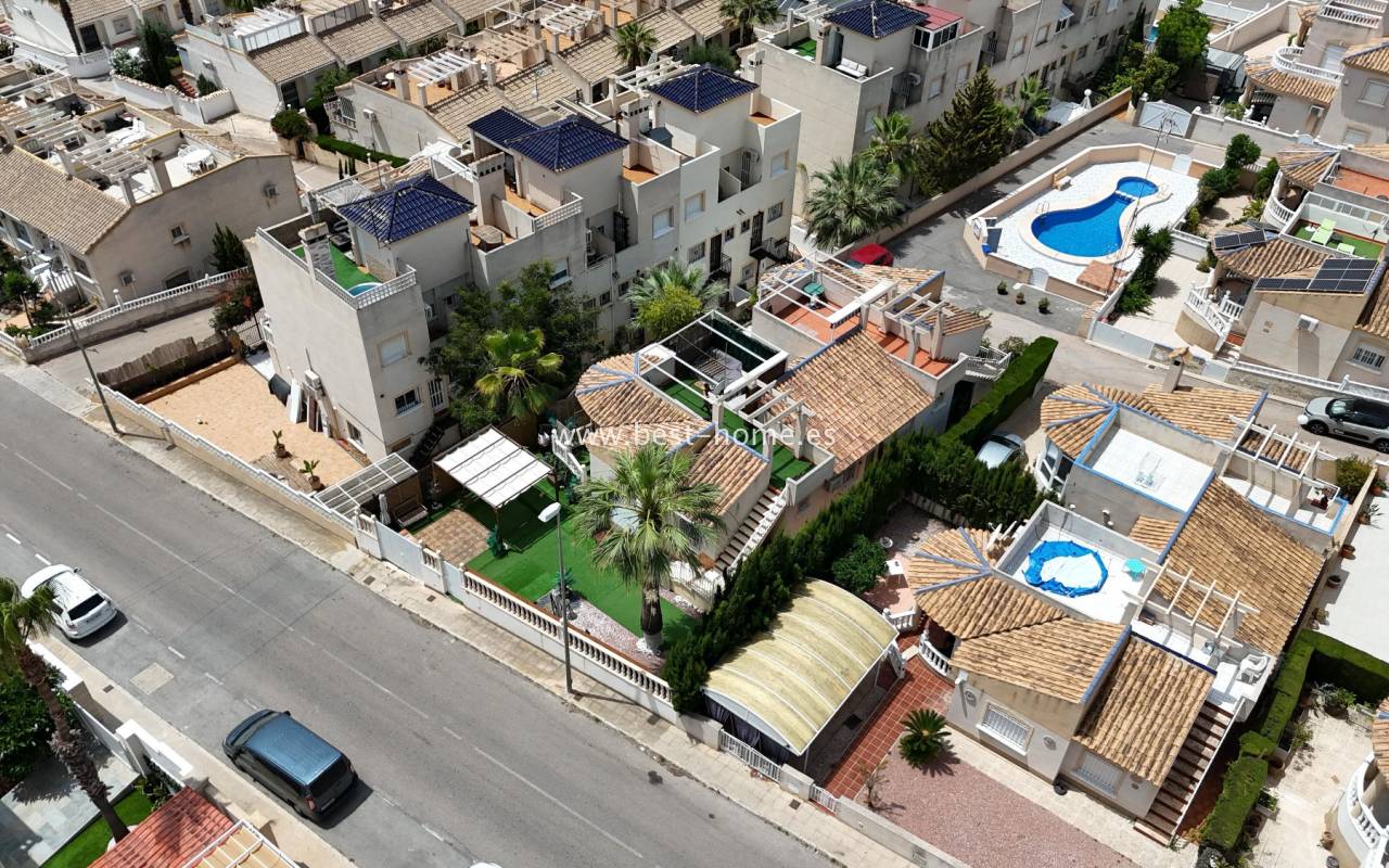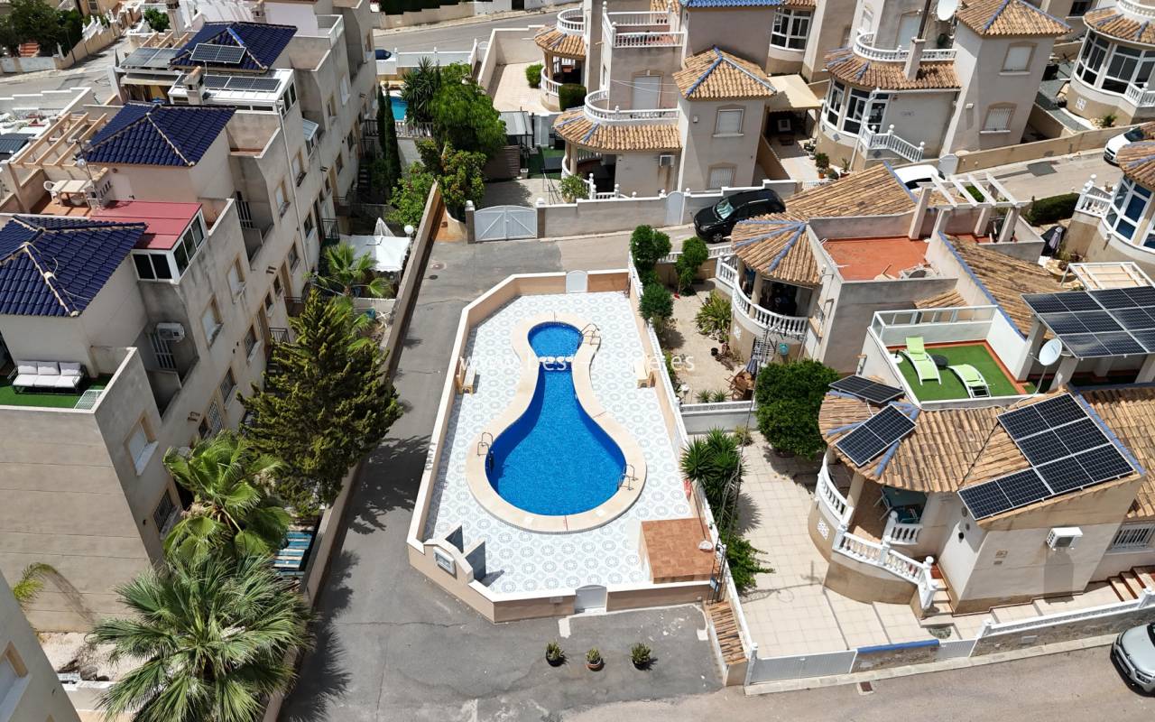 A detached villa with its own private garden, parking space and community pool in the picturesque town of Villamartin, full of golf courses. It has a living room, a kitchen equipped with household appliances, 2 double bedrooms, a bathroom. On the top of the property we will also find a solarium with a beautiful view of the surrounding area. The apartment is furnished and equipped with air conditioning. On the estate there is a swimming pool, intended for residents.