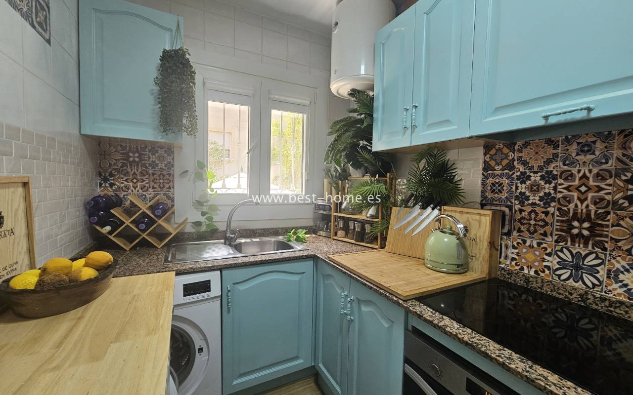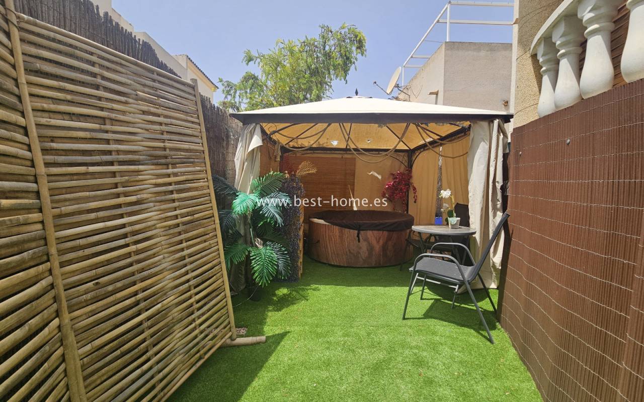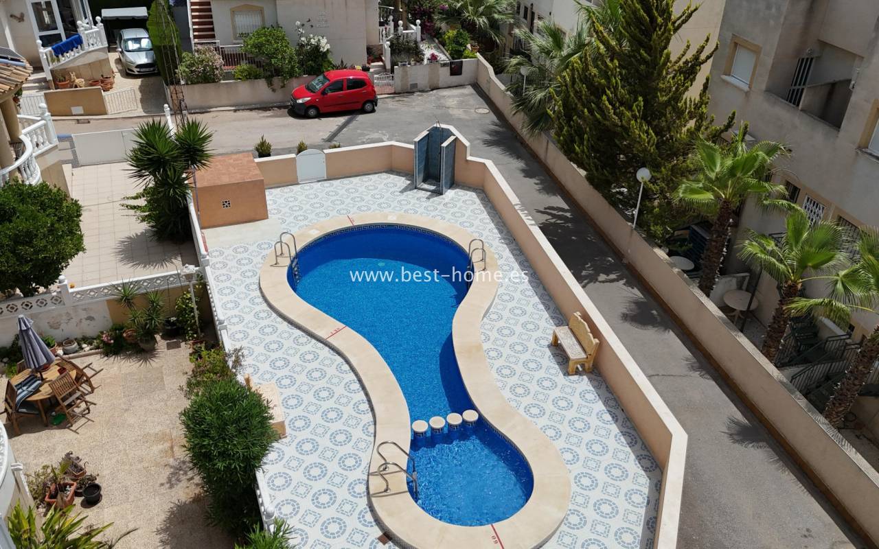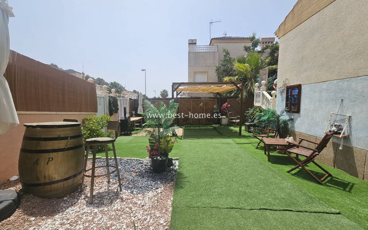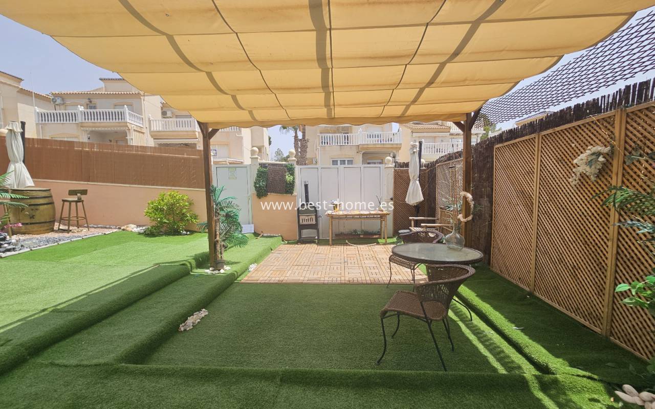 A detached villa with its own private garden, parking space and community pool in the picturesque town of Villamartin, full of golf courses. It has a living room, a kitchen equipped with household appliances, 2 double bedrooms, a bathroom. On the top of the property we will also find a solarium with a beautiful view of the surrounding area. The apartment is furnished and equipped with air conditioning. On the estate there is a swimming pool, intended for residents.