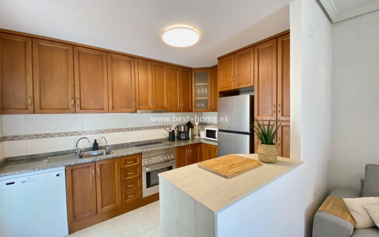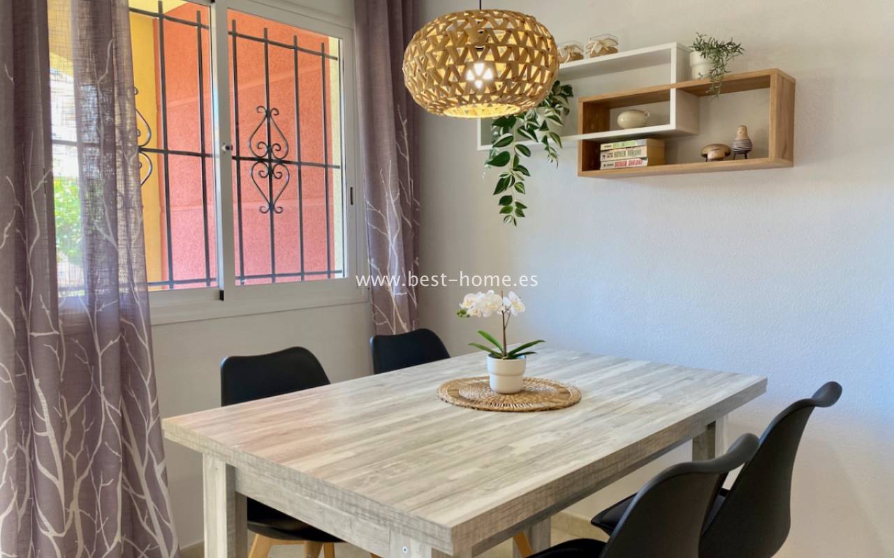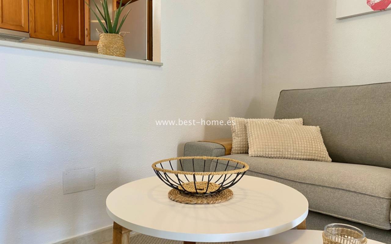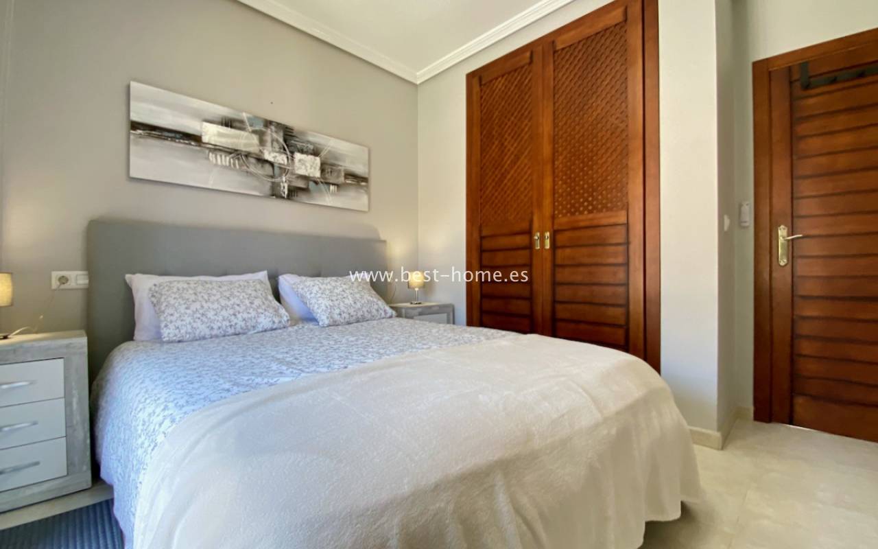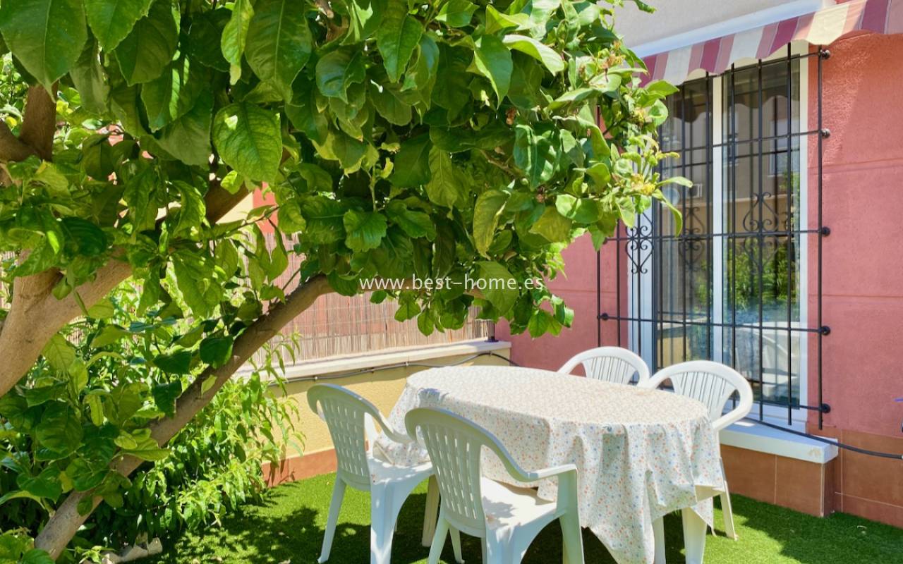 Beautiful ground floor apartment with a picturesque garden, community pool and parking space in the Aguas Nuevas urbanization in Torrevieja. It has a very sunny private garden of 24 m2, through which we get to the bright living room in a Scandinavian arrangement, then we find an American-style kitchen equipped with household appliances, 2 double bedrooms with built-in wardrobes, a bathroom. The apartment is furnished and equipped with air conditioning. In the price of the property we will receive a parking space. Additionally, we will find a large swimming pool, which can be used by residents of the estate.